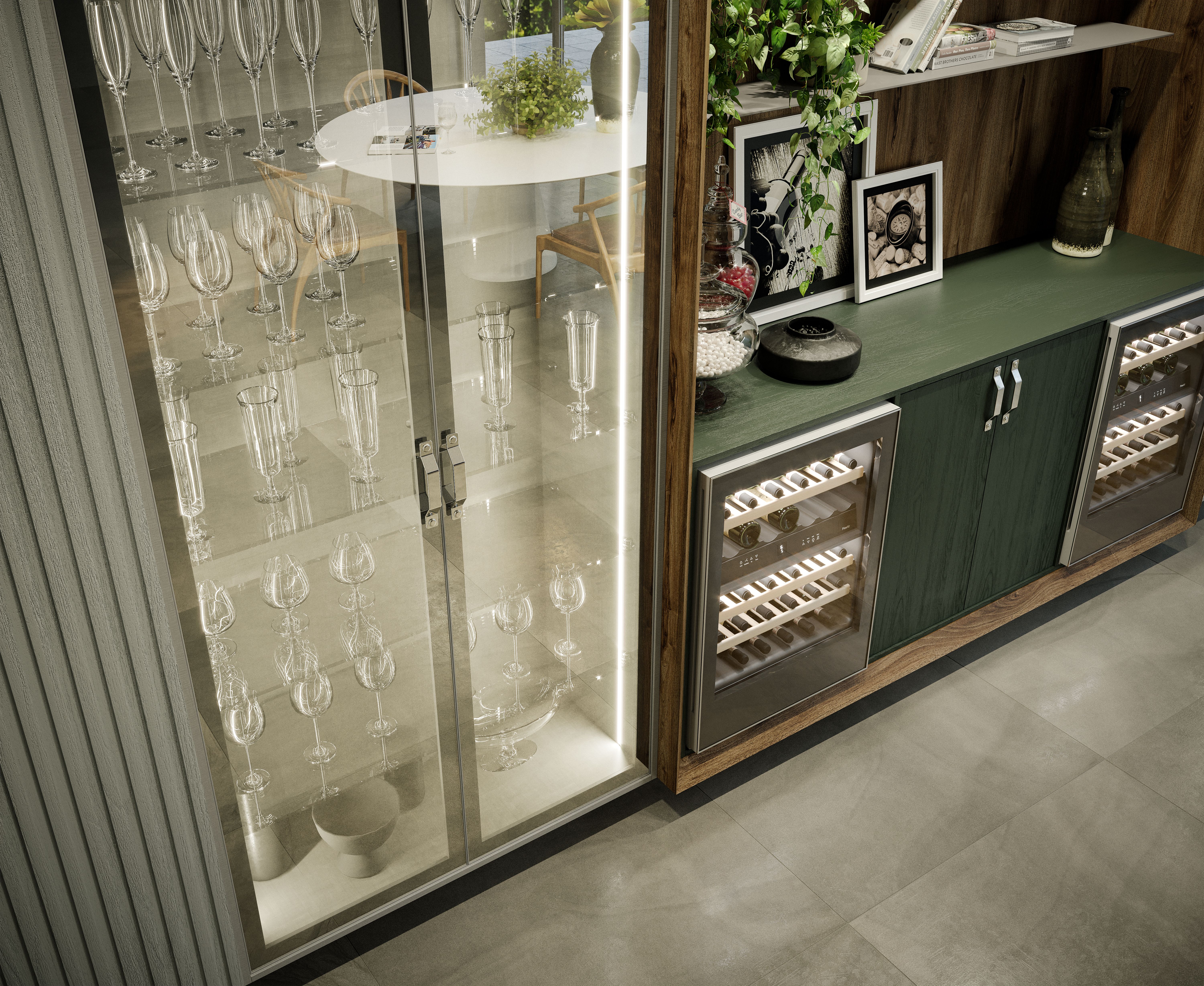 Um verdadeiro passeio pelos mais diferentes estilos de decorar: do industrial ao vintage, do contemporâneo ao rústico. Assim é a Porta Livenza, a combinação de linhas – ora finas e delicadas, ora mais largas – que se fundem à superfície de vidro do móvel através de um chanfro.
