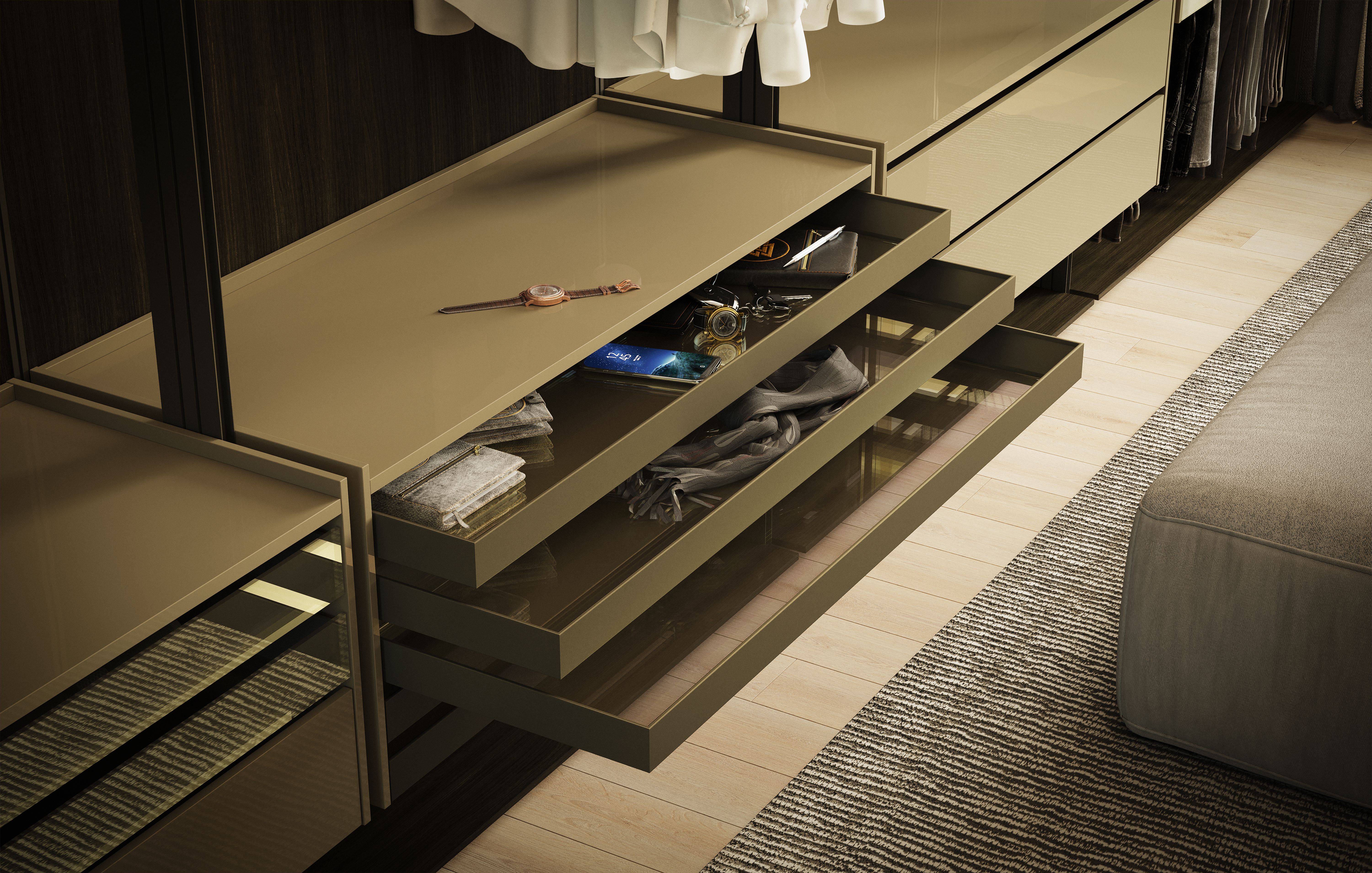 O nome dado a linha não poderia ser mais preciso! Afinal, o armário Lume pode ser definido por seu caráter luminoso e transparente, elevando o closet ao status de vitrine de objetos pessoais. A junção da estrutura metálica e das portas de vidro translúcidas evocam atemporalidade, leveza e imponência, ao mesmo tempo em que conferem aos espaços praticidade e versatilidade. A moderna tecnologia para iluminação interna aliada às configurações dos armários realçam todas as peças ali guardadas como se fossem pertences preciosos.