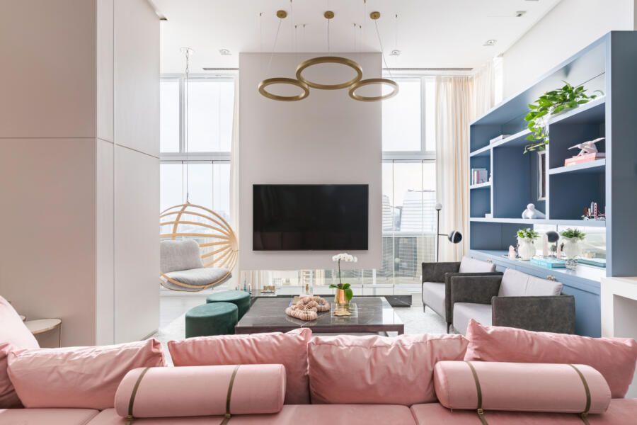 Escolha um sofá, uma poltrona, uma estante ou qualquer outro móvel no ambiente para receber a cor de destaque. E lembre-se: candy colors podem ser caracterizadas por sua vivacidade e alegria, mas também devem inspirar conforto, tranquilidade e harmonia por conta de sua baixa saturação.