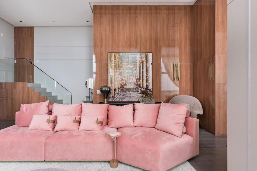 Combinação entre o cor-de-rosa, uma das principais representantes das candy colors, e marcenaria. Projeto por Ana Rozenblit (Spaço Interior) e fotos por Kadu Lopes / Divulgação