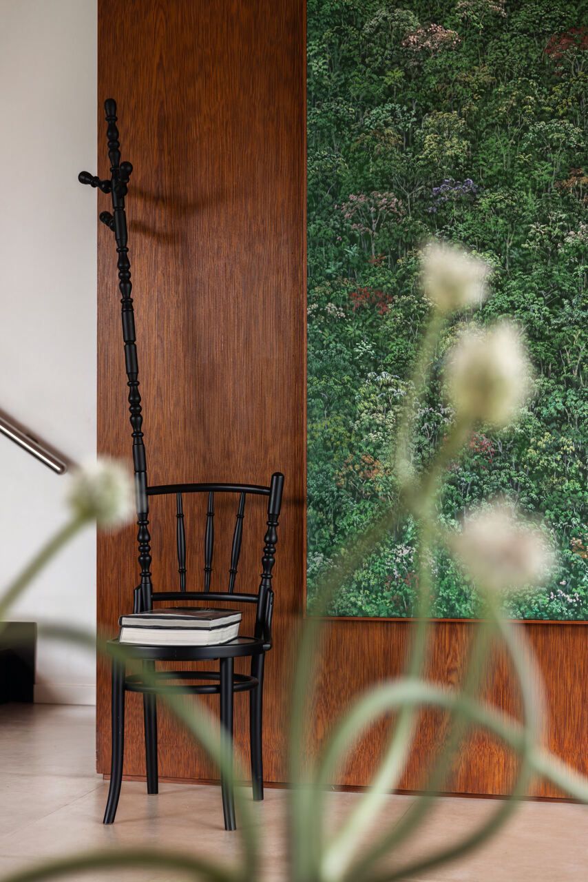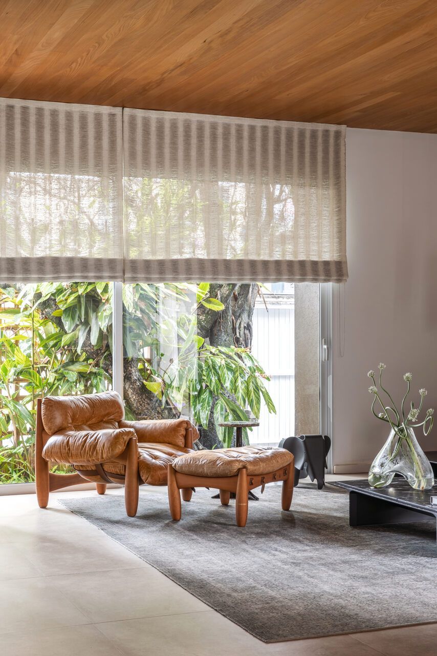 Oito anos depois, sentiram que era hora de atualizar o décor e manter a casa viva. Chamaram Carol novamente para dar o toque que queriam ao projeto: a casa precisava de manutenções, mas também de um “up” para refletir a nova fase da família. Todos os móveis foram reaproveitados, incluindo peças assinadas de grandes nomes como Jader Almeida e Sergio Rodrigues, que continuam atuais e impecáveis. Para completar, foram incorporadas obras de arte escolhidas em um processo de curadoria cuidadoso, que envolveu visitas a galerias e encontros com artistas.