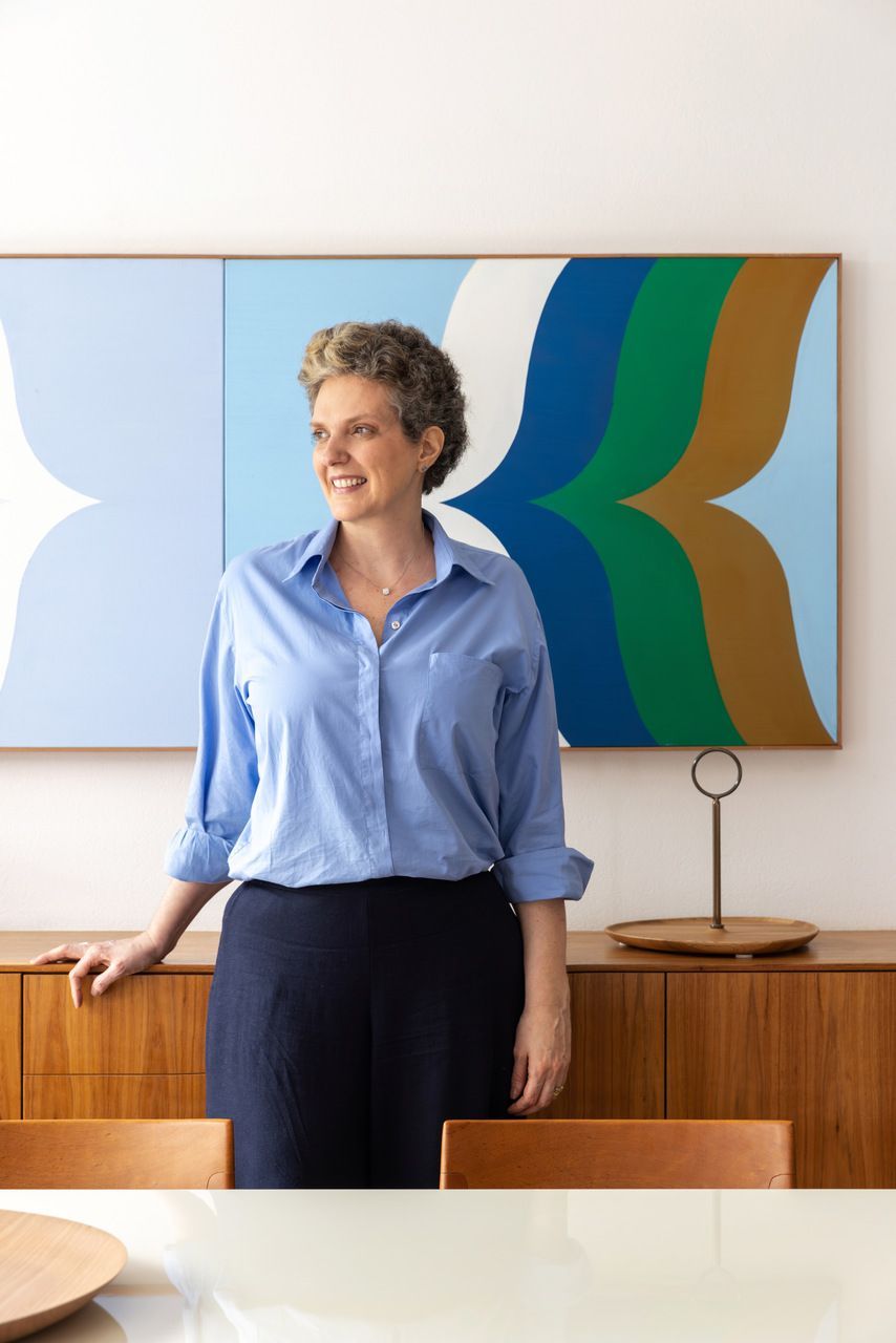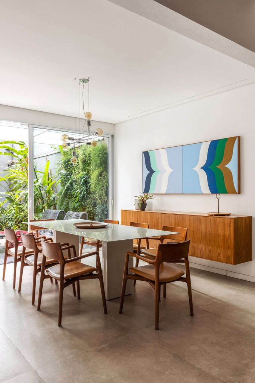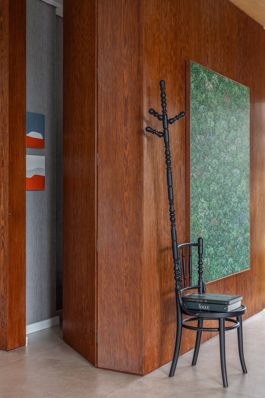 Oito anos depois, sentiram que era hora de atualizar o décor e manter a casa viva. Chamaram Carol novamente para dar o toque que queriam ao projeto: a casa precisava de manutenções, mas também de um “up” para refletir a nova fase da família. Todos os móveis foram reaproveitados, incluindo peças assinadas de grandes nomes como Jader Almeida e Sergio Rodrigues, que continuam atuais e impecáveis. Para completar, foram incorporadas obras de arte escolhidas em um processo de curadoria cuidadoso, que envolveu visitas a galerias e encontros com artistas.