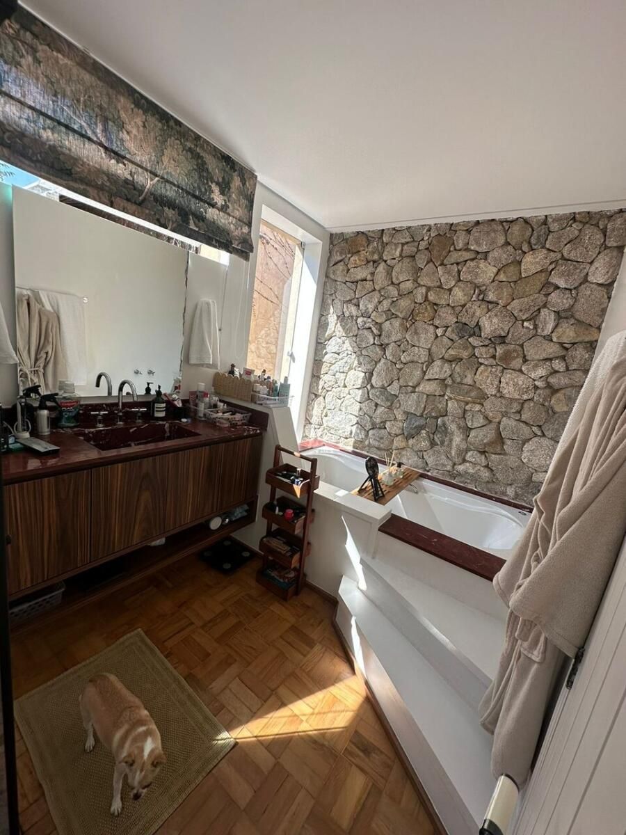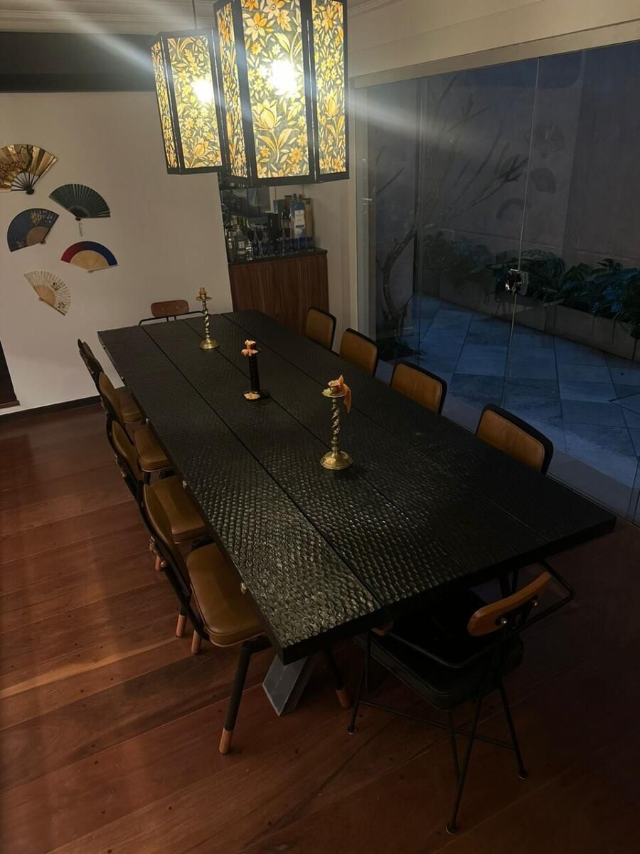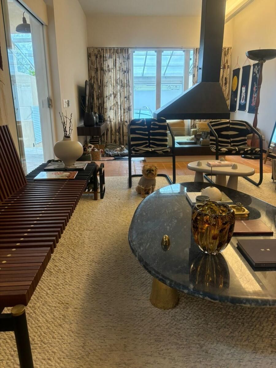 Os proprietários buscavam um estilo que combinasse elementos industriais e modernos, e a piscina foi inspirada em um hotel de Tulum, o que trouxe um toque tropical ao projeto. A decoração também reflete uma forte influência do Japão, um lugar que tem um significado especial para o casal, pois foi onde passaram a lua de mel e engravidaram. Essa conexão pessoal com o Japão se manifesta em detalhes que enriquecem o ambiente, tornando-o ainda mais único. A designer Kelly Wearstler, cuja obra é admirada pela Luciana, também serviu de inspiração, contribuindo para a estética contemporânea do espaço.