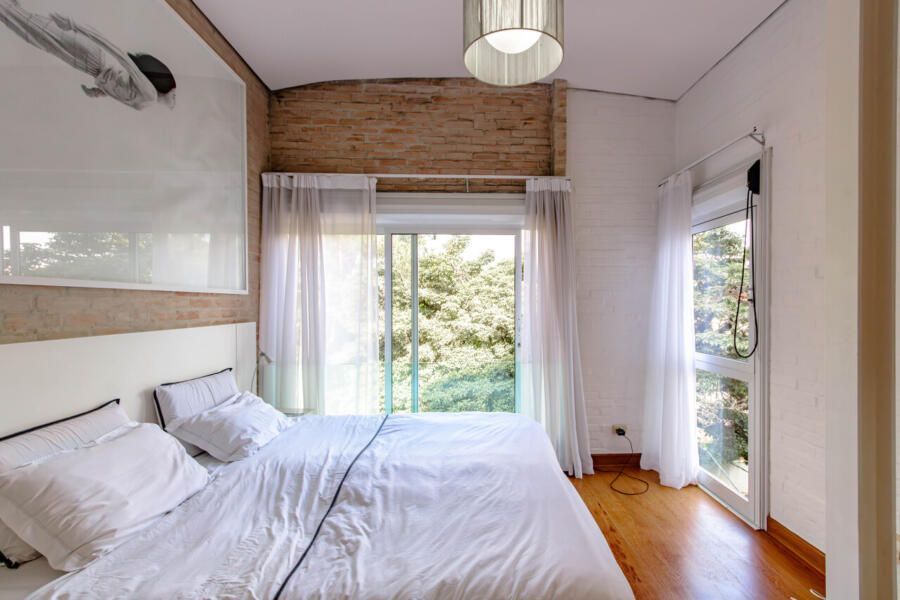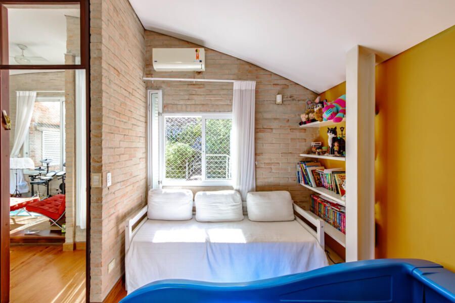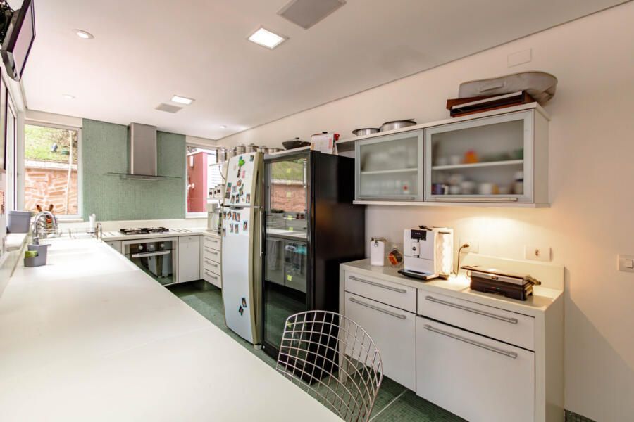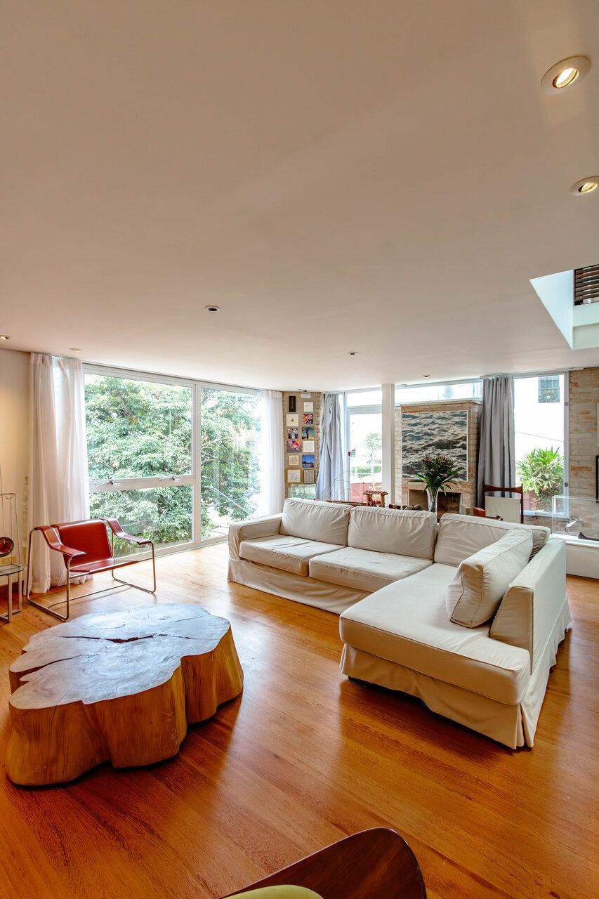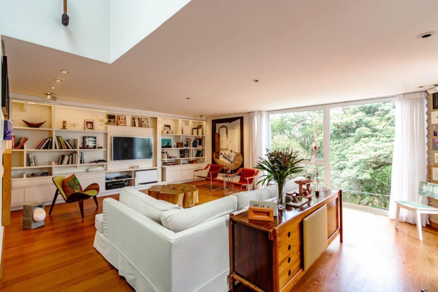 Assinada pelo arquiteto Carlos Verna, essa residência está em uma rua calma, próxima a uma praça arborizada que parece abraçar a casa. São 264m² de área construída em um terreno de 334m², com uma integração fluida entre os ambientes e uma conexão direta com o verde que se revela em todos os cantos. Você pode imaginar como é a vista!