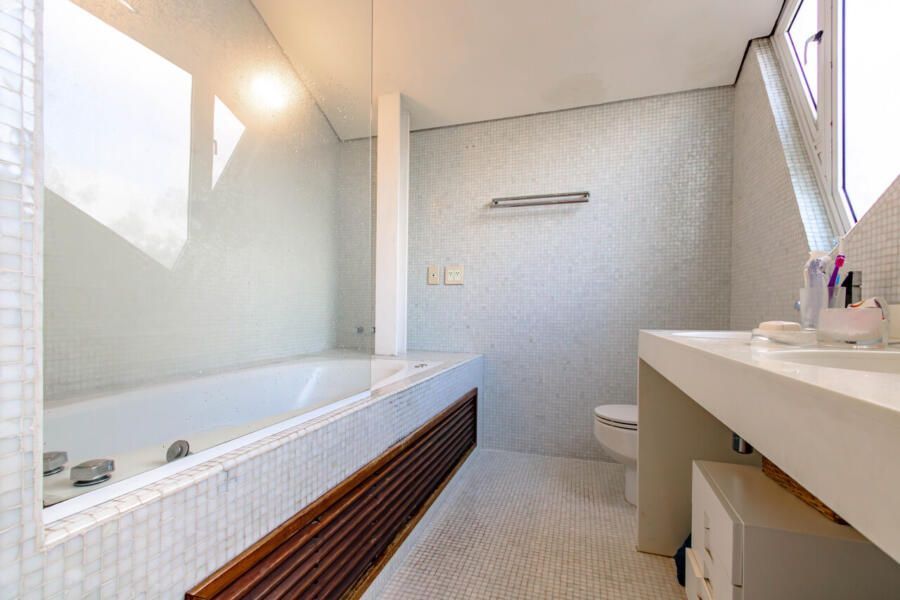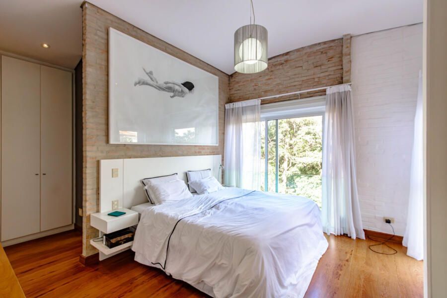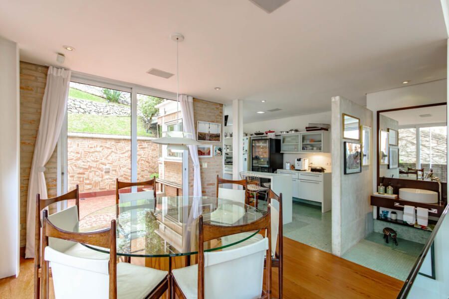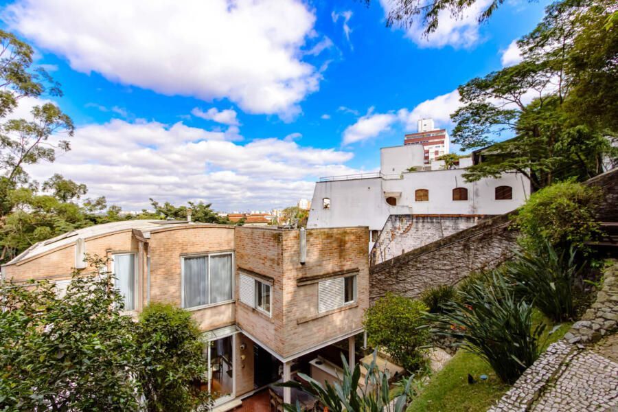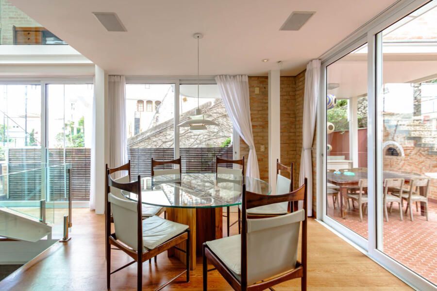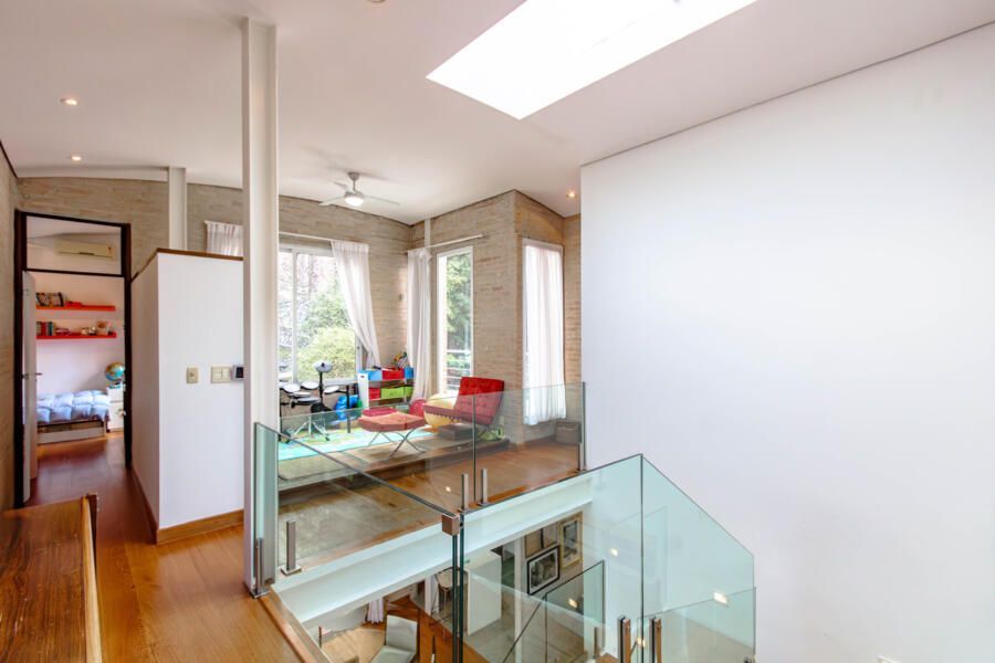 Assinada pelo arquiteto Carlos Verna, essa residência está em uma rua calma, próxima a uma praça arborizada que parece abraçar a casa. São 264m² de área construída em um terreno de 334m², com uma integração fluida entre os ambientes e uma conexão direta com o verde que se revela em todos os cantos. Você pode imaginar como é a vista!