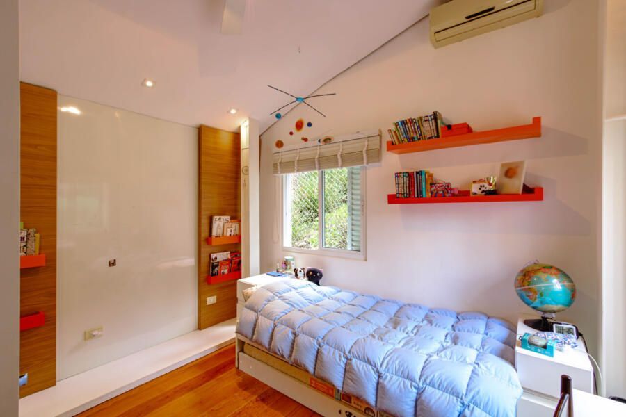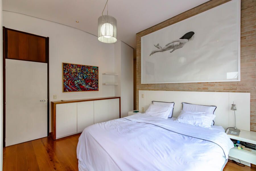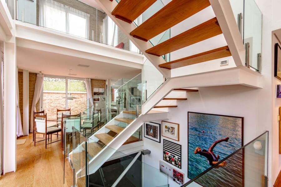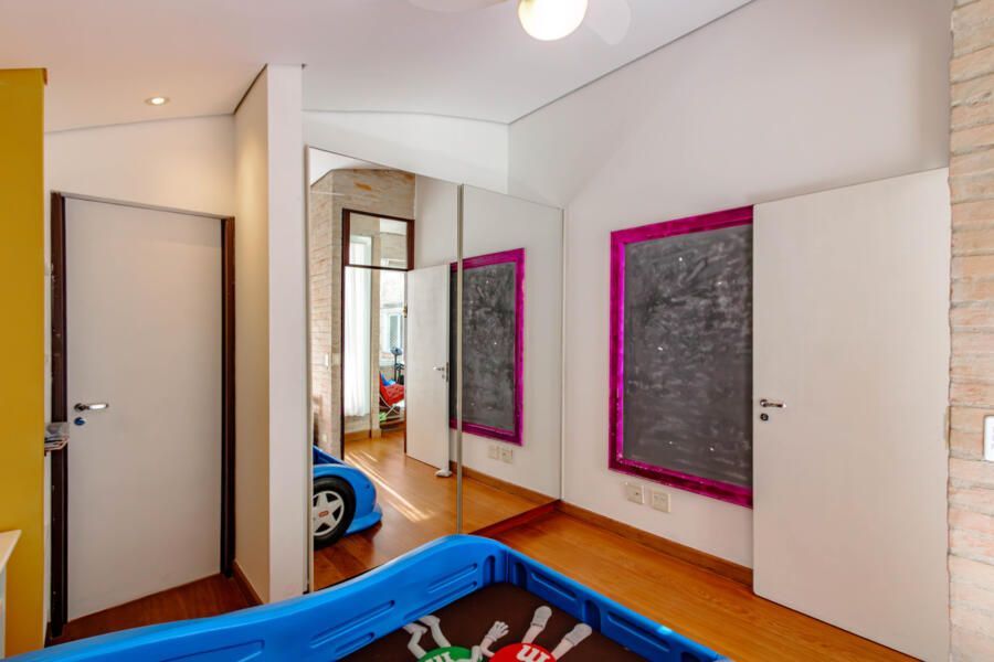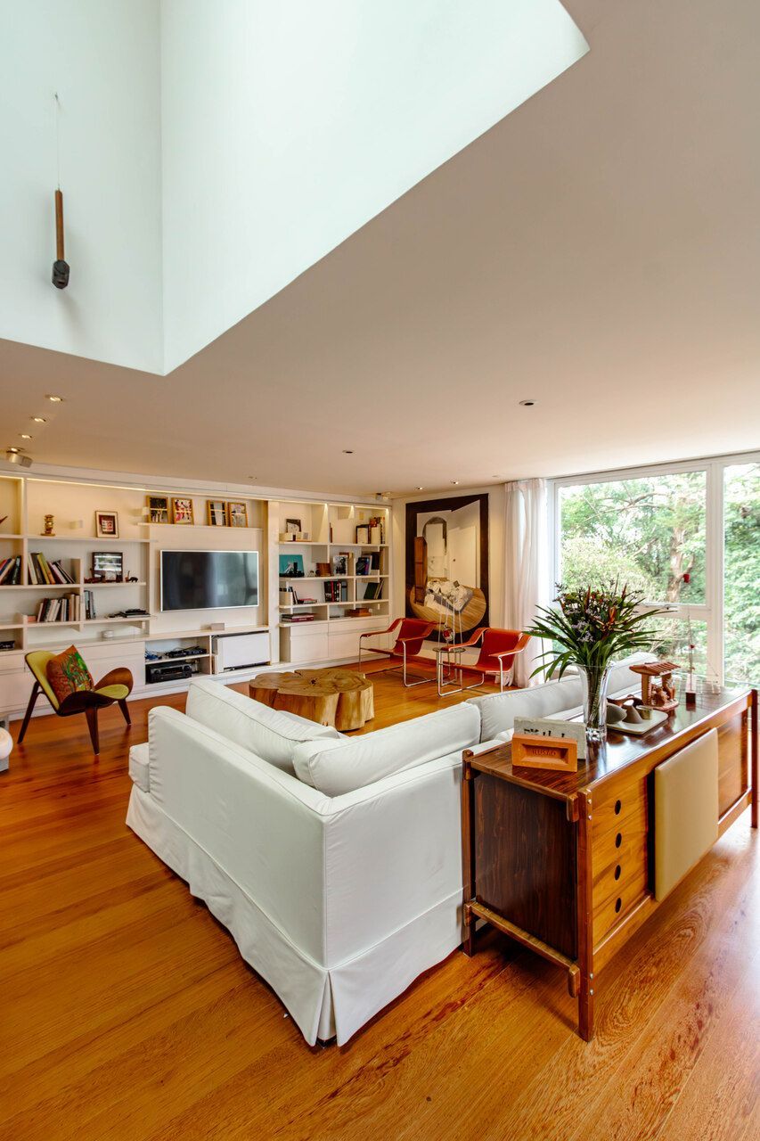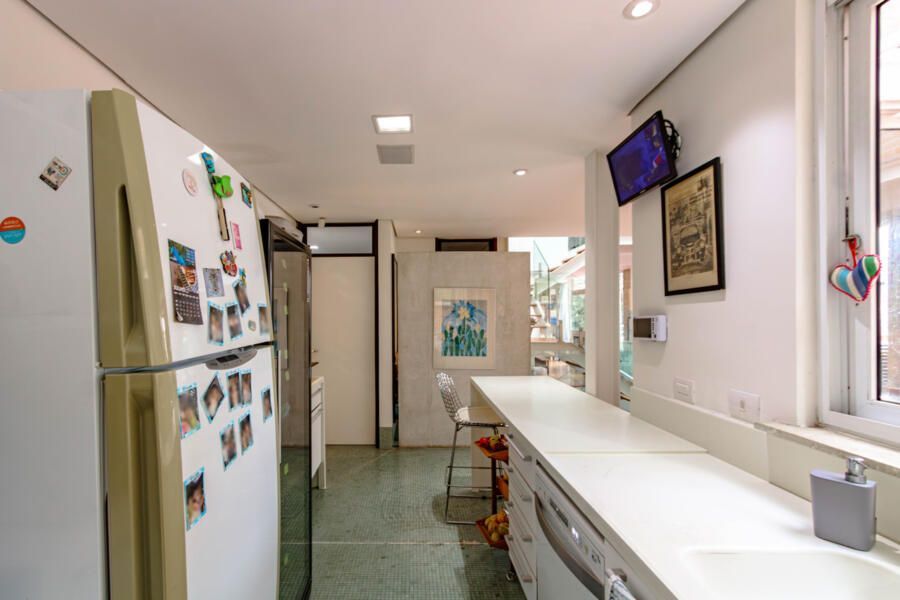 Assinada pelo arquiteto Carlos Verna, essa residência está em uma rua calma, próxima a uma praça arborizada que parece abraçar a casa. São 264m² de área construída em um terreno de 334m², com uma integração fluida entre os ambientes e uma conexão direta com o verde que se revela em todos os cantos. Você pode imaginar como é a vista!