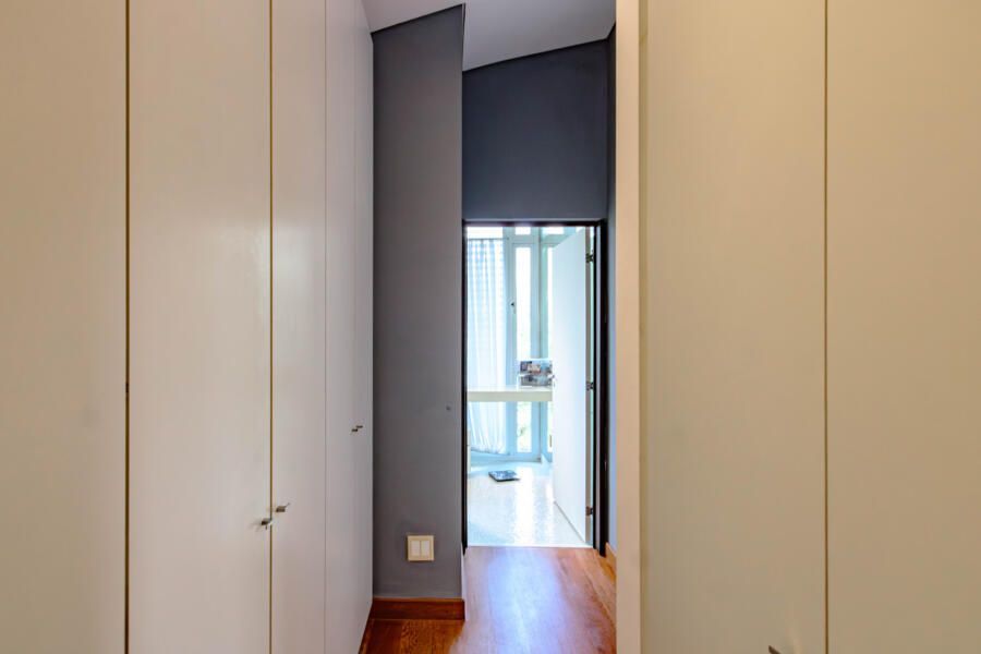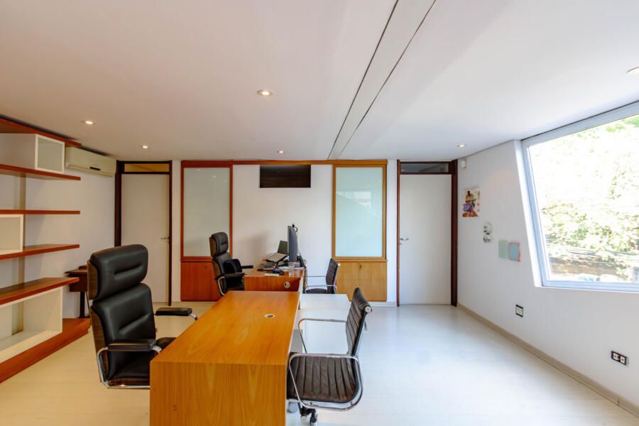 Um dos espaços que mais me encantou foi o escritório com entrada independente, perfeito para quem, assim como eu, valoriza a possibilidade de trabalhar em casa sem abrir mão da privacidade. Além disso, a vista permanente para as copas das árvores e o paisagismo cuidadosamente desenhado transformam o dia a dia em uma experiência visualmente inspiradora.