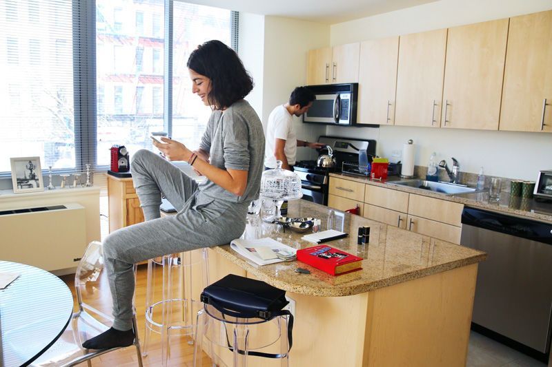 Depois que a Leandra se casou e saiu da casa dos pais ela e seu marido, Abie Cohen, se mudaram para este apê alugado de 2 quartos, tb em NY. O segundo quarto ela usa como um escritório e o outro divide com o marido. Uma das coisas que ela mais gosta no apê? A cozinha com ilha.