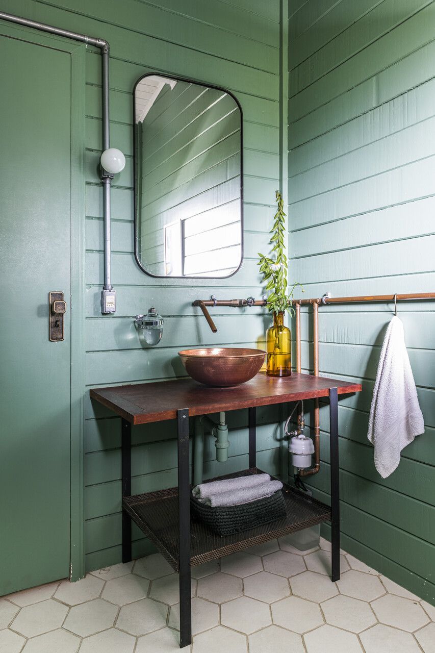 Por conta da estrutura pré-fabricada, a tubulação da casa precisou ser externa e, por isso, aparente no interior. O desafio acabou se tornando um dos diferenciais do projeto: a dupla de arquitetos aproveitou os encanamentos e tubulações para fazer parte do décor e da marcenaria, em um estilo que flerta com o industrial.