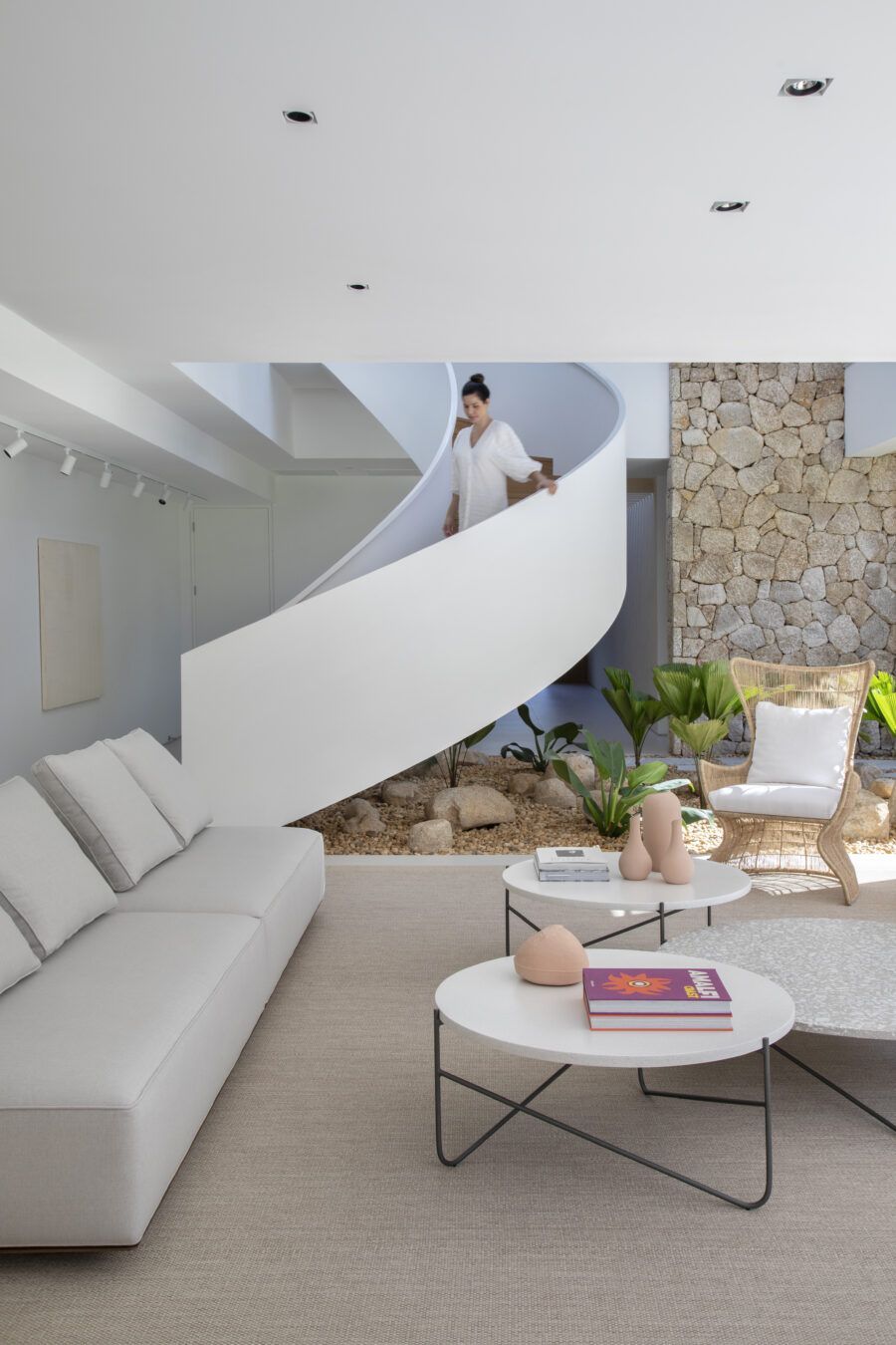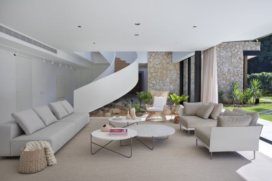 Em Mangaratiba, no Rio de Janeiro, a arquiteta Ester Monteiro encarou a tarefa de desenvolver o interior de uma casa de 800m², desde a escolha dos revestimentos até a sua iluminação. O resultado foi uma casa com o projeto de interiores que conversa e respeita a arquitetura, com mobiliário atemporal, ambientes integrados e um ar contemporâneo que encanta logo de cara.