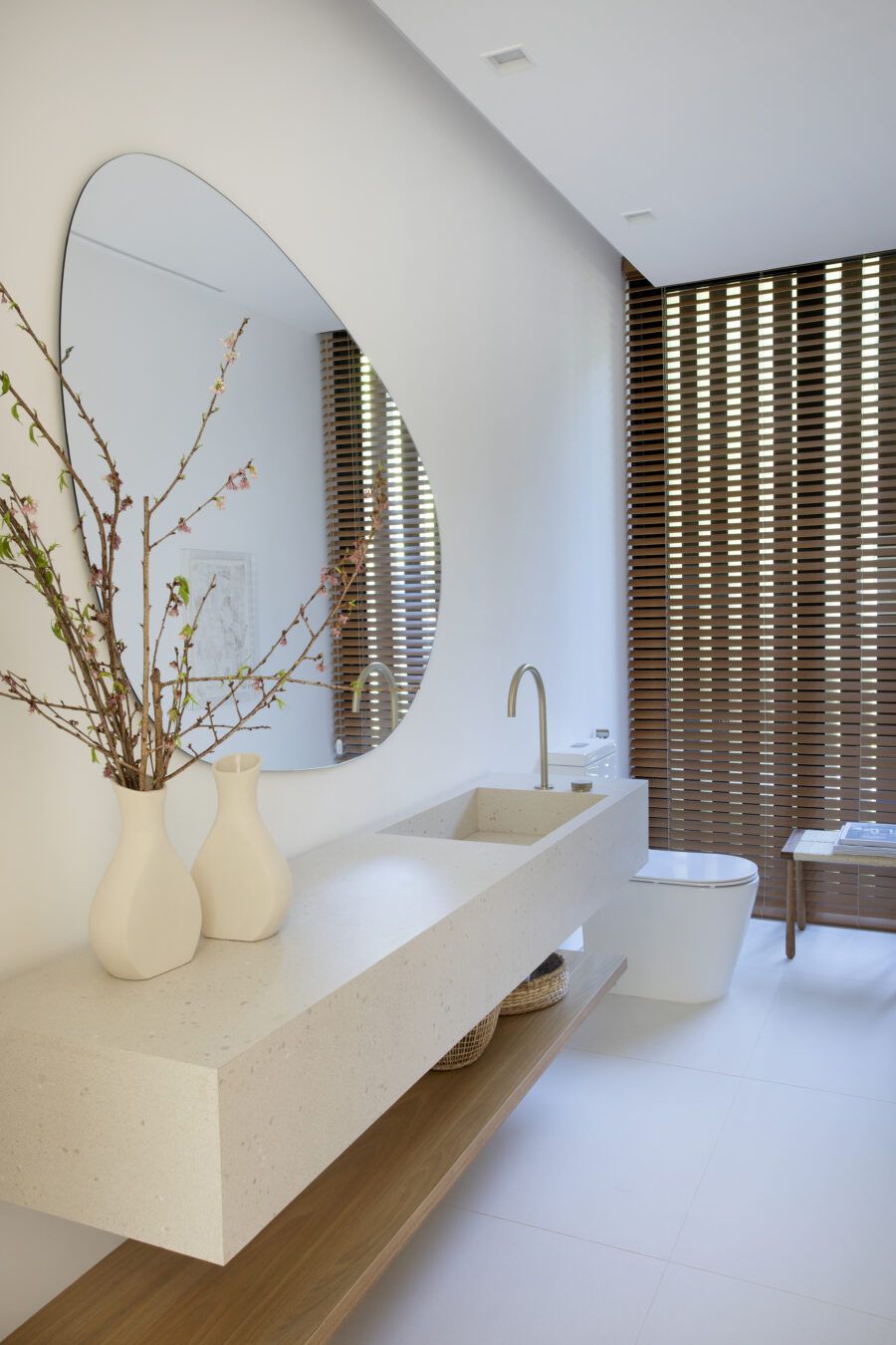 Além disso, a casa ainda conta com sauna, spa, um espaço gourmet de tirar o fôlego e piscina. Os móveis e peças escolhidos a dedo por Ester também impressionam, como a cozinha da Florense e a banqueta Joy do Jader Almeida. Conheci o projeto inteiro da Ester Monteiro e te mostro tudo no vídeo completo! Ele já está disponível no meu canal do Youtube. Por aqui, mais fotos do projeto!