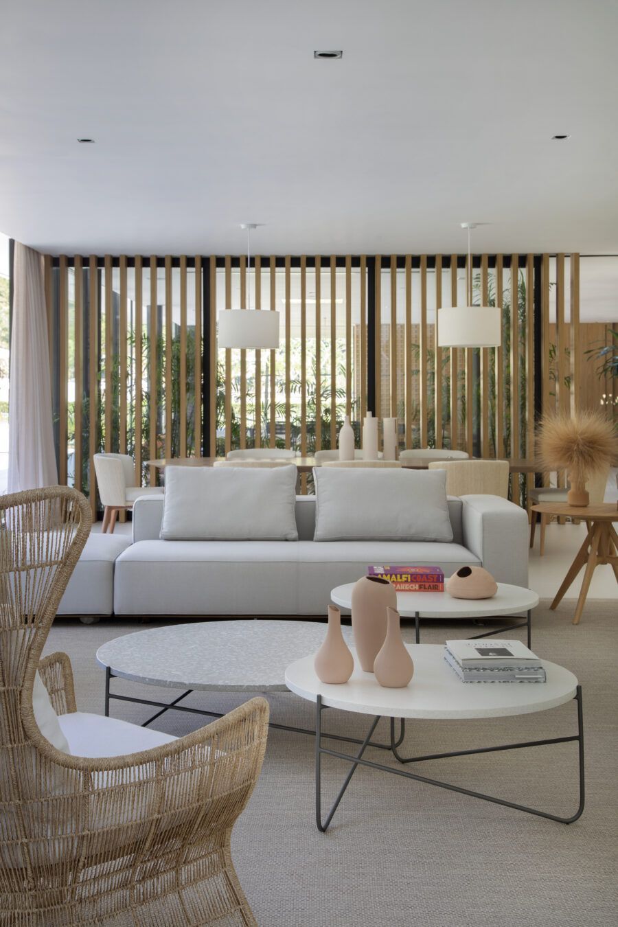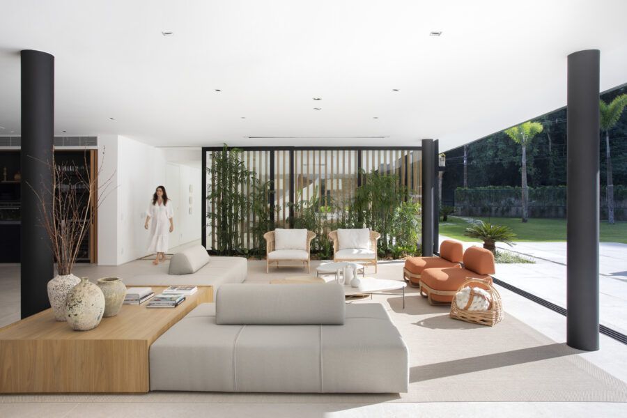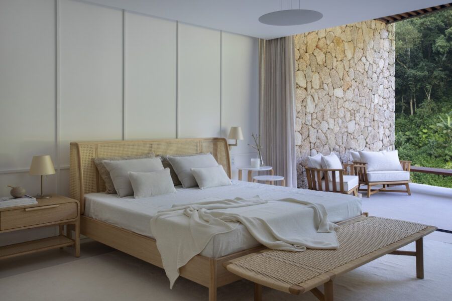 Em Mangaratiba, no Rio de Janeiro, a arquiteta Ester Monteiro encarou a tarefa de desenvolver o interior de uma casa de 800m², desde a escolha dos revestimentos até a sua iluminação. O resultado foi uma casa com o projeto de interiores que conversa e respeita a arquitetura, com mobiliário atemporal, ambientes integrados e um ar contemporâneo que encanta logo de cara.