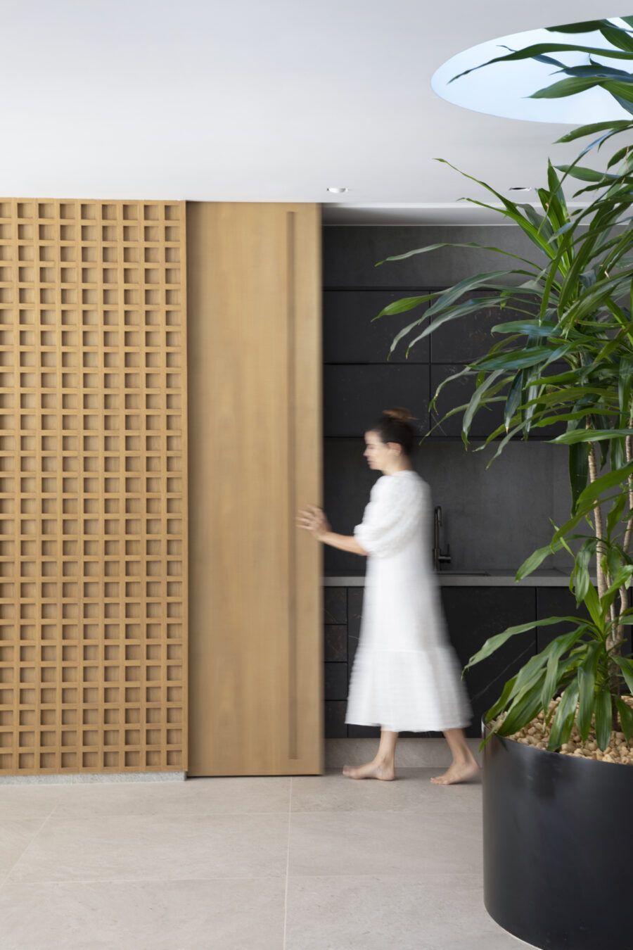 Ester Monteiro: Os clientes compraram o terreno e a casa foi projetada do zero pelo arquiteto Candido Chutorianscy. Eu fiz toda a parte do interior: especificação de revestimentos, mobiliário, detalhamento da marcenaria e opinei na iluminação e em alguns pontos do layout.