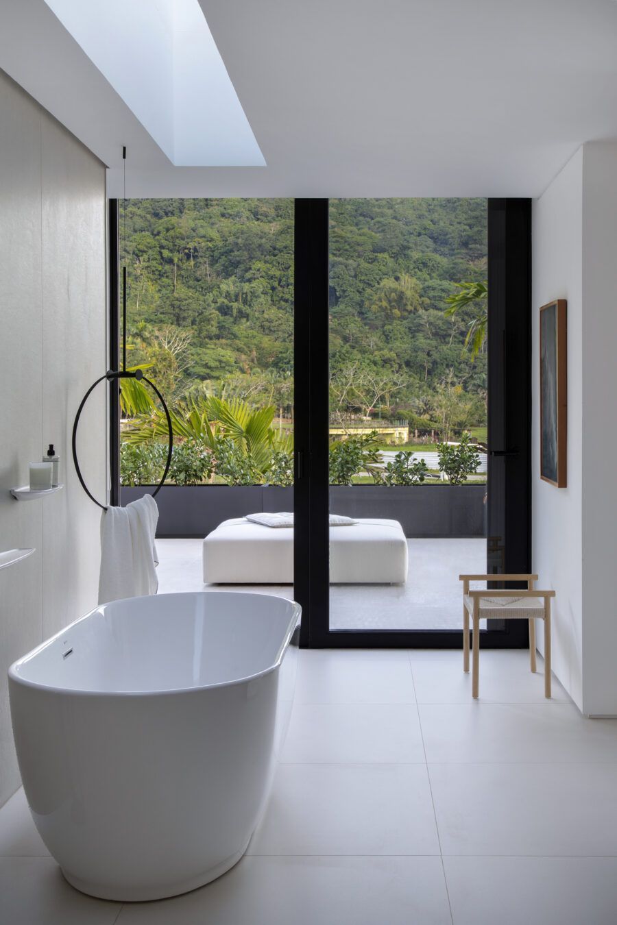 Ester Monteiro: A arquitetura da casa foi muito bem planejada, pelo arquiteto Candido Chutorianscy. Possui circulações generosas, muita iluminação natural, espaços integrados com a área externa e vista para mata e as montanhas que cercam o condomínio. Com uma arquitetura tão bem planejada e convidativa, foi mais fácil desenvolver os interiores dos espaços.