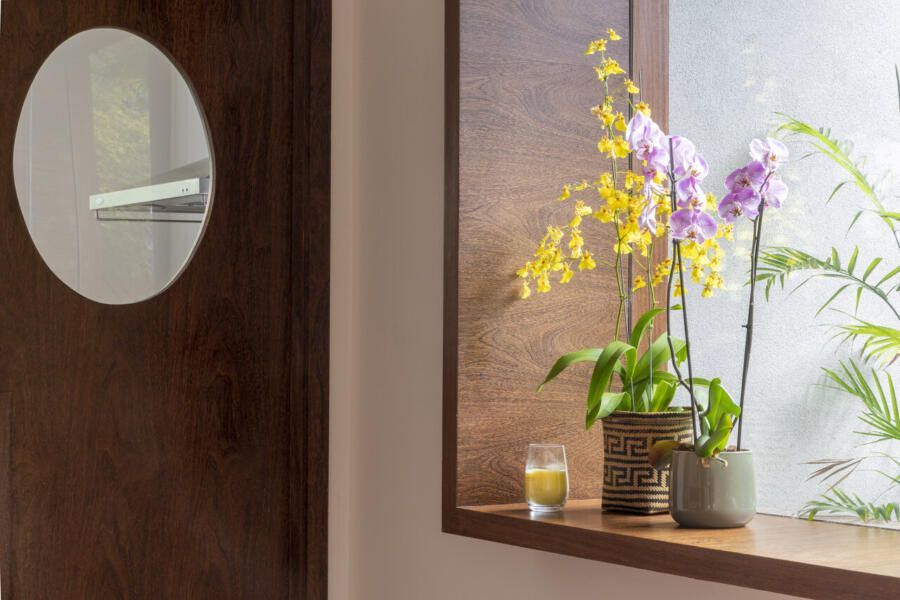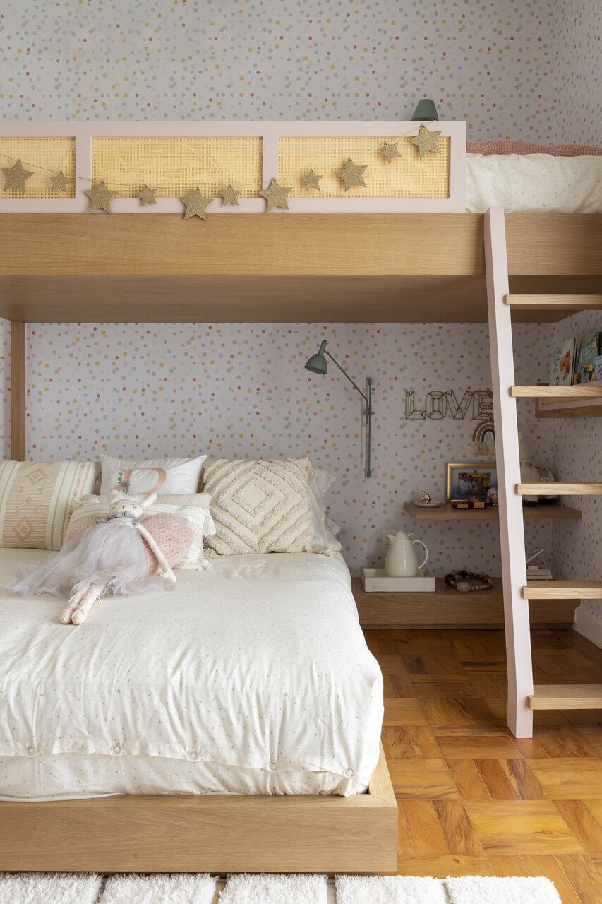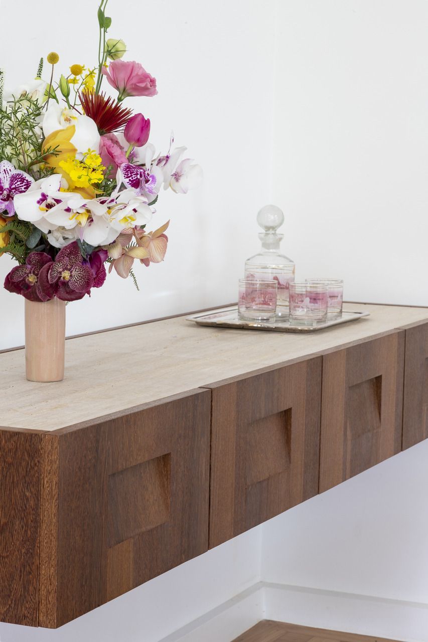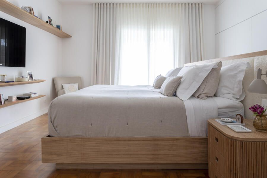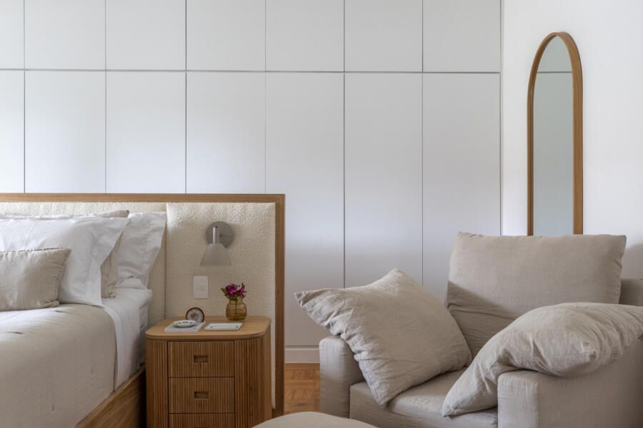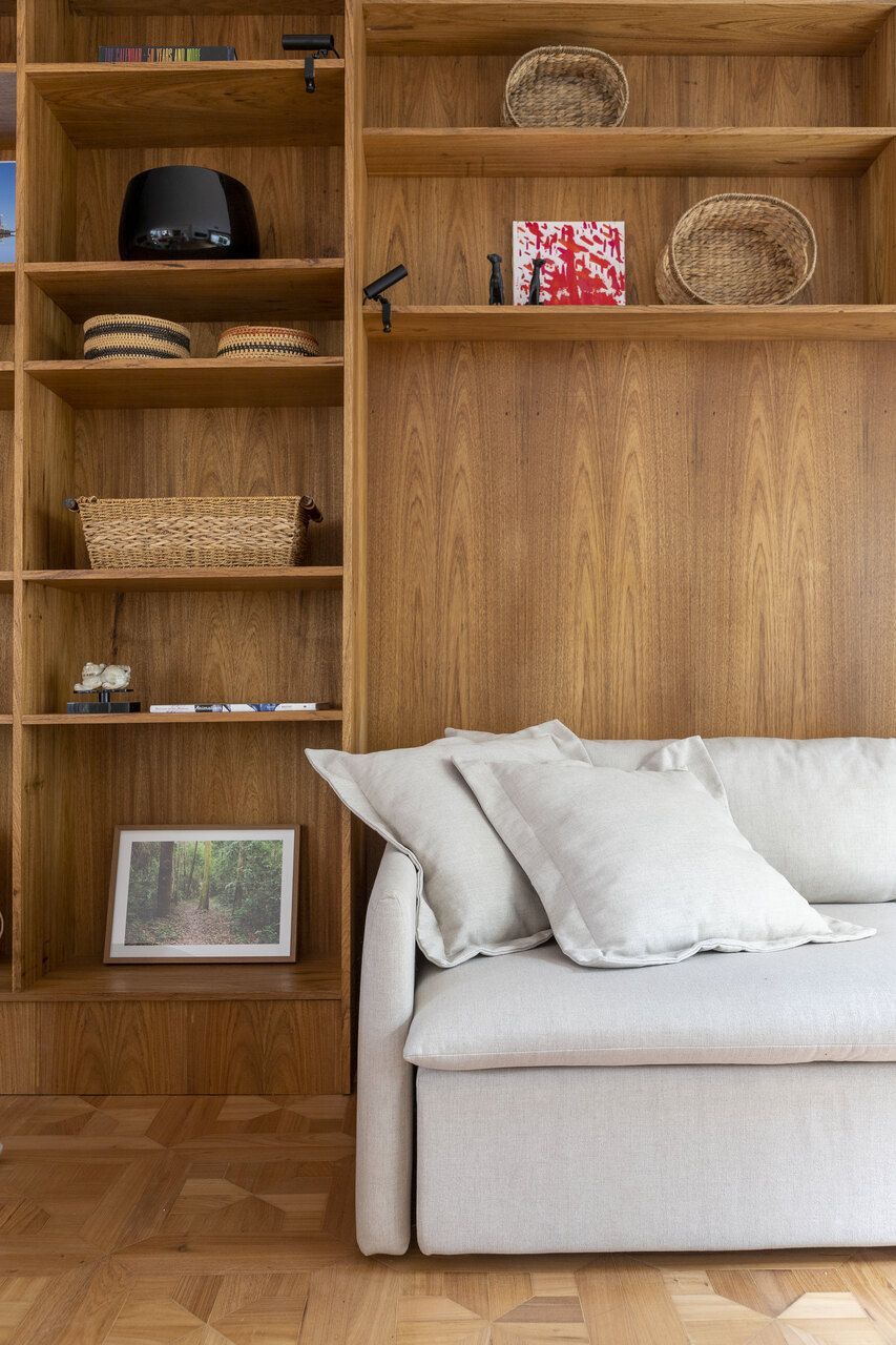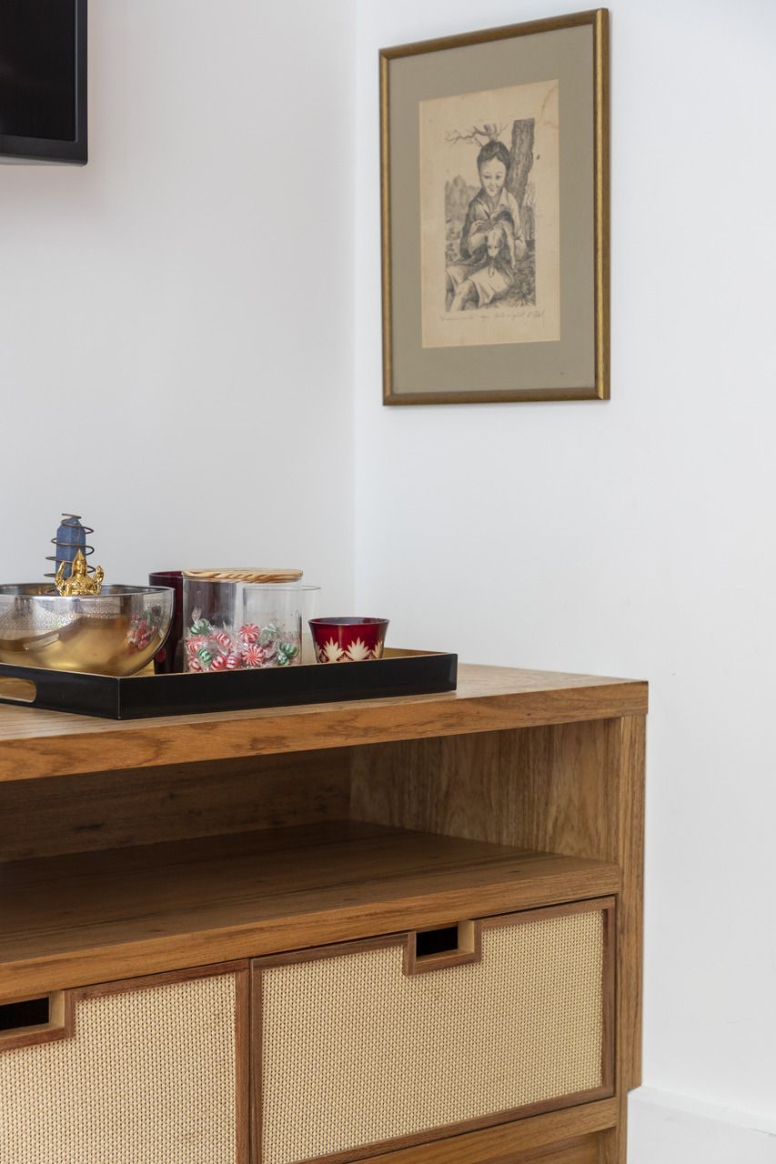 Esse é o caso do Open House de hoje. Com uma arquitetura limpa e atenta aos detalhes, o projeto original foi preservado em diversos pontos, como a conservação da escada em seus moldes originais e também o piso em madeira Cumaru. Já outros foram acrescentados pelo trabalho impecável de Cacau Ribeiro, que desenhou grande parte da marcenaria que hoje deixa a casa com jeito de lar.