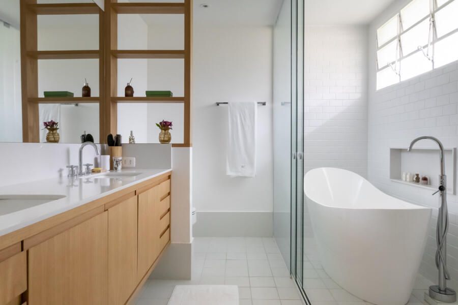 Uma mudança importante foi a atualização da planta, integrando ambientes e deixando-os mais fluidos. No vídeo completo, você confere como essa modernização da casa dos anos 80 foi feita de maneira leve, elegante e muito inteligente.