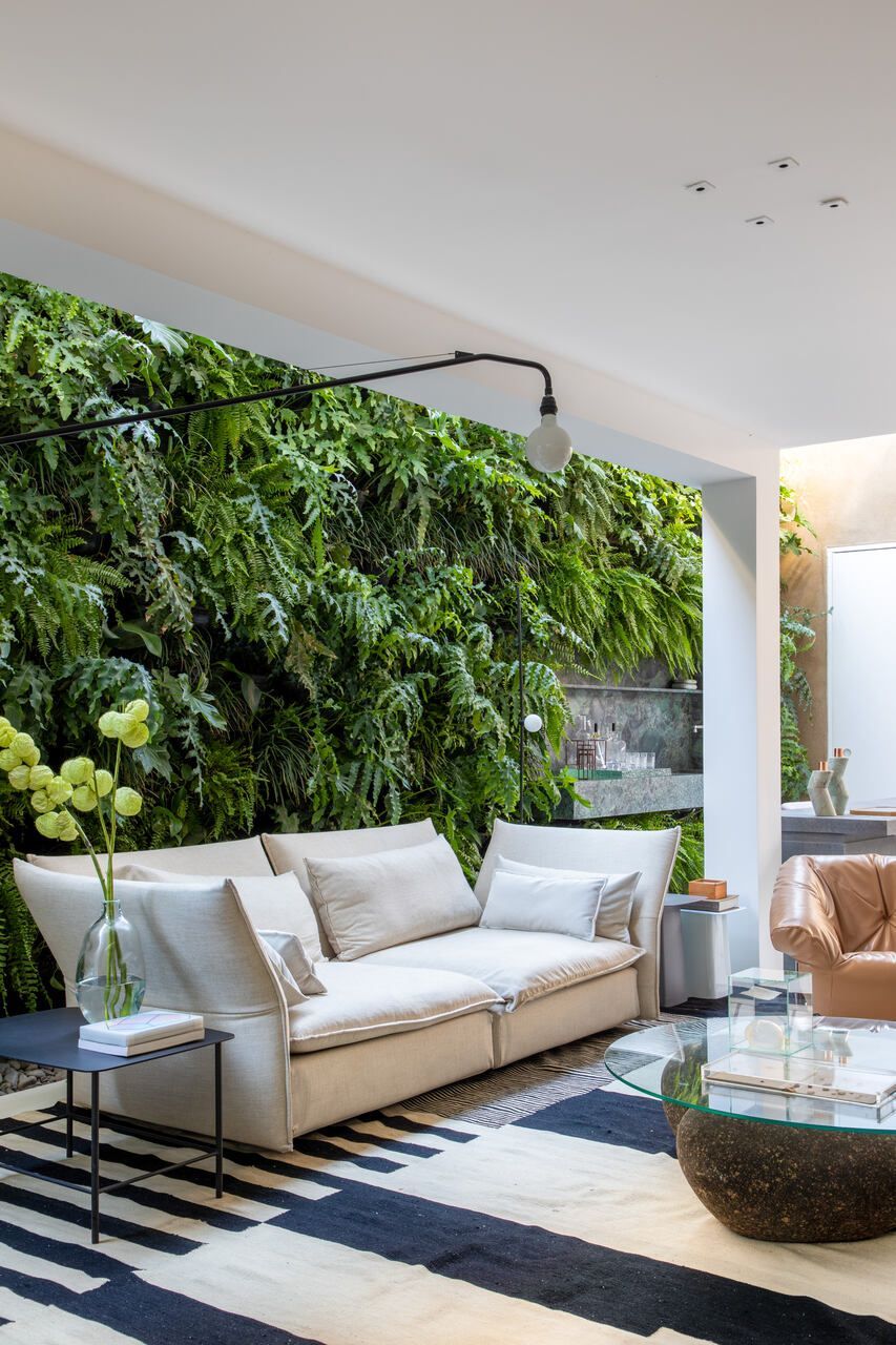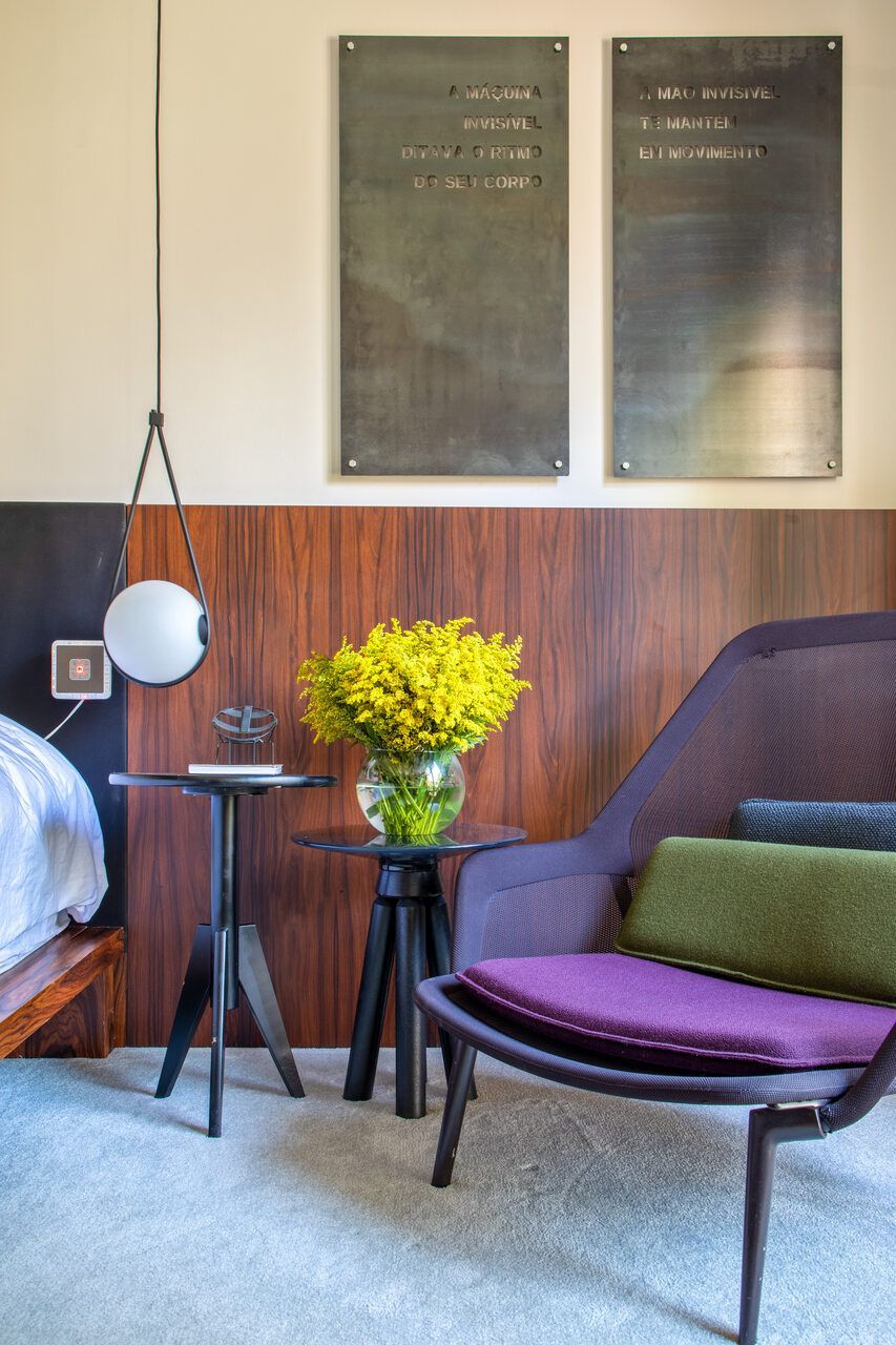 Fizemos um jardim vertical em uma das janelas. Isso permitiu uma sensação avarandada para o espaço, e deixou o local mais agradável.