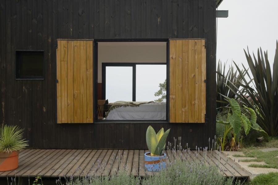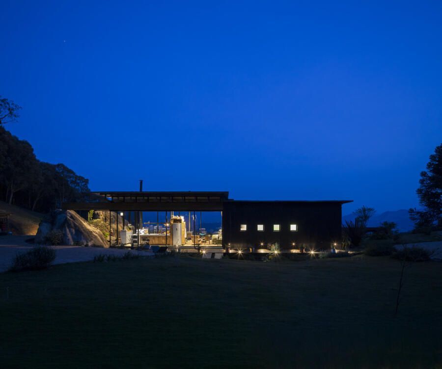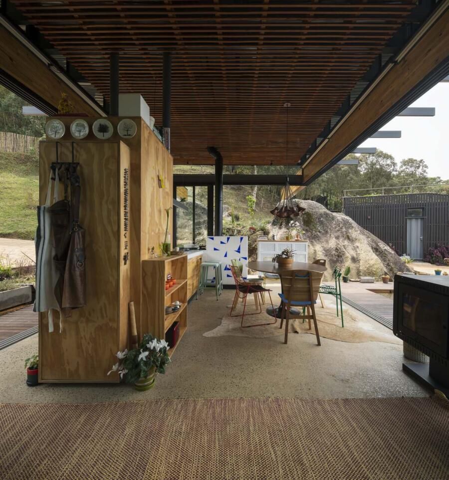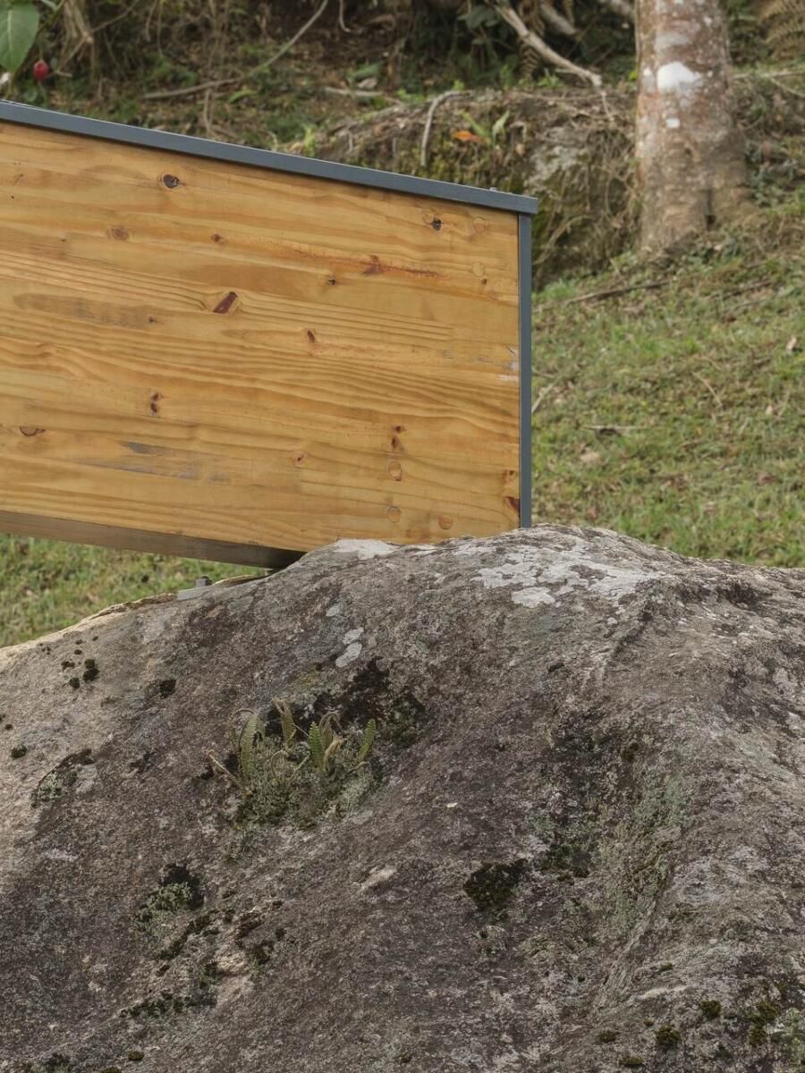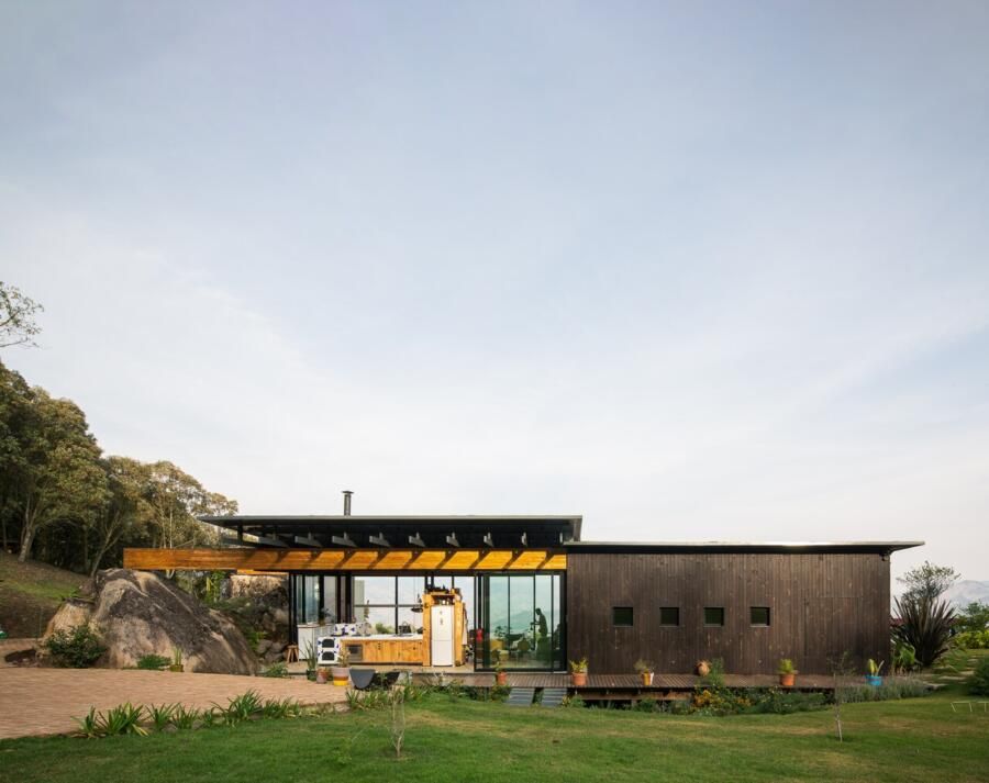 “As pedras do terreno, de cerca de cinco metros de altura, são os pilares para as vigas da cobertura, criando um vão para a vista da serra. ”