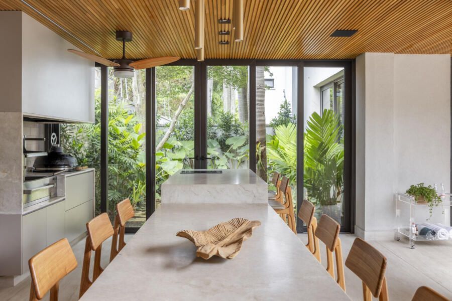 A casa assinada pelo escritório Gabriela Campolina Arquitetura tem 427m² e está localizada no bairro Campo Belo, em São Paulo. Voltado para um casal com duas filhas pequenas, de 6 e 8 anos, o projeto é uma fusão de modernidade e funcionalidade, com destaque para o uso do MDF e ambientes pensados na fácil manutenção no dia a dia.