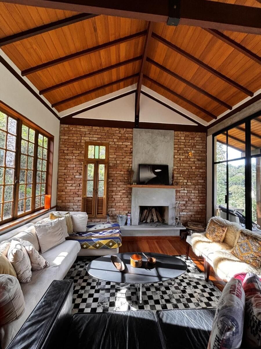 A inspiração para o projeto veio do estilo rústico, com uso de materiais de demolição e soluções sustentáveis. O objetivo era criar um espaço aconchegante, sem excessos, com cara de casa da roça — e que aproveitasse ao máximo os recursos naturais do entorno.