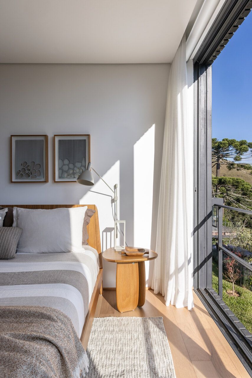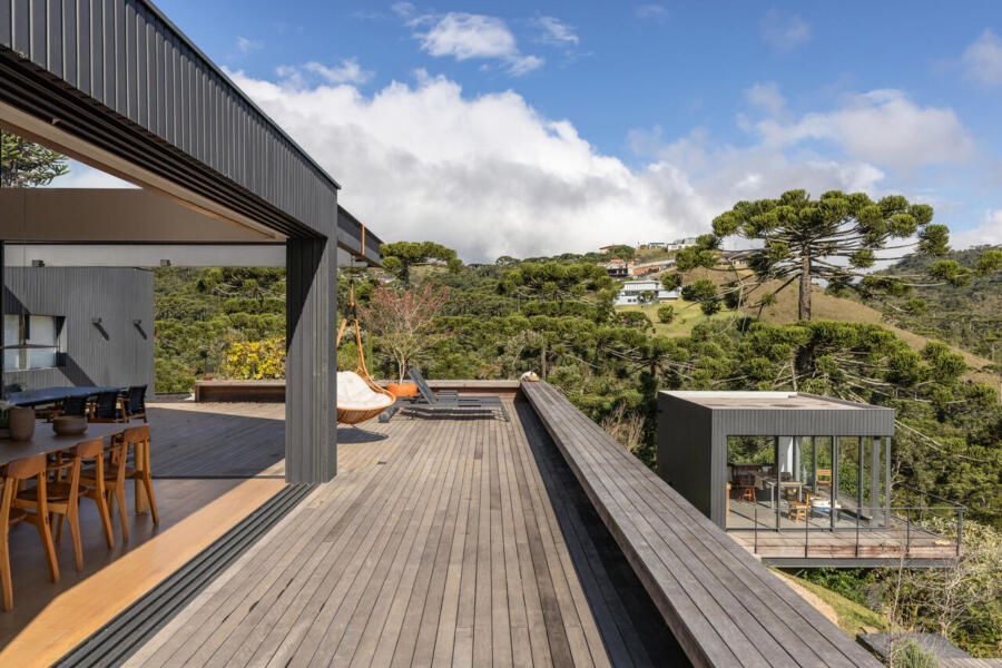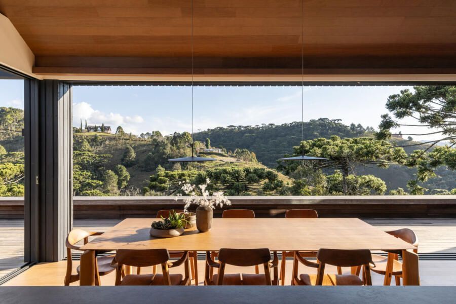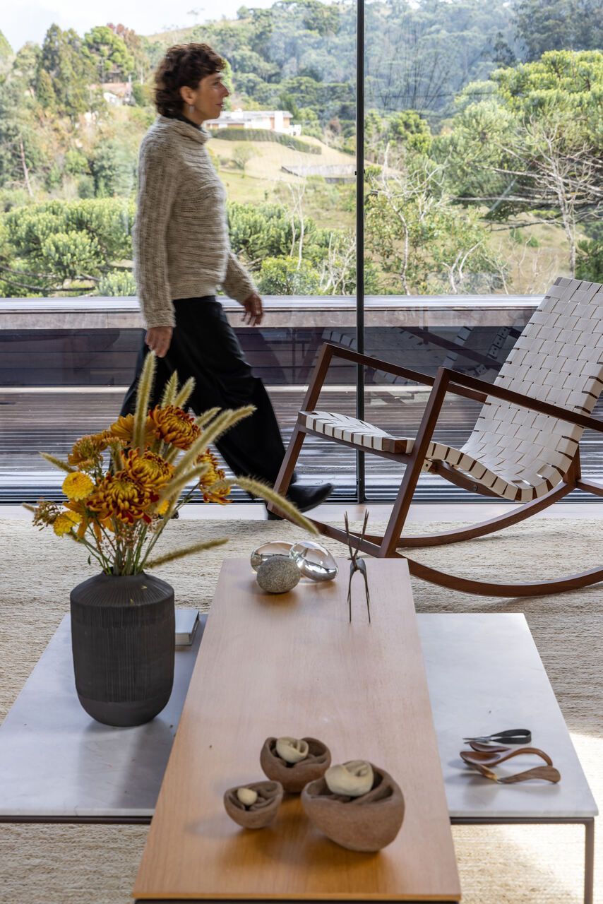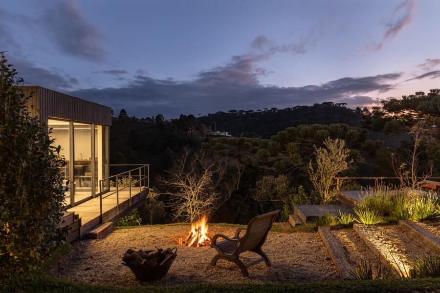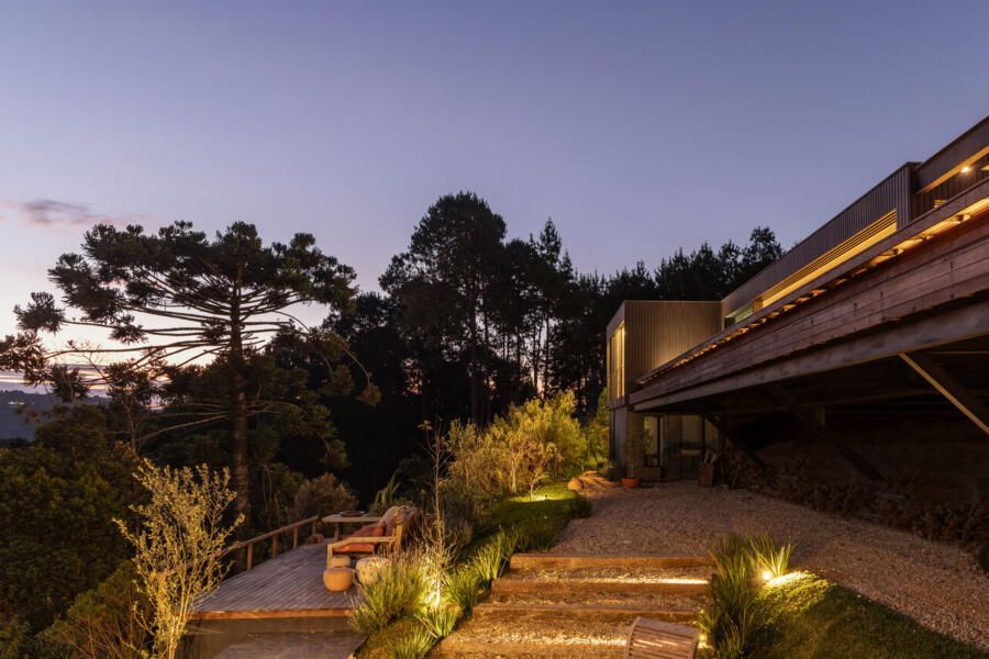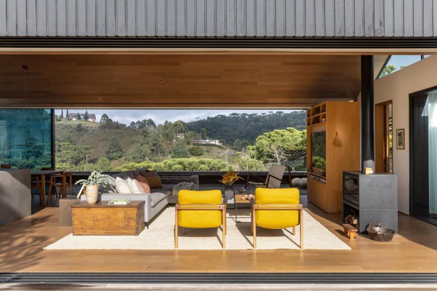 Essas escolhas não apenas reduzem o impacto ambiental da casa, como também reforçam o seu vínculo com o contexto natural de Campos do Jordão.