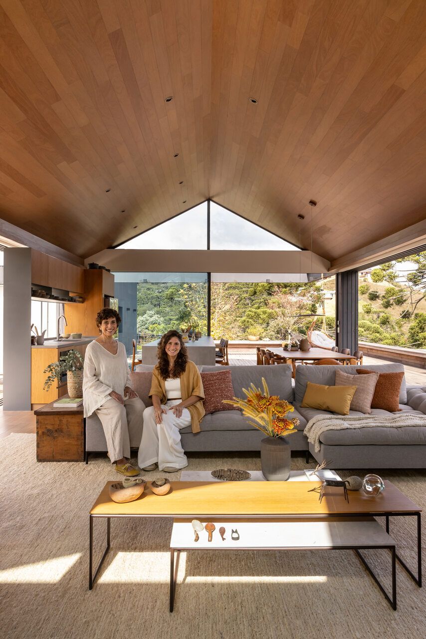Quando Diane decidiu construir a casa de seus sonhos em um terreno que tinha há anos em Campos do Jordão, a decisão de chamar Shinagawa para fazer o projeto não poderia ser mais natural. A residência foi pensada para abrigar um casal com dois pets, cujos filhos já são casados e visitam com frequência. A proposta era clara: um lar confortável, compacto e conectado à natureza, que pudesse acolher a família, oferecer tranquilidade e integrar a vida pessoal com a atividade artística da proprietária.