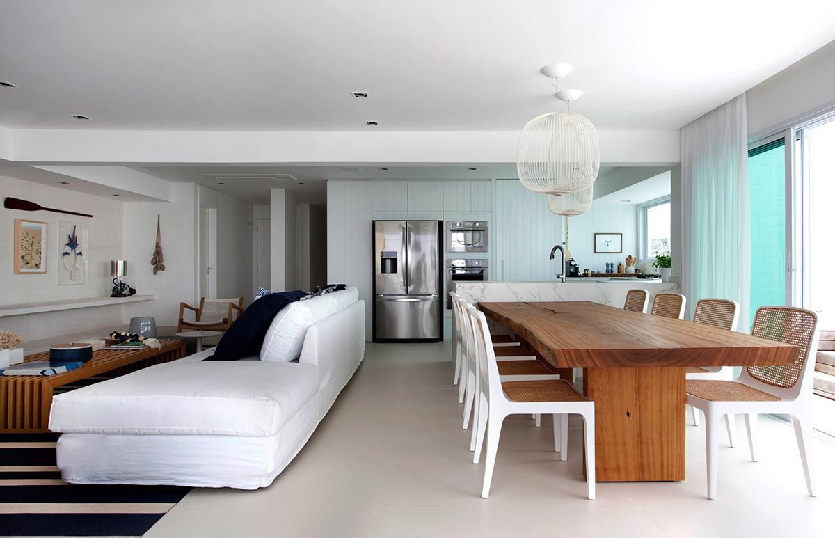 Receber a família e os amigos em casa é uma das coisas que os moradores deste apartamento mais amam fazer. Como premissa, eles solicitaram uma boa integração em toda a área social, que foi resolvida de um jeito bem inusitado: através de um bar INCRÍVEL no meio da sala! Quando recebi as fotos do [...]
