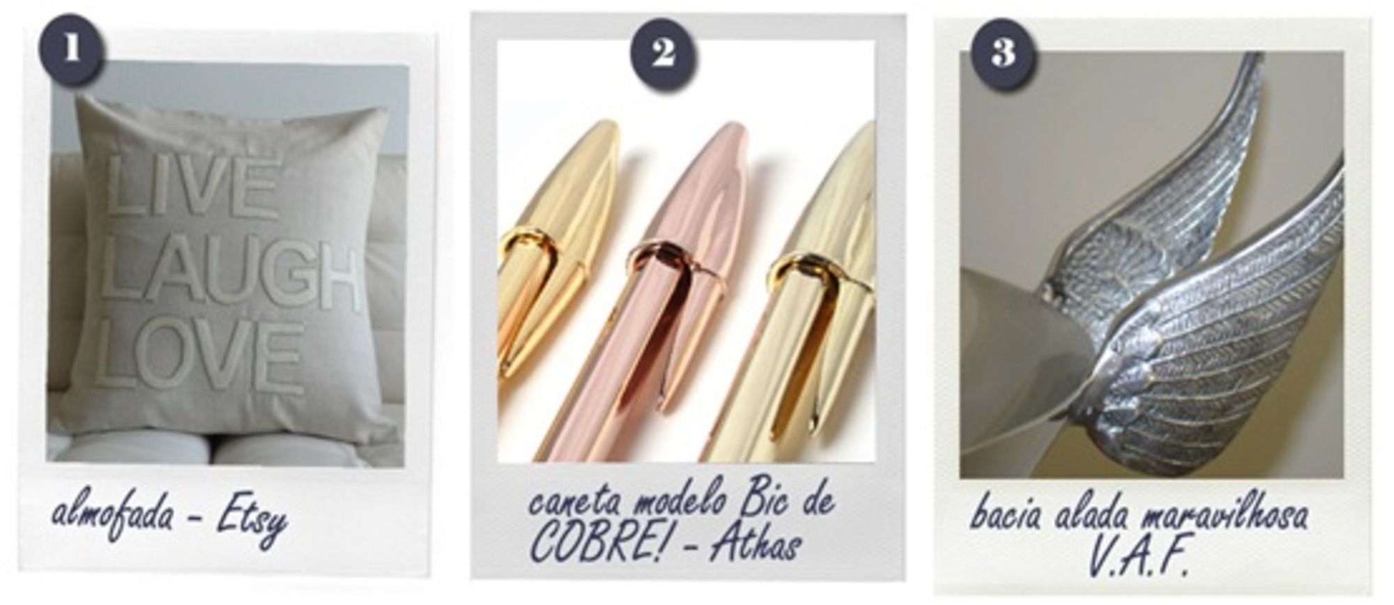 1) Para quem ainda não conhece, a Etsy é uma grande loja online que só trabalha com artistas e artesãos. Vale a pena navegar e perder um tempinho lá dentro.2) As canetas da Athas são um sonho. O design já estamos familiarizados e os materiais tornam as peças irresistíveis. Escolha a sua: ouro amarelo, rosé ou verde, [...]
