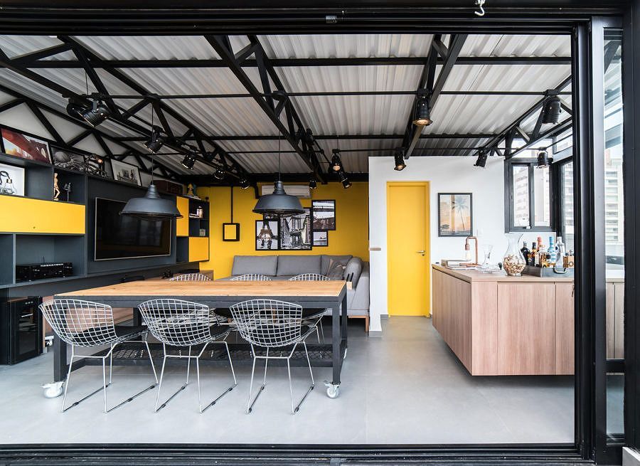O arquiteto Pietro Terlizzi foi quem reformou este duplex e apostou nos tons da pauta de hoje com ousadia! O cinza aparece bastante nos acabamentos e na decoração, transitando pelas nuances de sua paleta. Na parte interna, que tal uma escada helicoidal amarela para contrastar com o restante? A cor se repete na convidativa área externa do segundo andar, destacando a porta, a parede do estar e a marcenaria. Clique AQUI para ver a matéria completa.