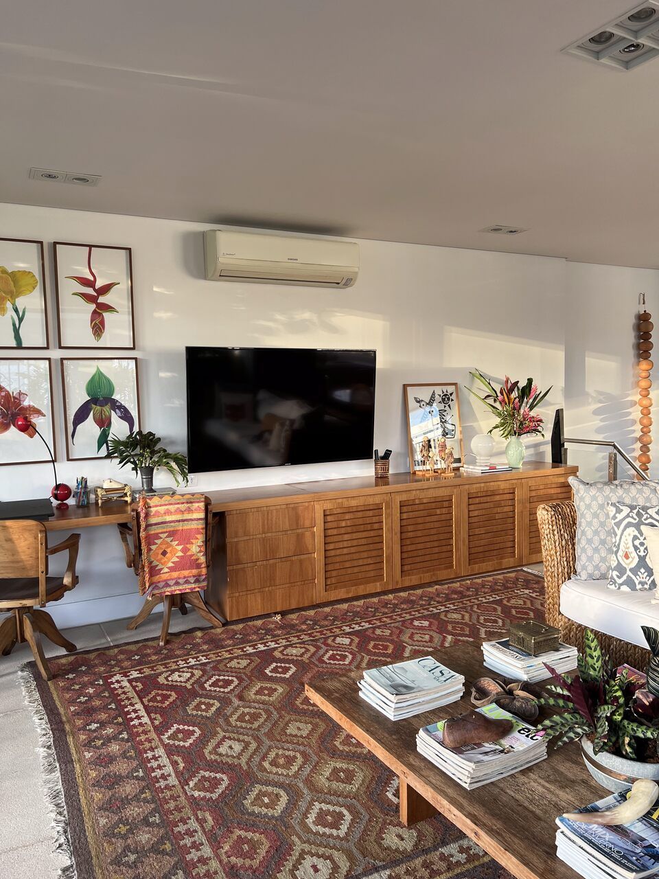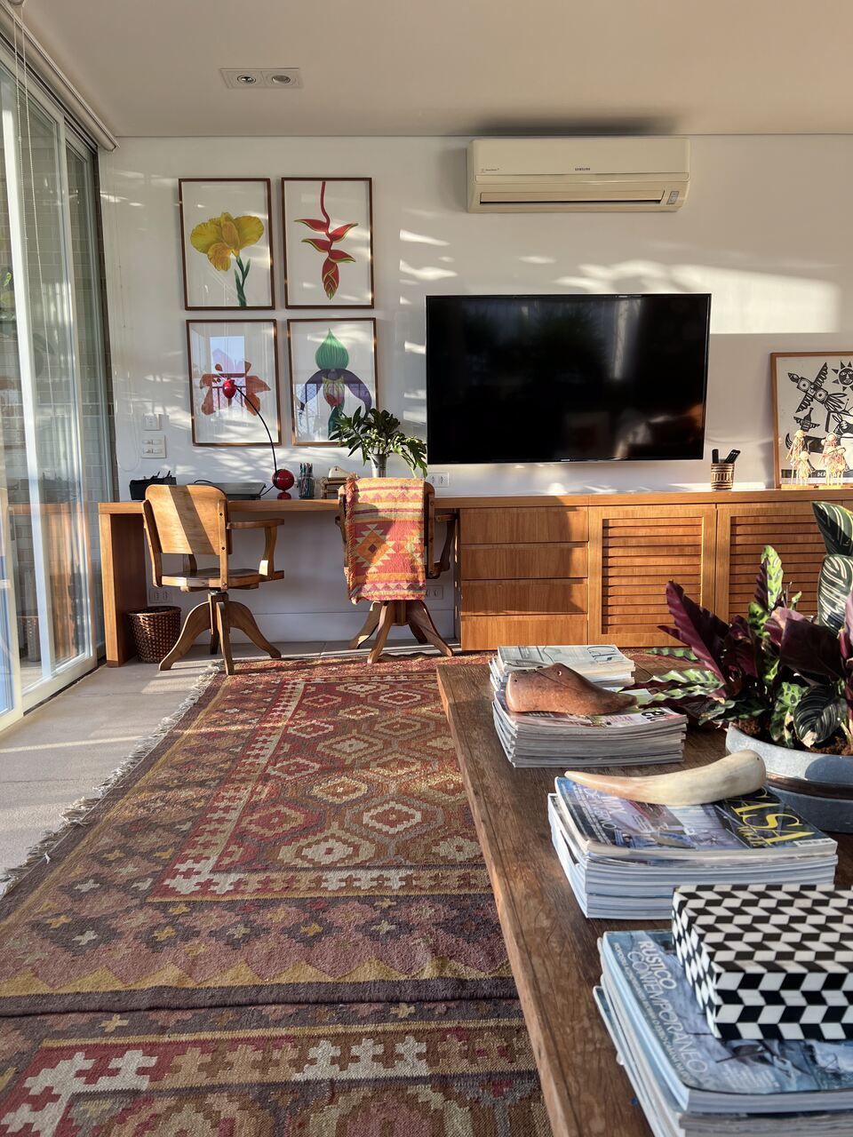 O projeto arquitetônico residencial foi desenvolvido inteiramente pela Maura e o marido. Com uma área de 240 m², na Vila São Francisco, em São Paulo, o apartamento é composto por sala, quartos, cozinha e uma cobertura.