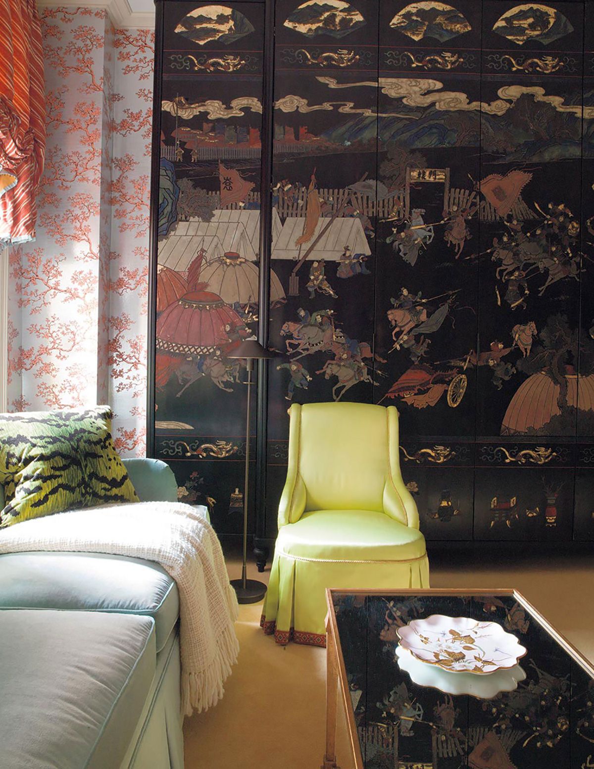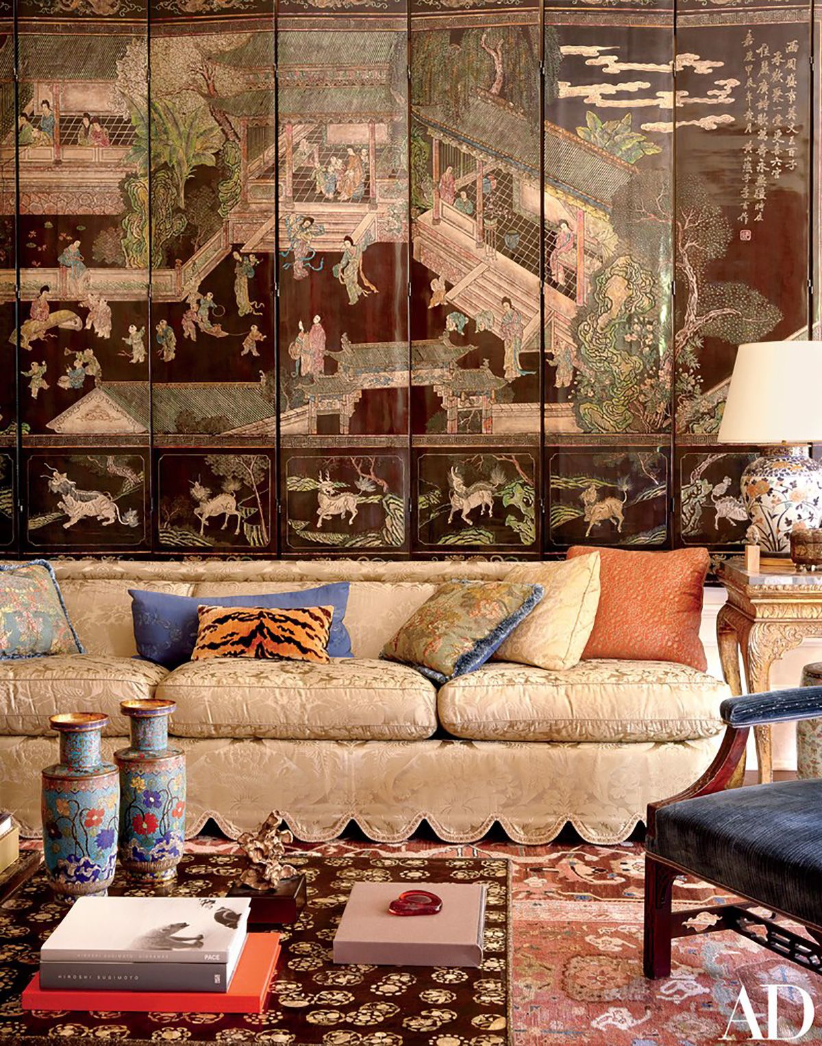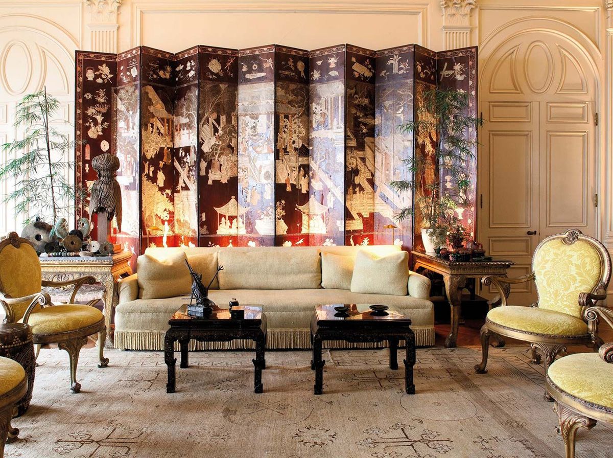 Como eu te falei lá em cima um dos nomes que mergulhou de cabeça na tendência dos coromandels foi Coco Chanel nos anos 1910. O biombo chinês era o item de decoração favorito dela e o usava para esconder as portas de saída da sua casa quando tinha convidados, diz lenda que era porque ela era um pouco mais solitária e adorava uma boa companhia.