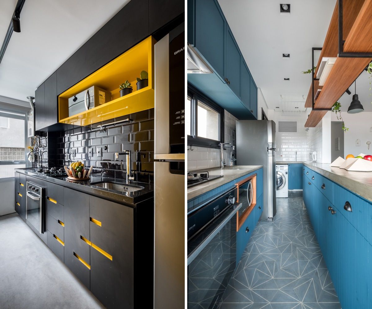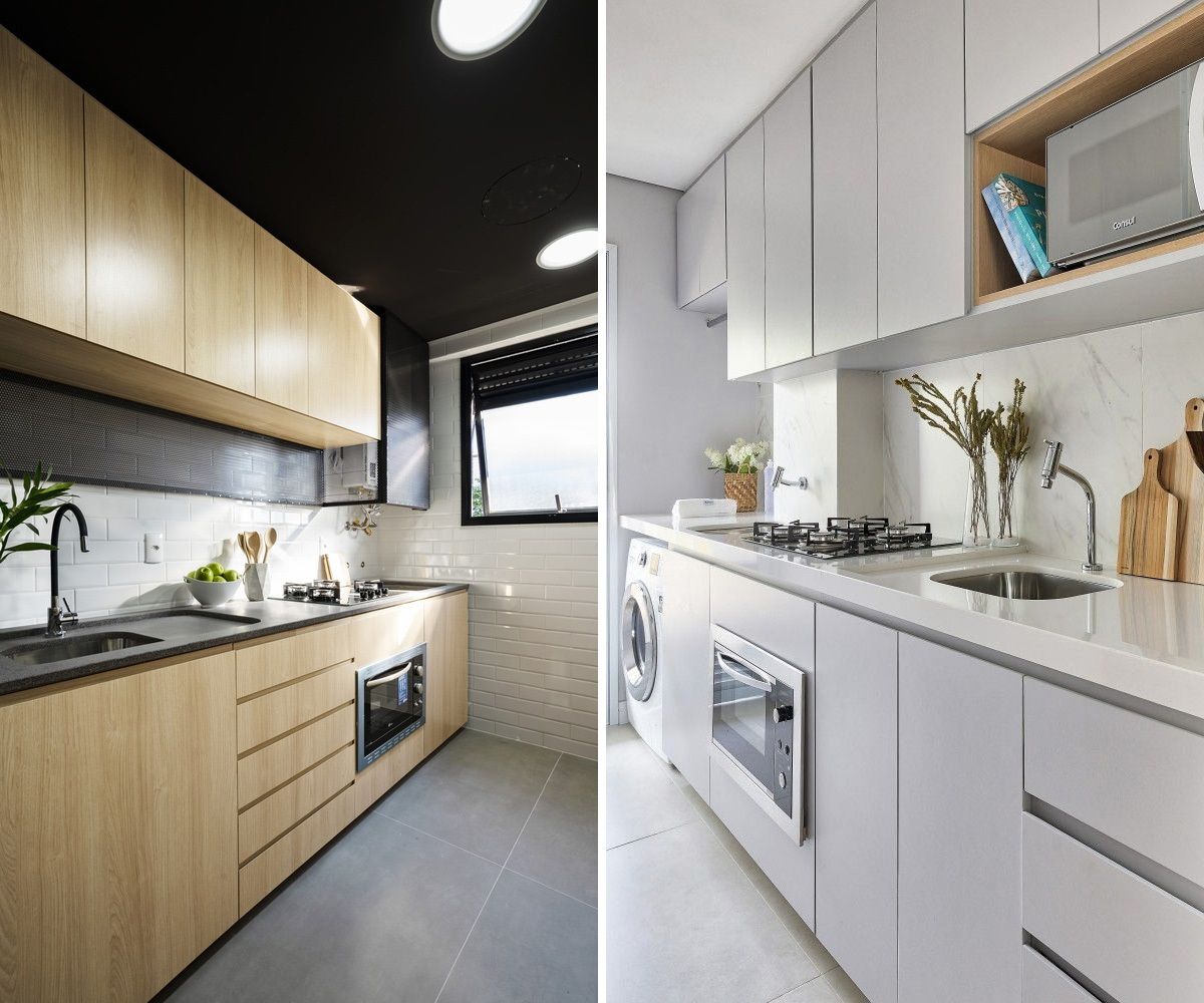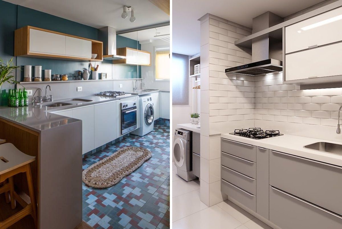 Separei algumas referências para ficar mais claro como funciona essa junção, e te pergunto: acha viável ter uma cozinha integrada com a área de serviço? Funcionaria na sua casa/apto? Me conta nos comentários ;-)