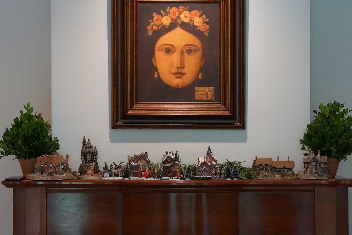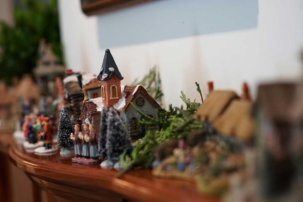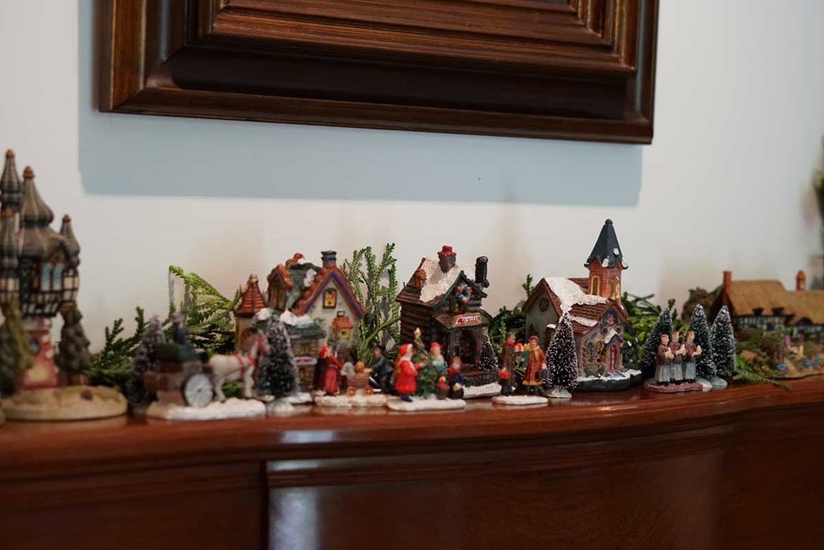 Bom, e como tem criança em casa, minha mãe montou uma pequena vila natalina na lareira para o Bento curtir. Ela usou algumas casinhas que comprou na Divino Espaço e muitas outras de uma coleção que eu tenho. Olha que graça o resultado final: