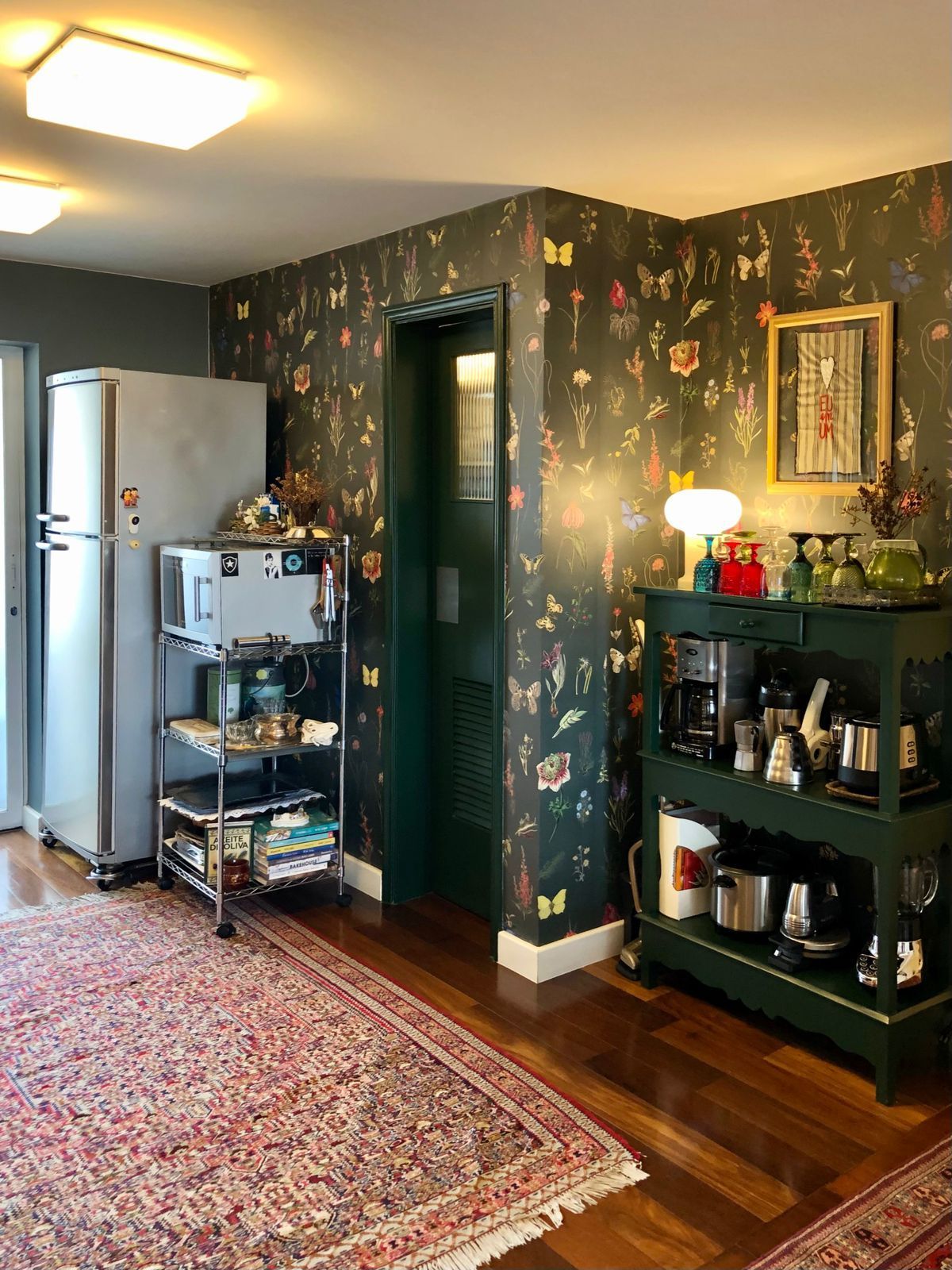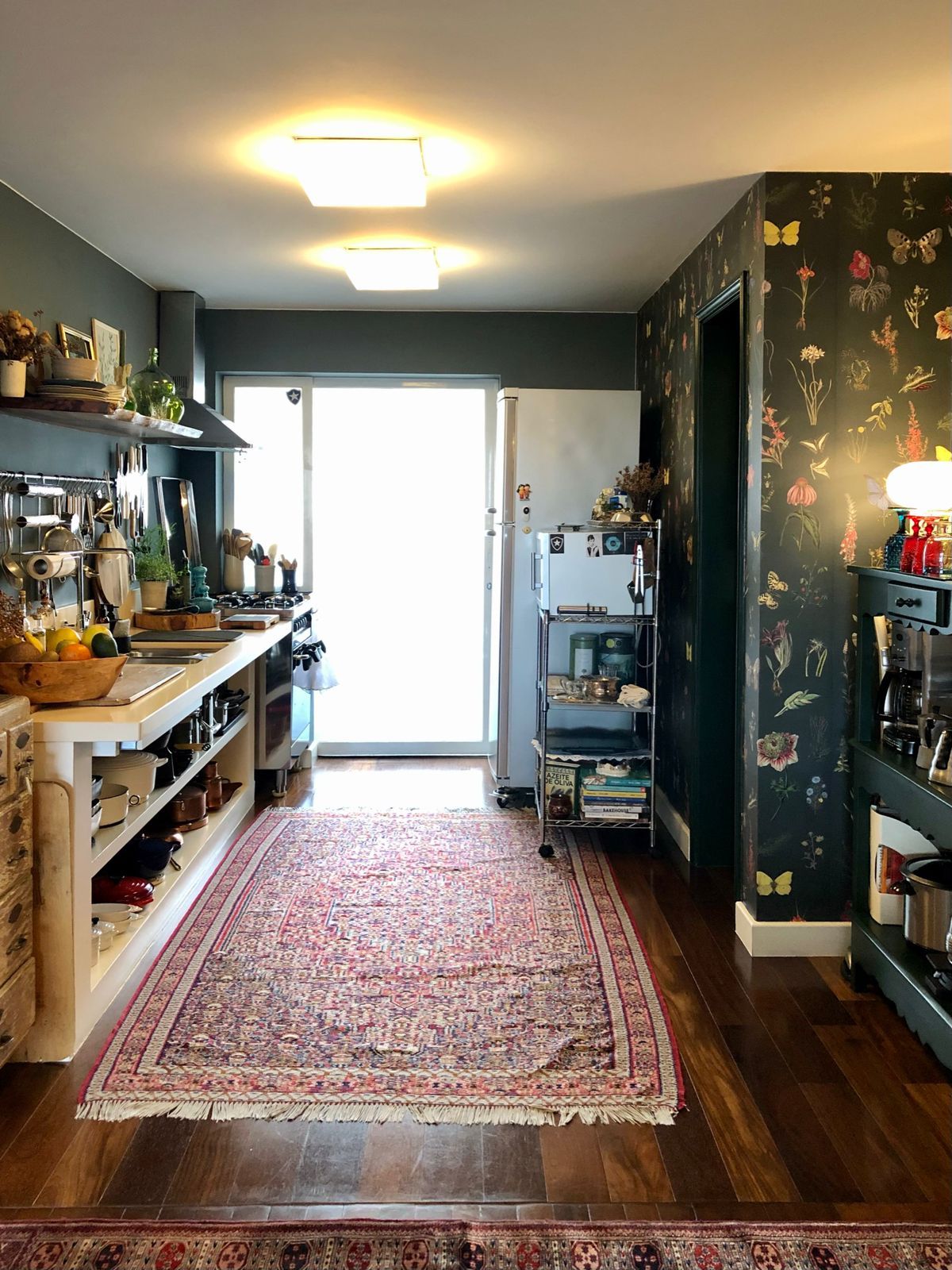 O apartamento de 180m² em Santo Amaro, São Paulo, é da azeitóloga Mia Athayde, que inicialmente seria para ela e o marido. O projeto original do imóvel tinha quatro quartos, mas viraram três, sendo uma suíte. Mas logo uma das quatro filhos foi morar com eles, além da outra que os visita uma vez ao ano e dos netos que ganharam um quarto só para eles na casa dos avós.