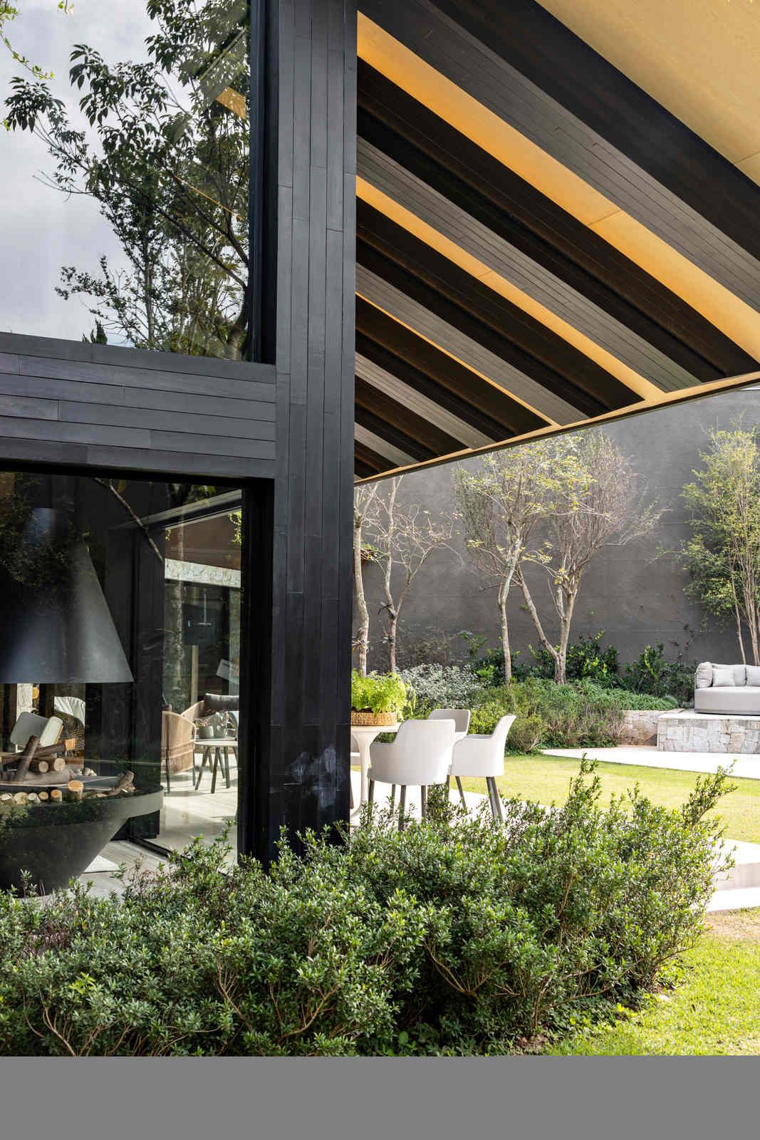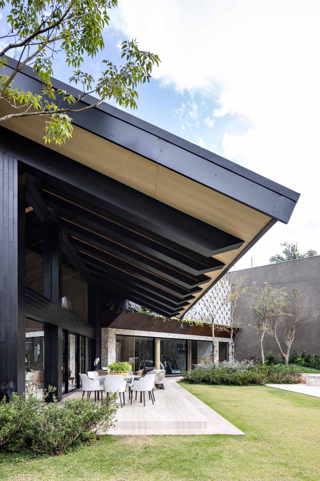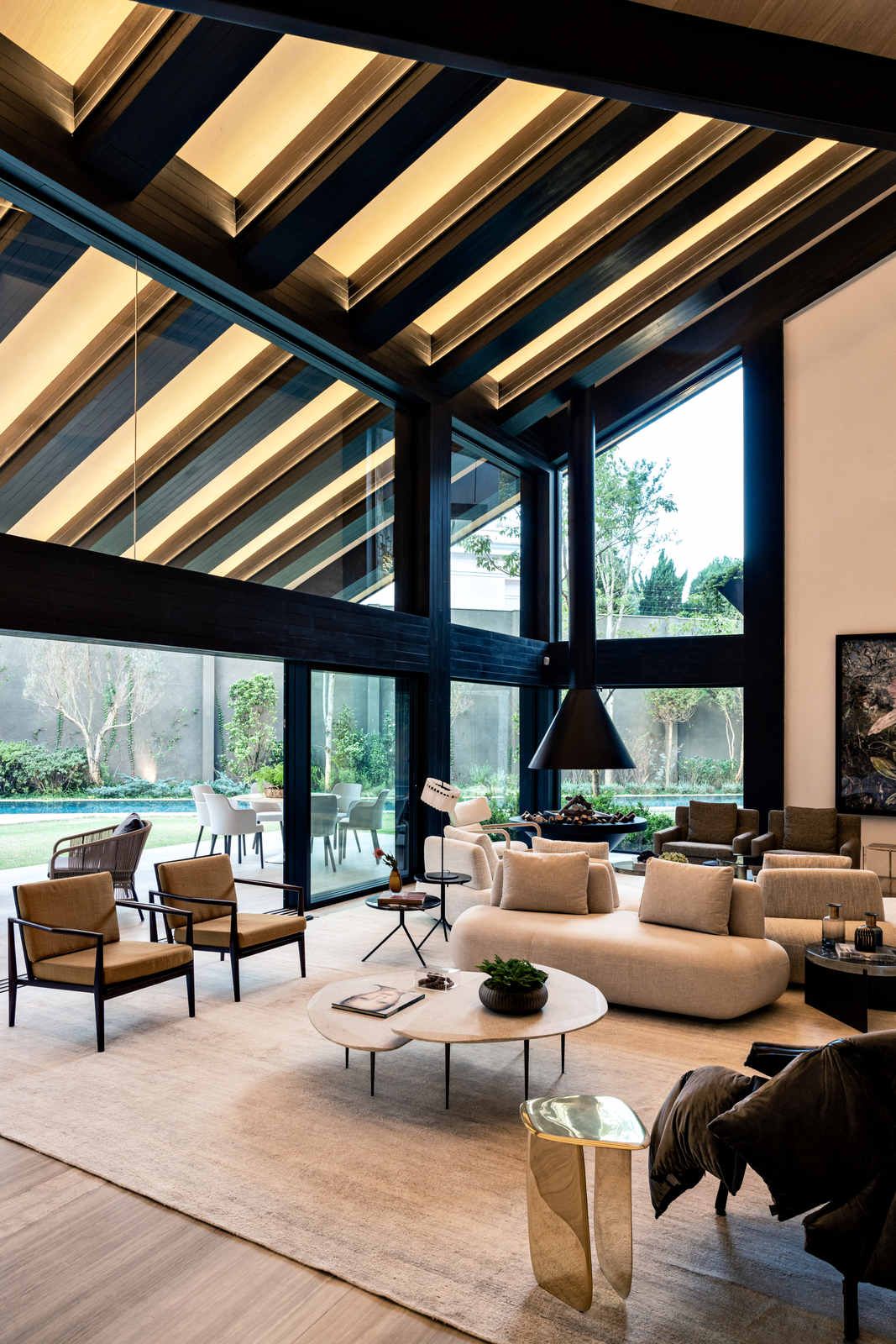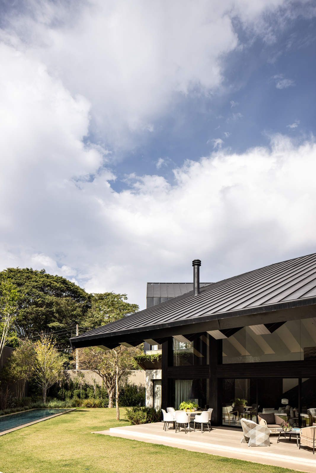 Bia Prado: “Um dos destaques da casa com certeza foi o telhado. Passamos por grandes dificuldades com ele, pois esse tipo de telhado é muito comum nos Estados Unidos e Europa, mas no Brasil já não vemos o modelo. Então ele foi desenvolvimento especificamente para este projeto junto com fornecedores e a construtora. No final deu tudo certo, tornando a casa ainda mais atual.”