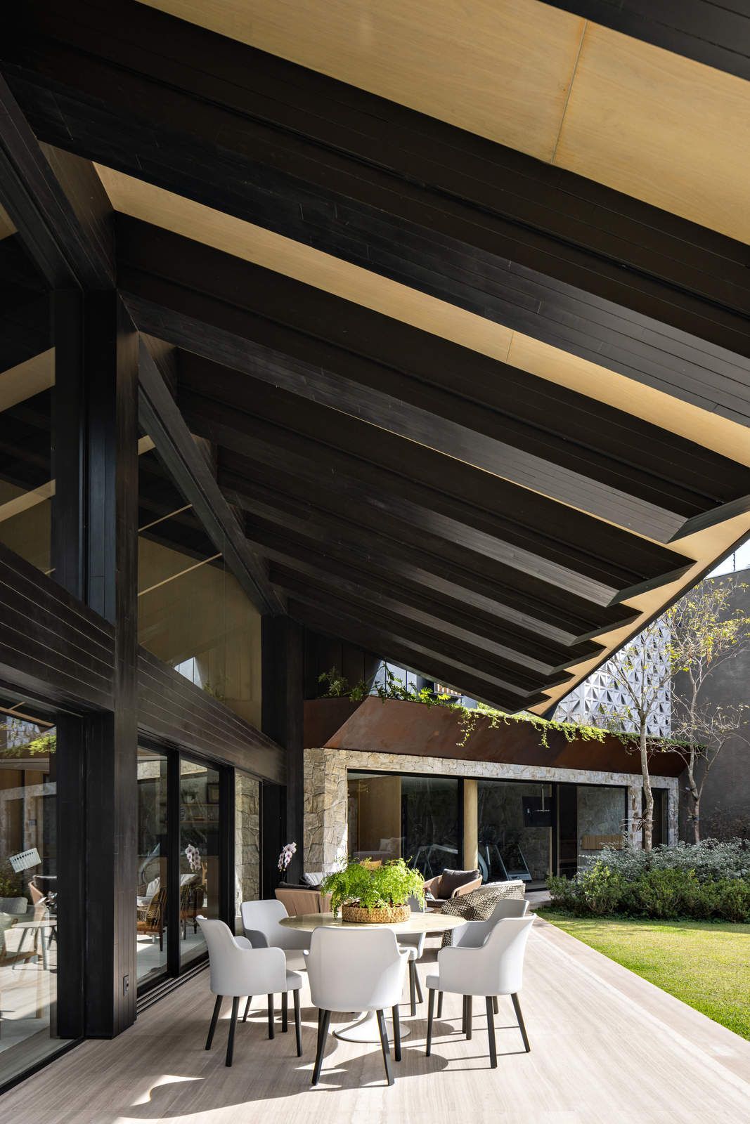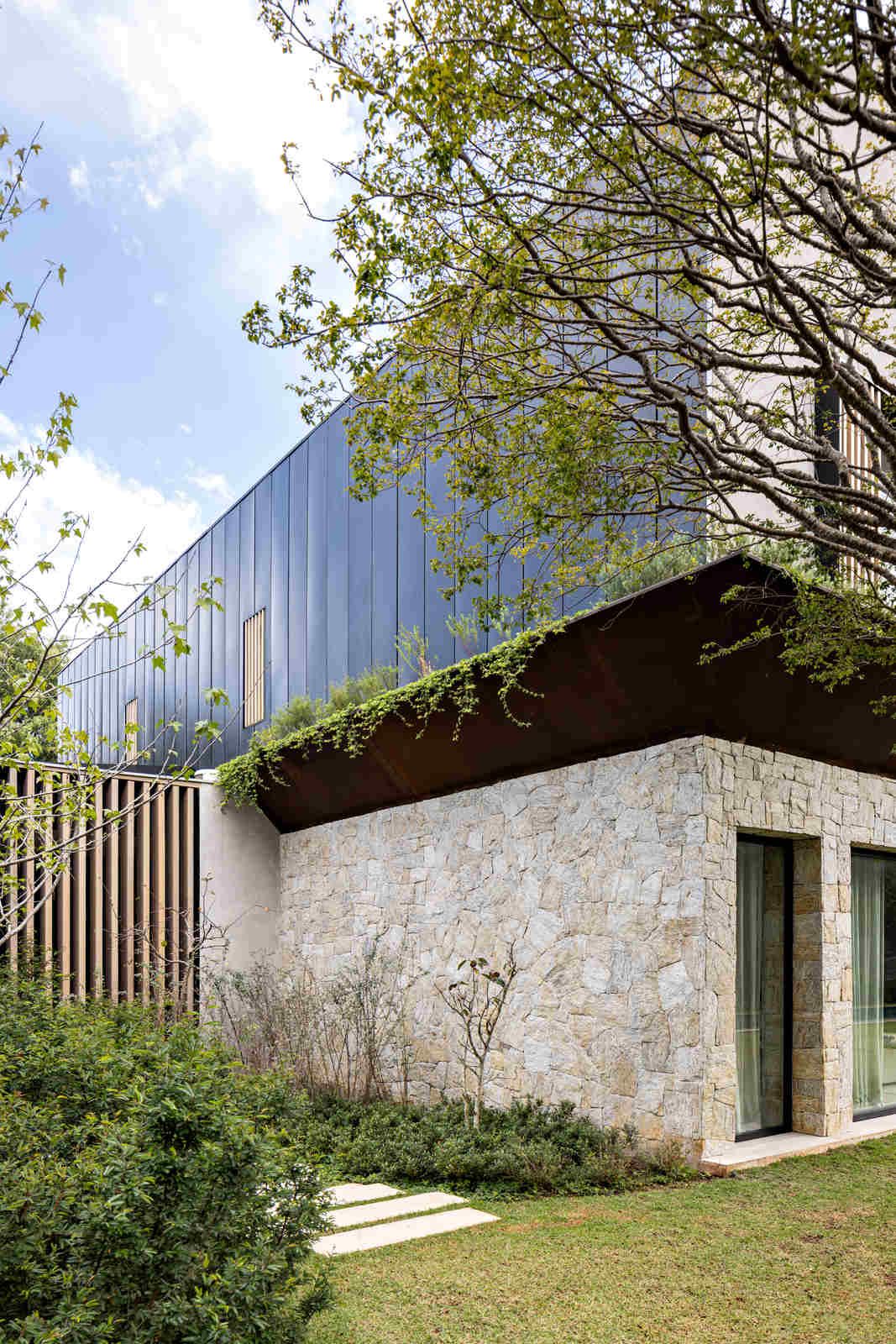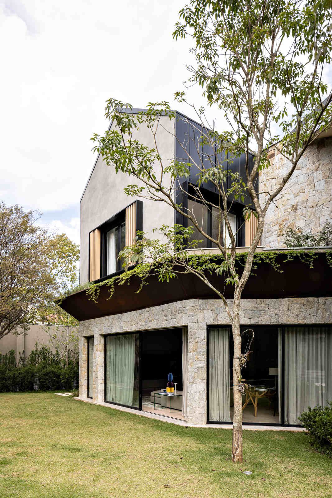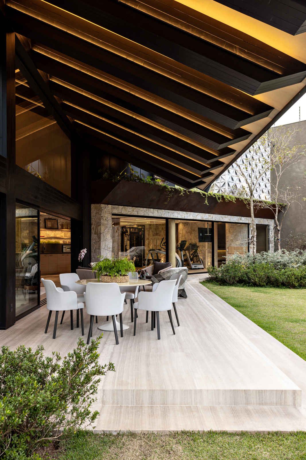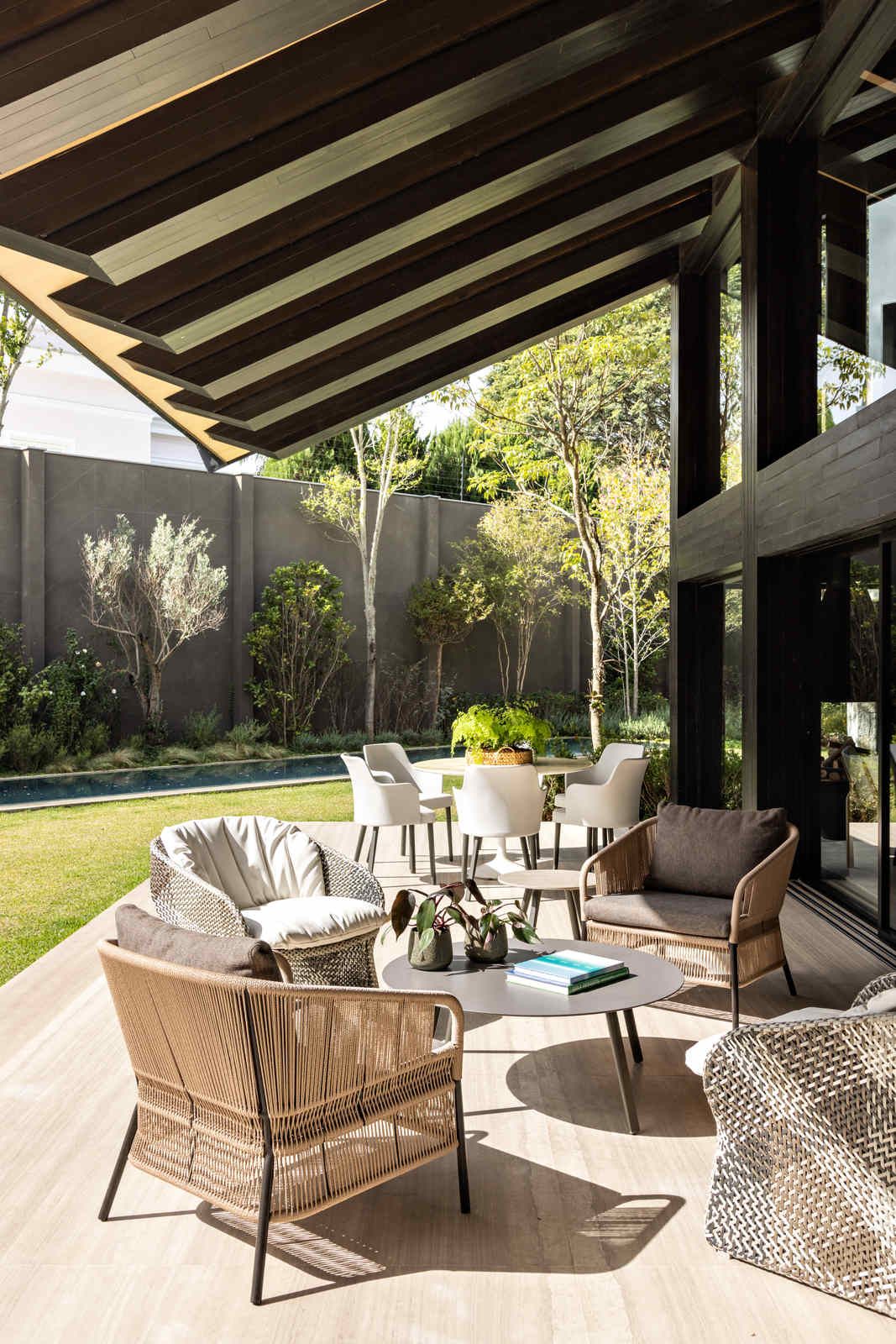 Bia Prado: “Um dos destaques da casa com certeza foi o telhado. Passamos por grandes dificuldades com ele, pois esse tipo de telhado é muito comum nos Estados Unidos e Europa, mas no Brasil já não vemos o modelo. Então ele foi desenvolvimento especificamente para este projeto junto com fornecedores e a construtora. No final deu tudo certo, tornando a casa ainda mais atual.”