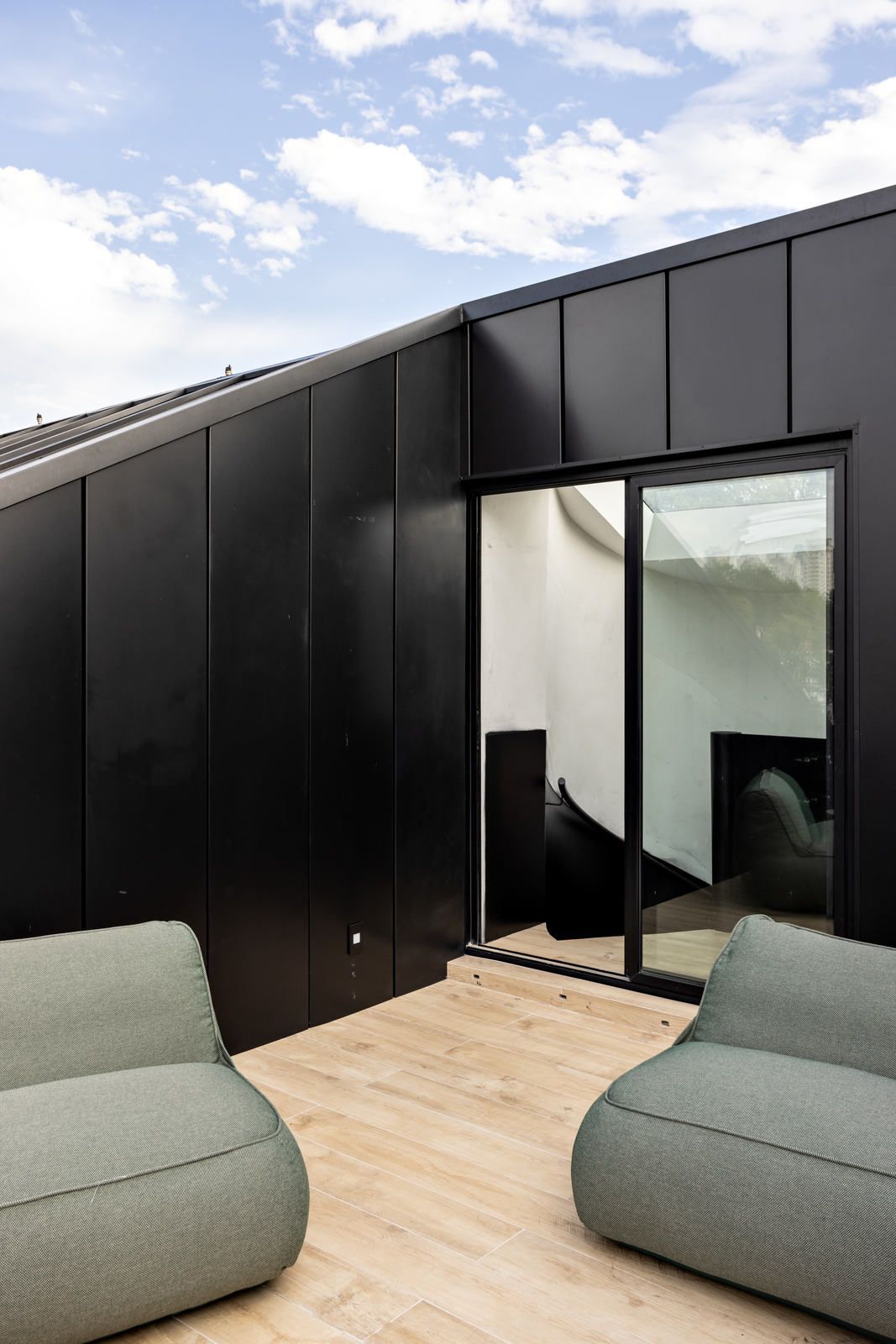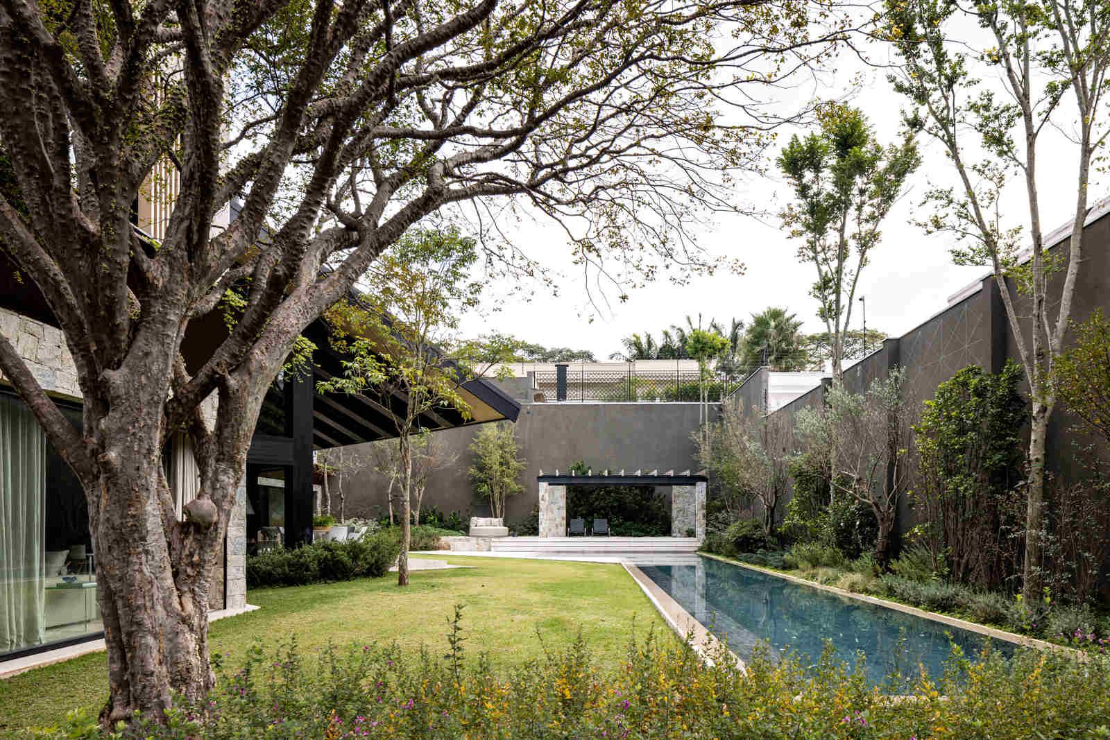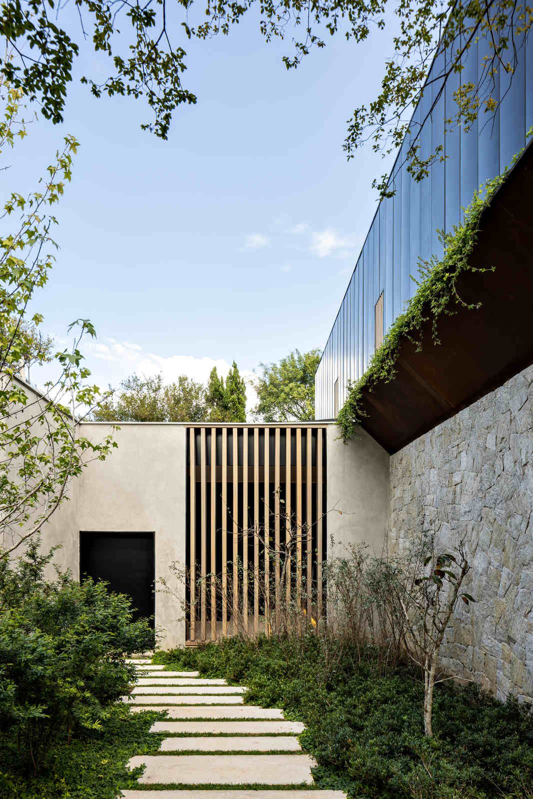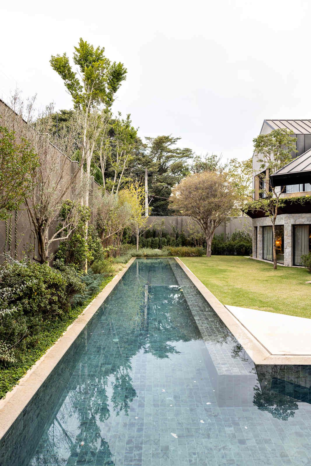Bia Prado: “Um dos destaques da casa com certeza foi o telhado. Passamos por grandes dificuldades com ele, pois esse tipo de telhado é muito comum nos Estados Unidos e Europa, mas no Brasil já não vemos o modelo. Então ele foi desenvolvimento especificamente para este projeto junto com fornecedores e a construtora. No final deu tudo certo, tornando a casa ainda mais atual.”