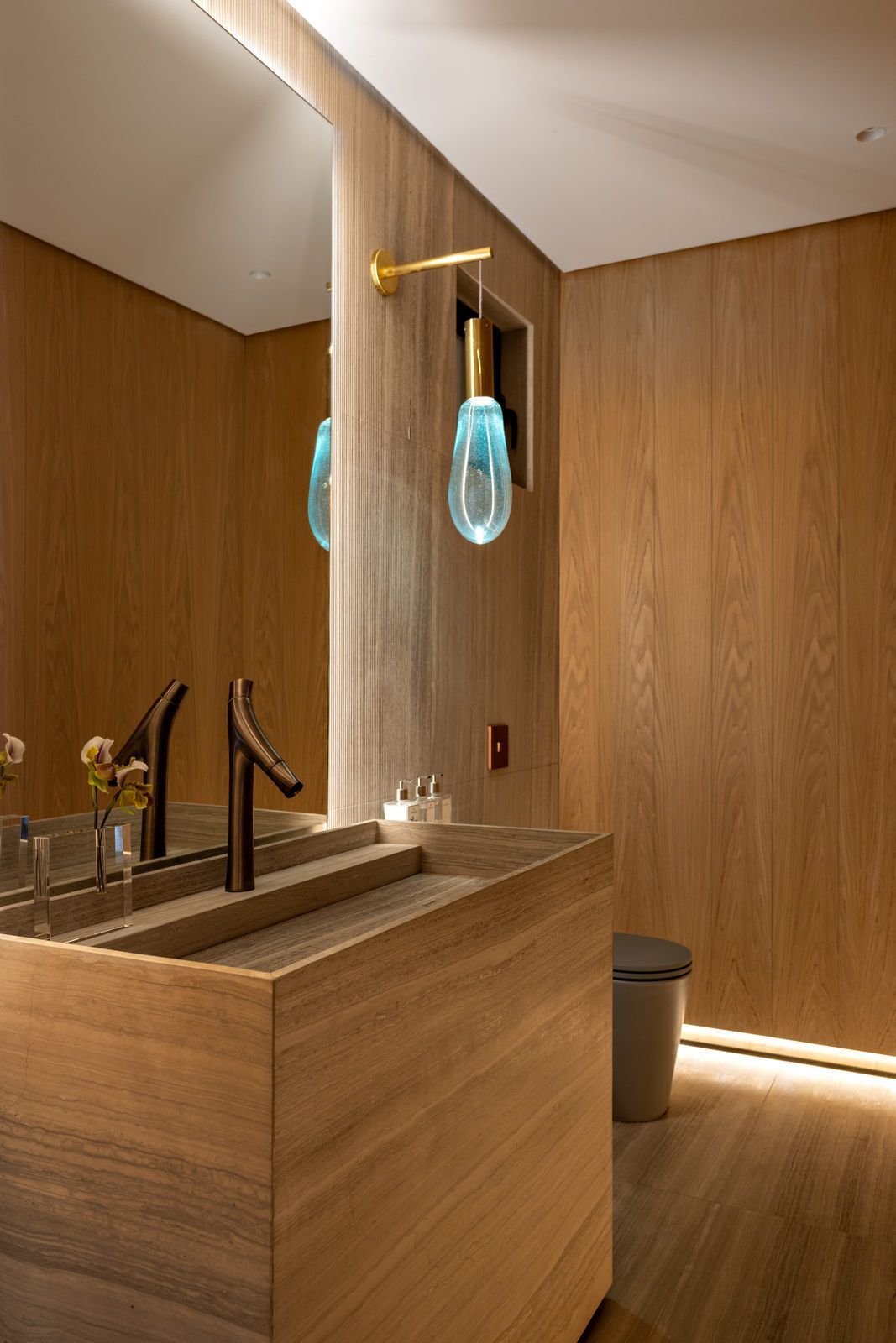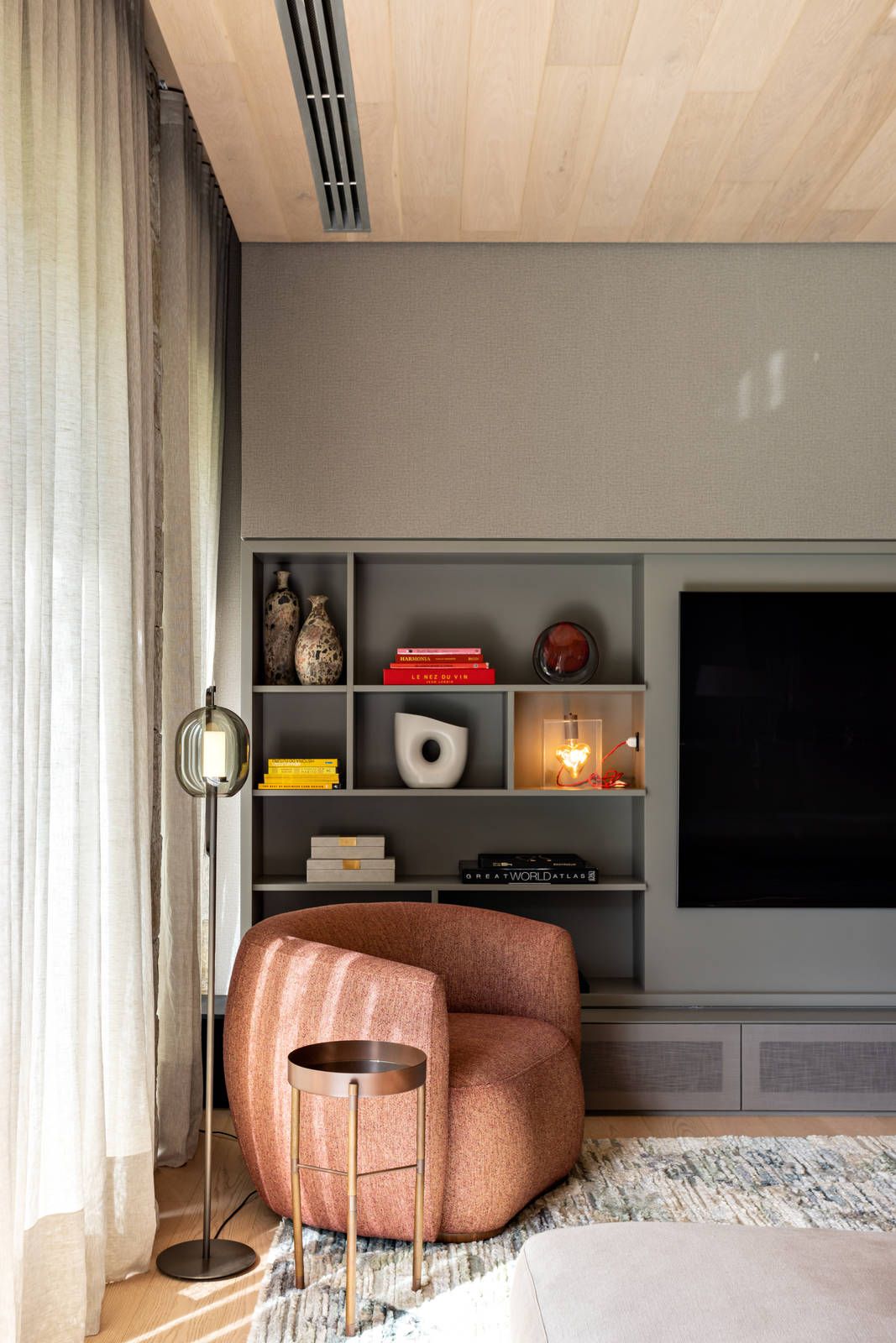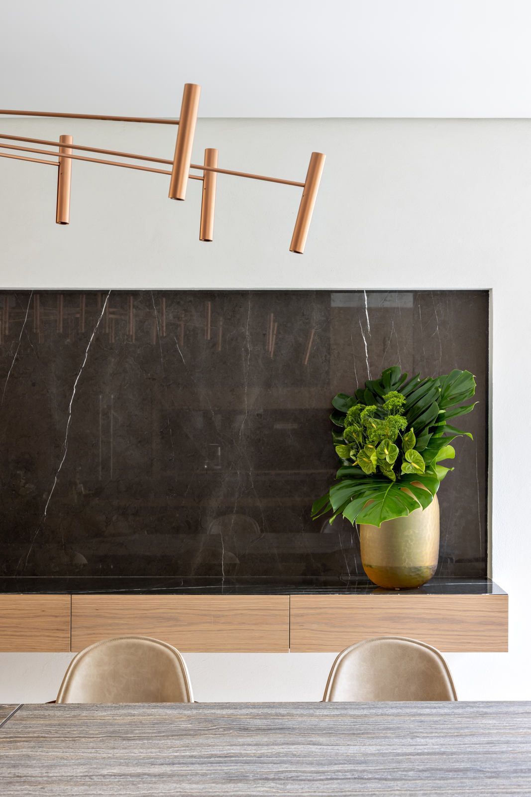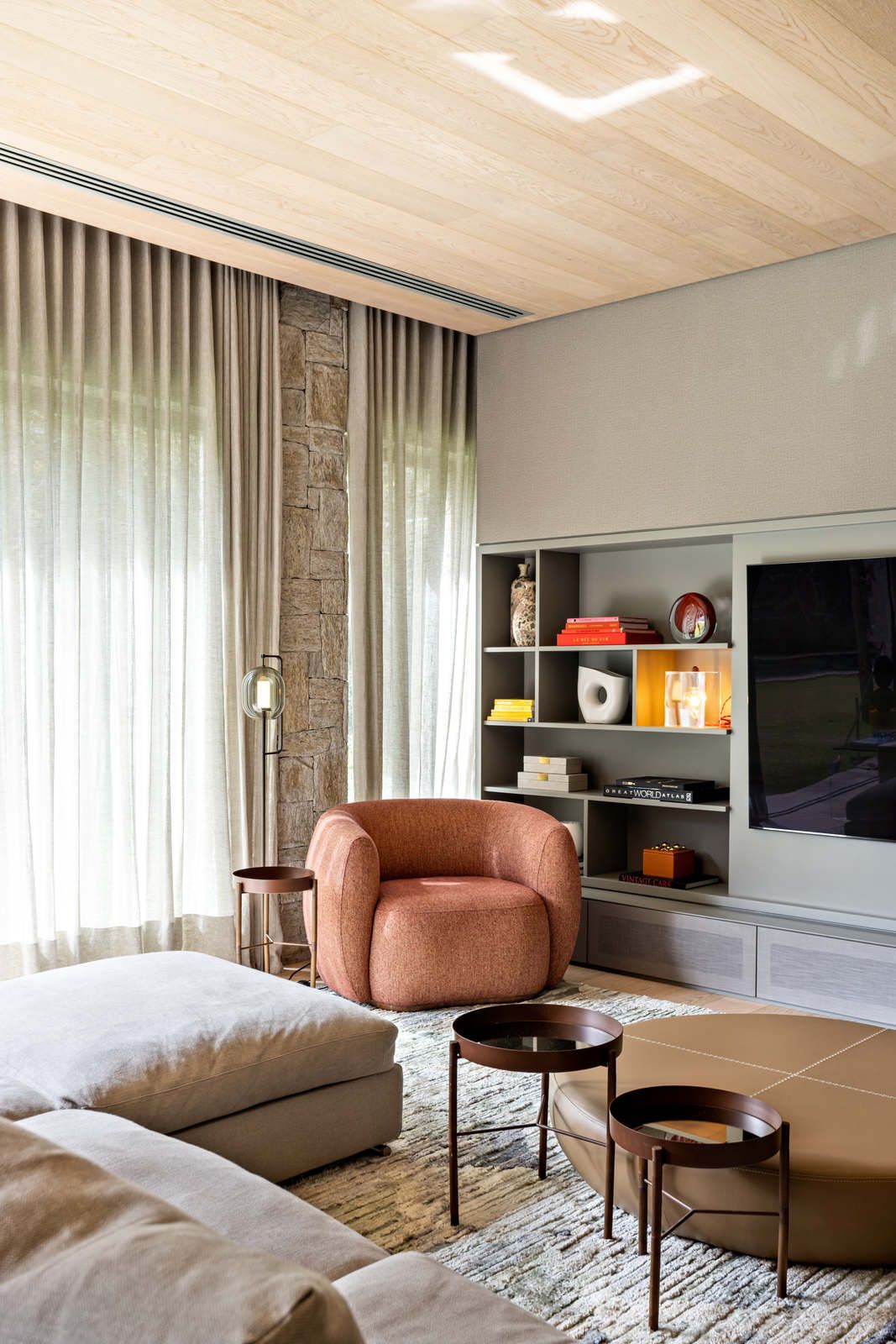 Bia Prado: “A personalidade do proprietário está presente na estrutura e também na decoração dos espaços, já que ele gosta de ambientes aconchegantes, mas ao mesmo tempo chiques e convidativos. A ideia foi criar espaços para que convidados e família desfrutem bons momentos junto do morador.”