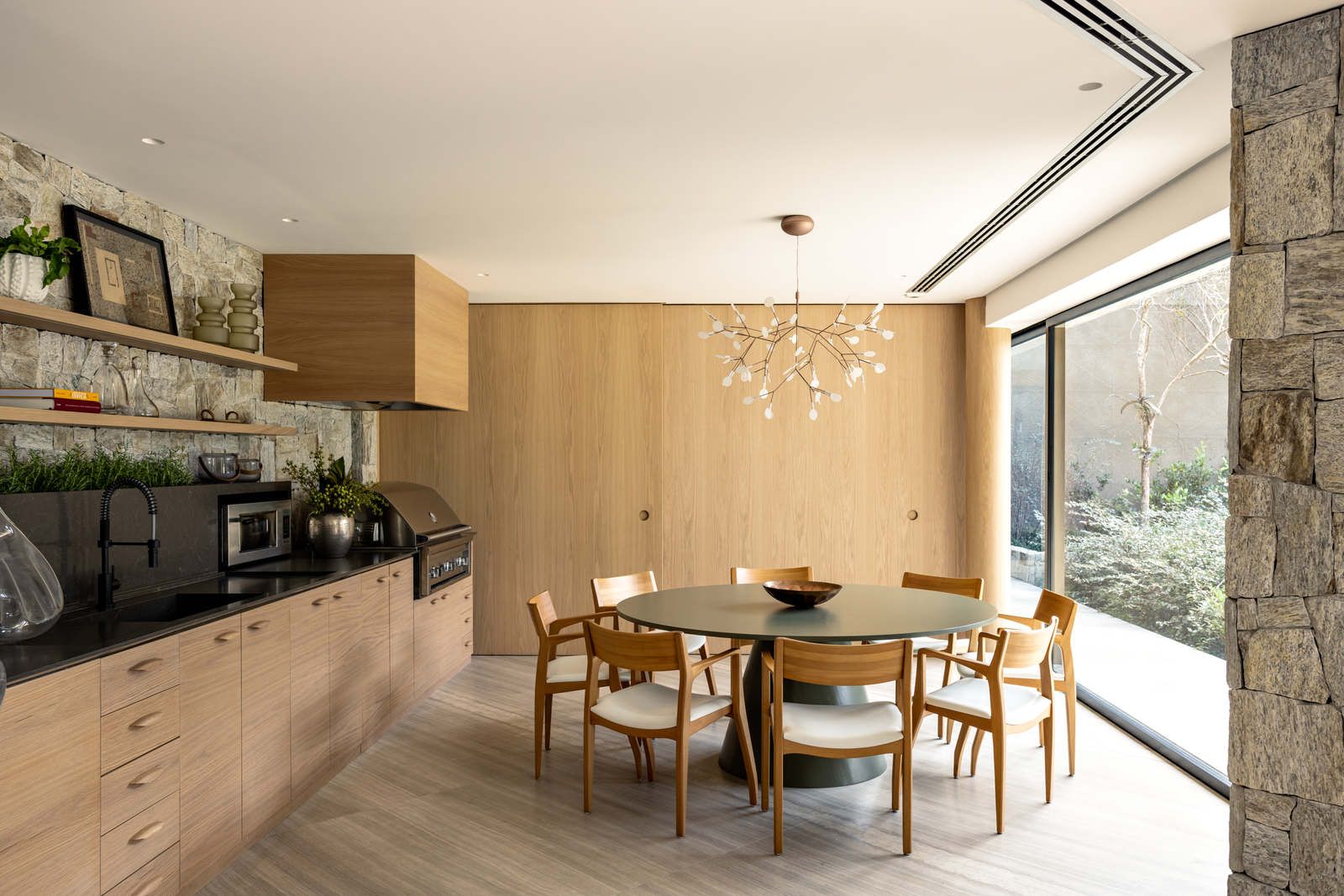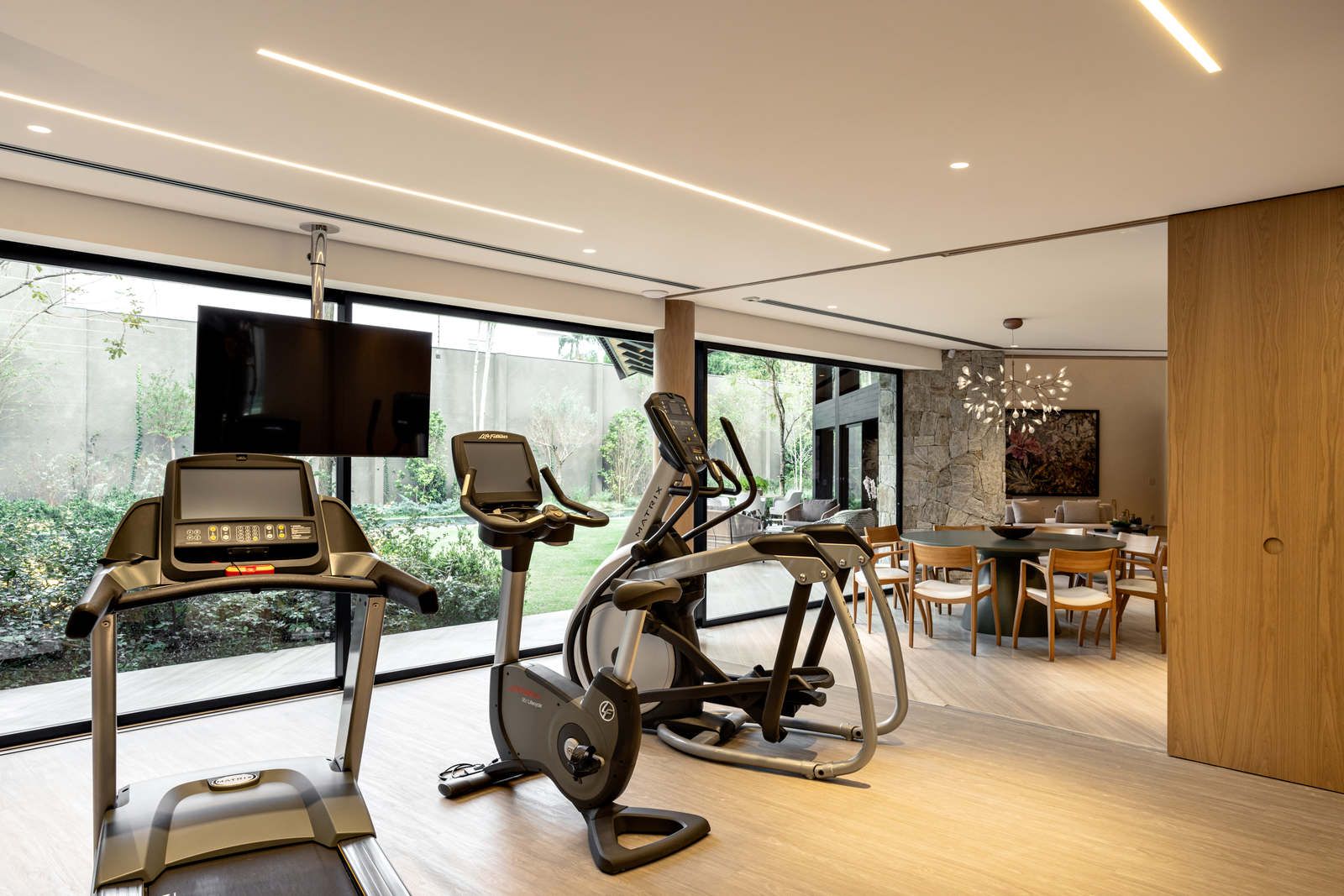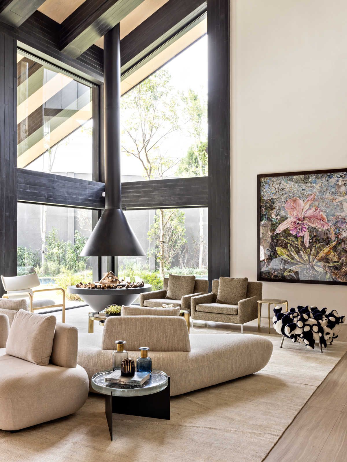 Esta casa com espaços amplos e pé-direito alto é um projeto assinado pela arquiteta Bia Prado. Antes da reforma, que levou 14 meses, a casa tinha uma arquitetura característica da década de 1980, com espaços muito compartimentados e sem integração. Por conta disso, o principal objetivo da reforma foi atualizar a construção para os dias atuais, a partir de escolhas mais contemporâneas.