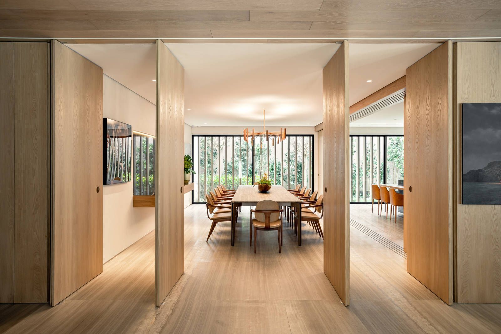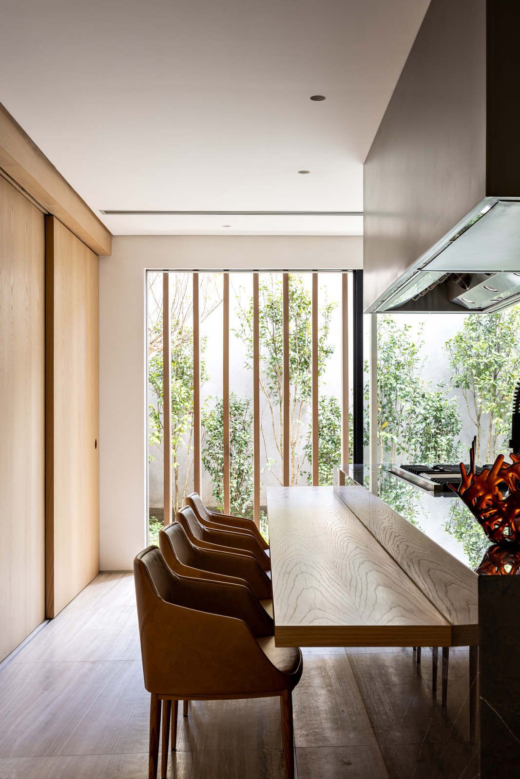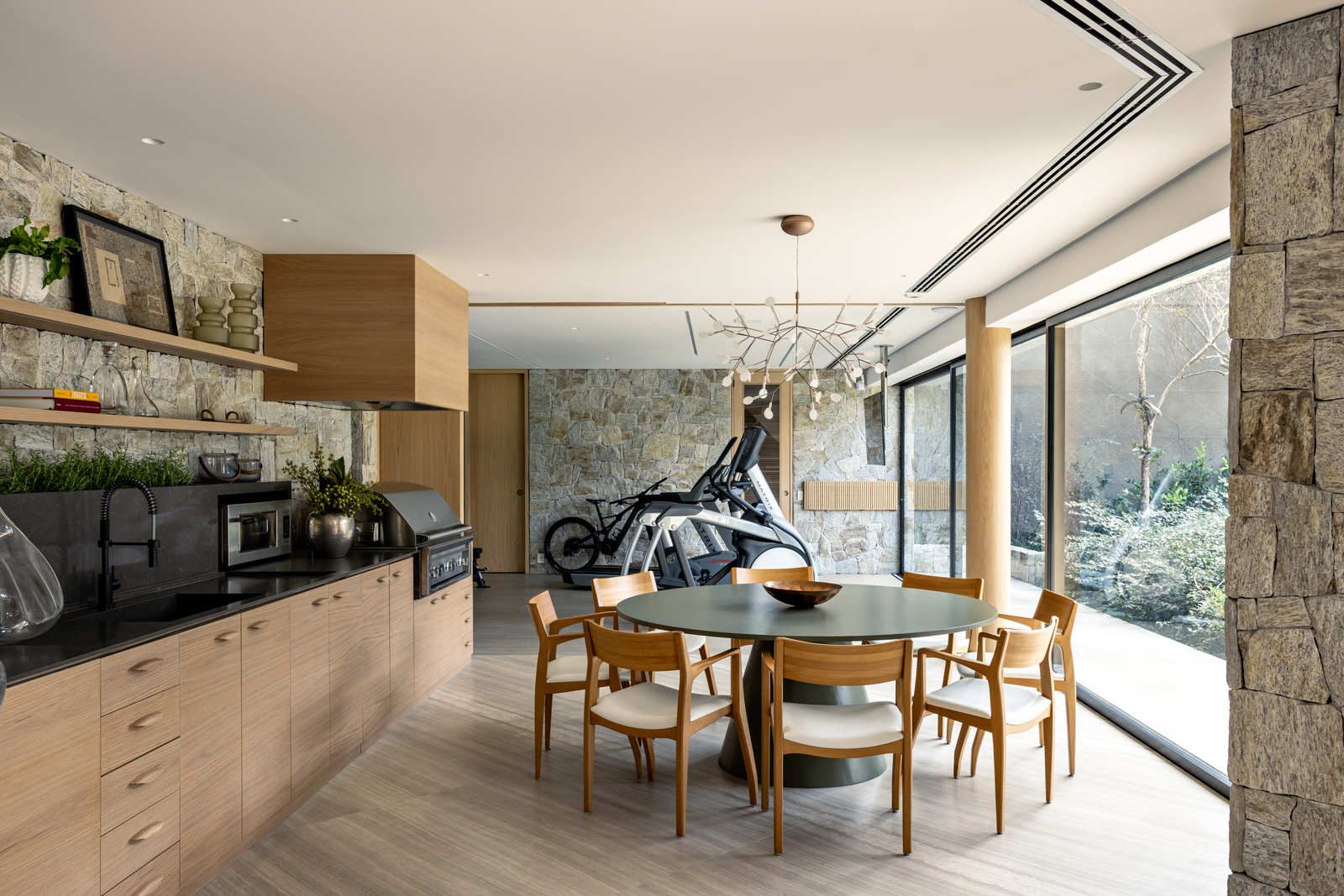 Esta casa com espaços amplos e pé-direito alto é um projeto assinado pela arquiteta Bia Prado. Antes da reforma, que levou 14 meses, a casa tinha uma arquitetura característica da década de 1980, com espaços muito compartimentados e sem integração. Por conta disso, o principal objetivo da reforma foi atualizar a construção para os dias atuais, a partir de escolhas mais contemporâneas.
