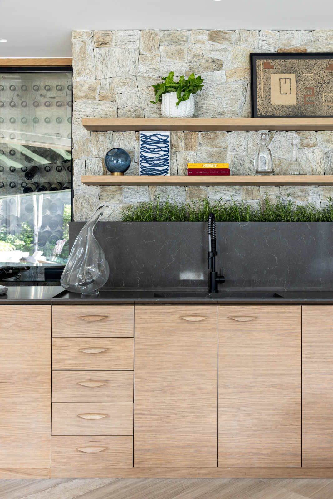 Bia Prado: “Ele queria espaços amplos para receber pessoas, mas que continuassem com a estética rústica da casa. Dessa forma, ela não perderia o charme natural, ainda que incorporasse toques contemporâneos ao ambiente.”