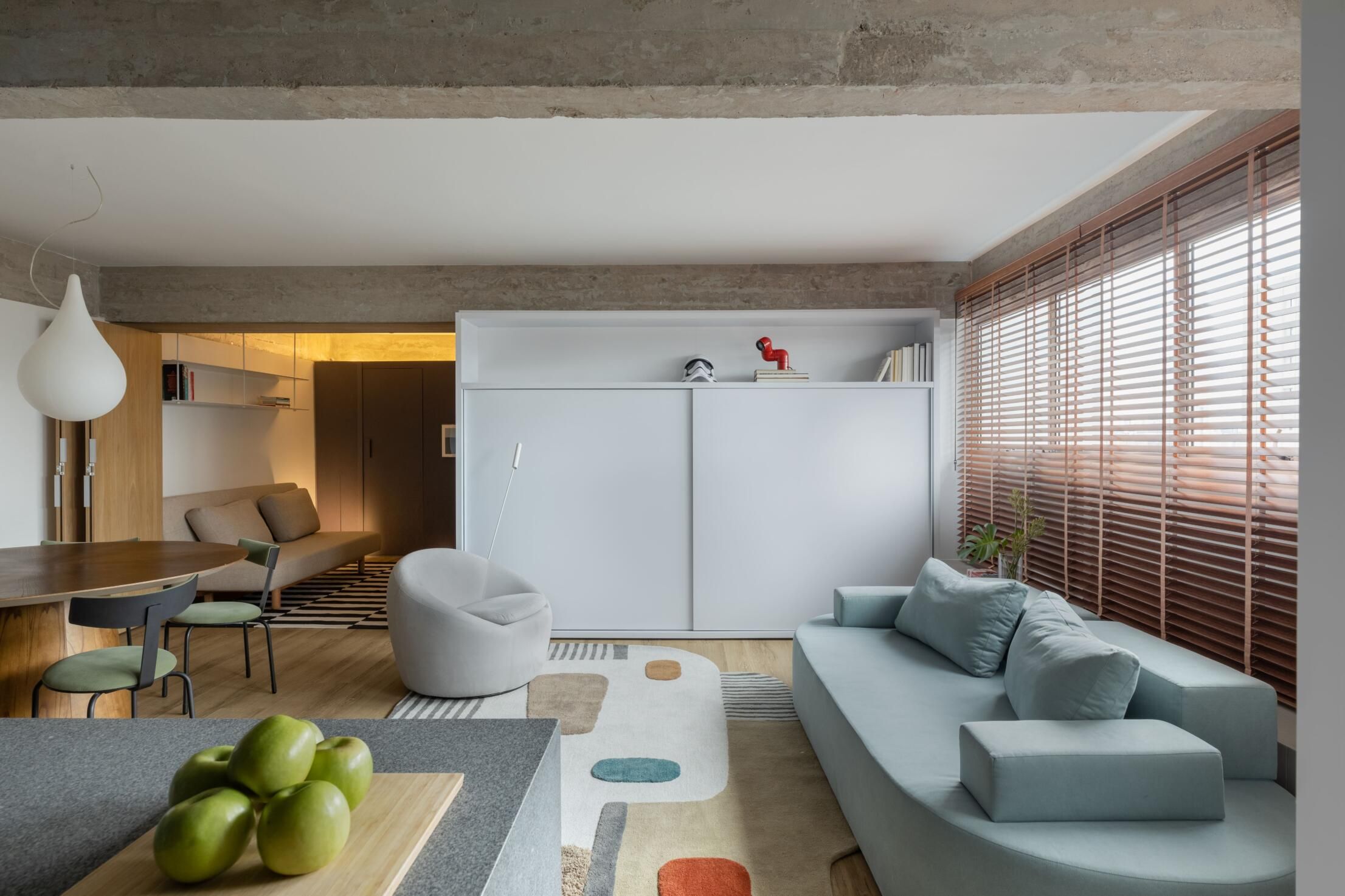 Uma cozinha elegante, pensada para receber e projeto com marcenaria muito bem pensada para deixar o projeto funcional, neutro e pronto para alugar. Esse foi o pedido dos clientes ao escritório Angá Arquitetura, que assina o apartamento de 160m² no Tietê, São Paulo.