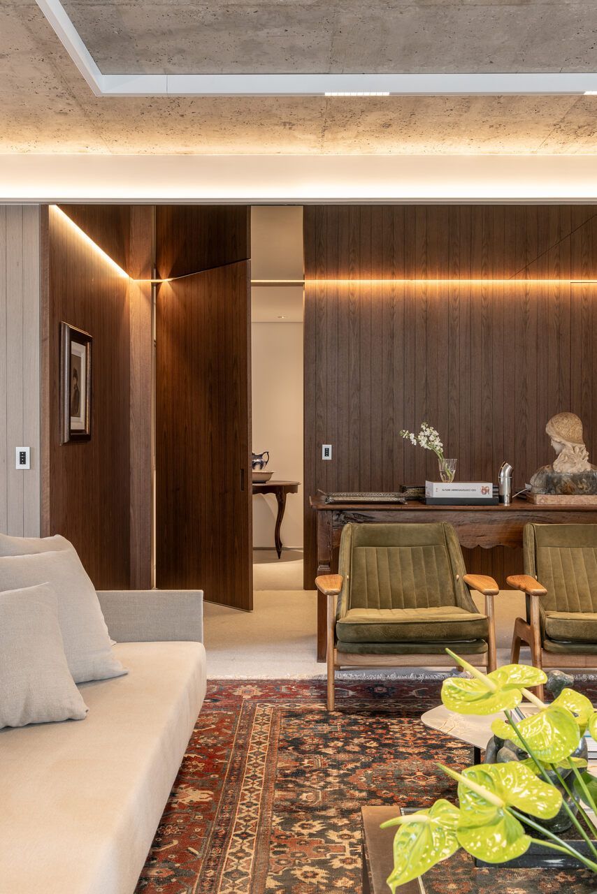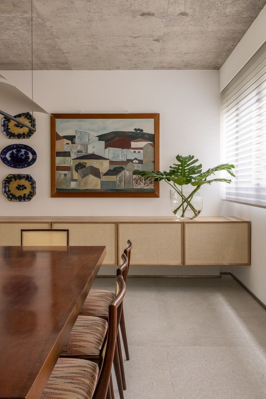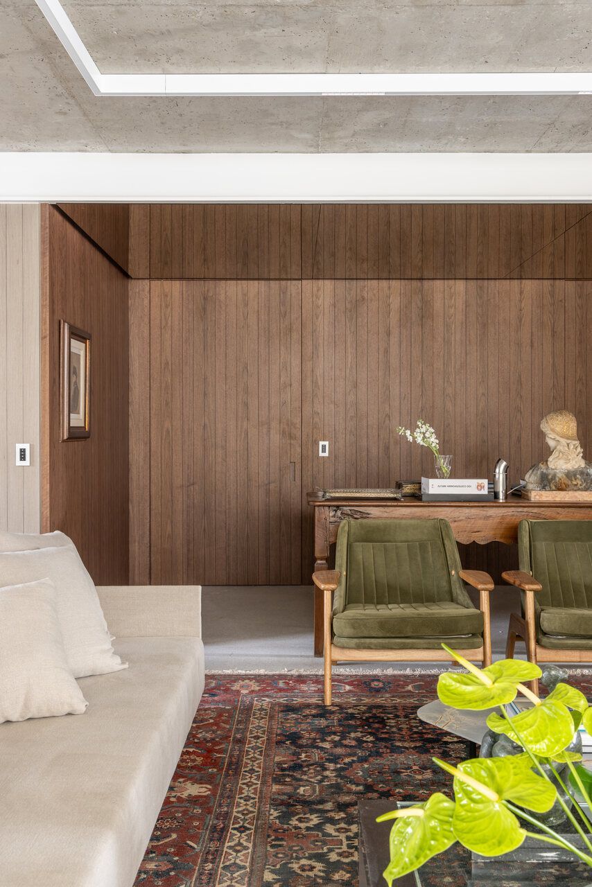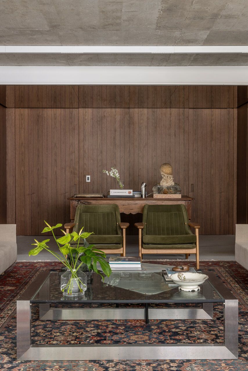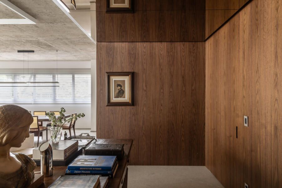 A inspiração veio dessa vontade de manter viva a memória. A ideia era ter “cara de casa”, permitindo que móveis, objetos e obras de arte de uma vida inteira convivam em harmonia com a arquitetura. O resultado é um espaço despojado, elegante e profundamente pessoal, daqueles que não seguem modismos, mas constroem identidade. E, talvez por isso mesmo, o projeto tenha sido tão íntimo: os clientes são os pais do arquiteto, o que adiciona ainda mais camadas de cuidado e intenção a cada escolha.