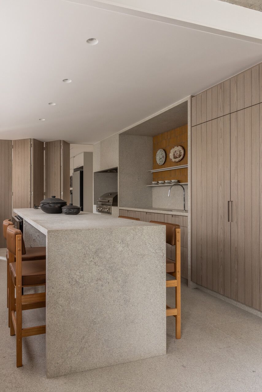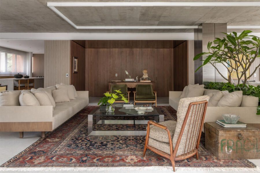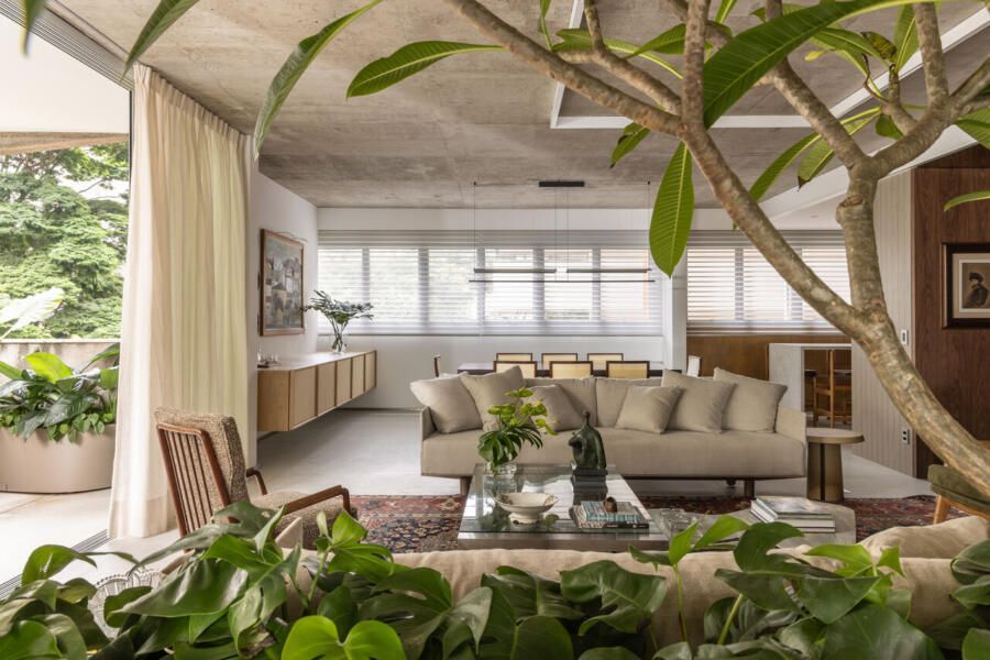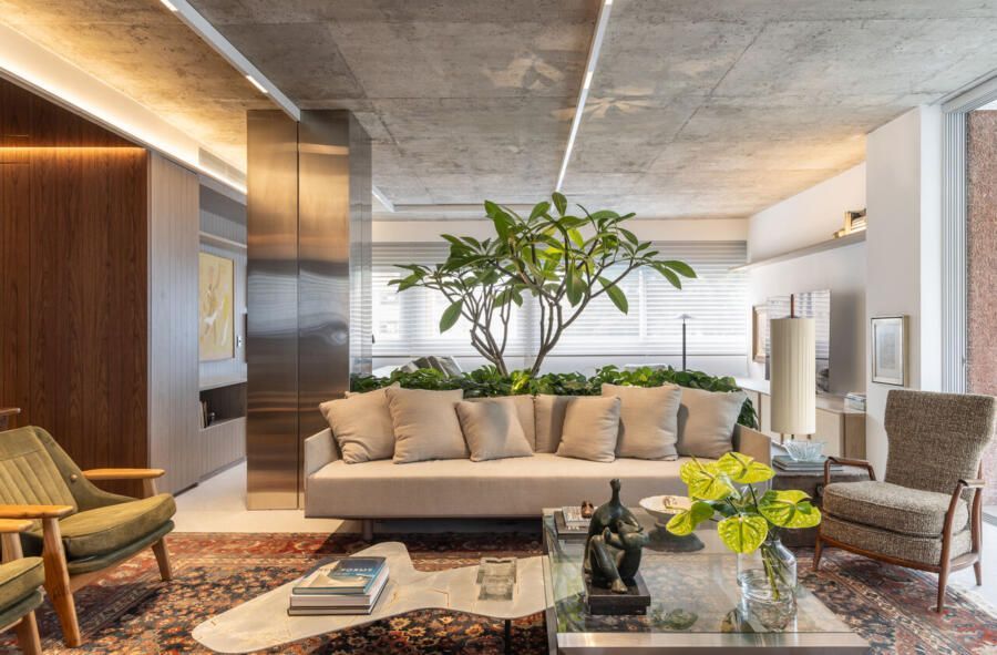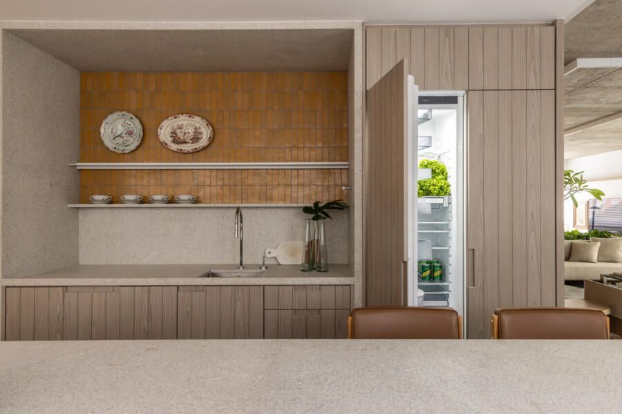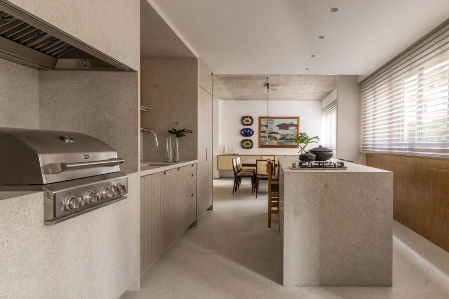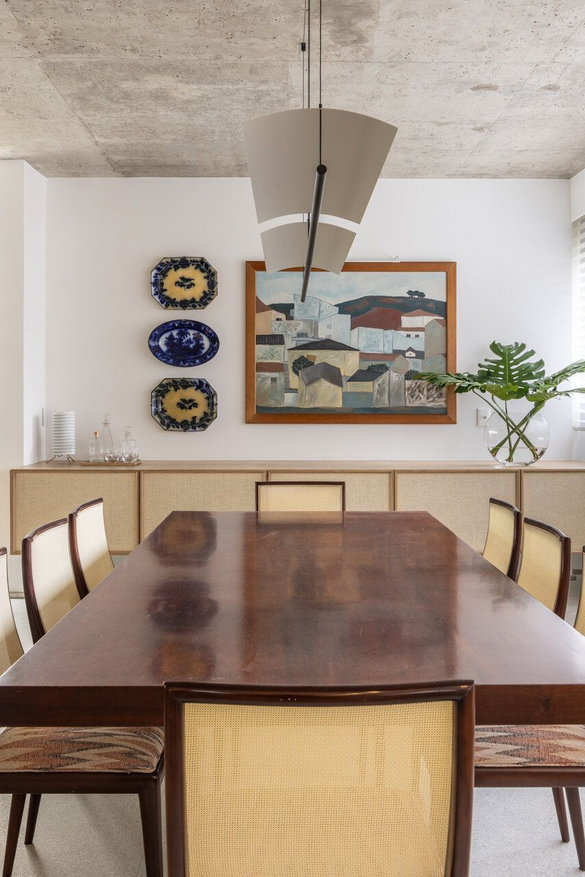 A inspiração veio dessa vontade de manter viva a memória. A ideia era ter “cara de casa”, permitindo que móveis, objetos e obras de arte de uma vida inteira convivam em harmonia com a arquitetura. O resultado é um espaço despojado, elegante e profundamente pessoal, daqueles que não seguem modismos, mas constroem identidade. E, talvez por isso mesmo, o projeto tenha sido tão íntimo: os clientes são os pais do arquiteto, o que adiciona ainda mais camadas de cuidado e intenção a cada escolha.