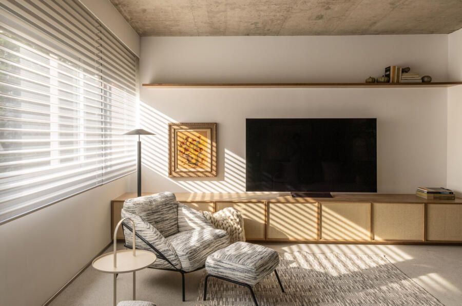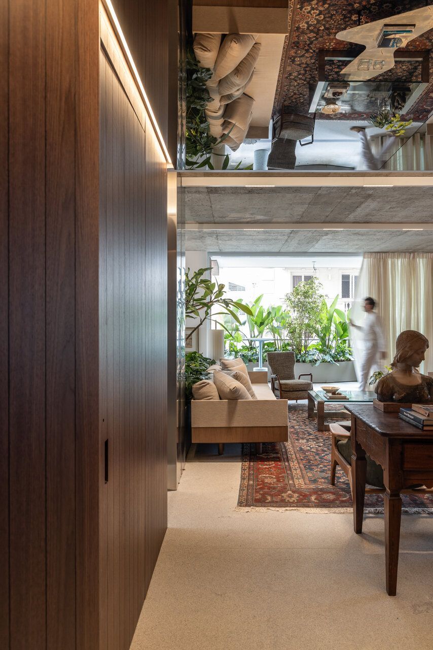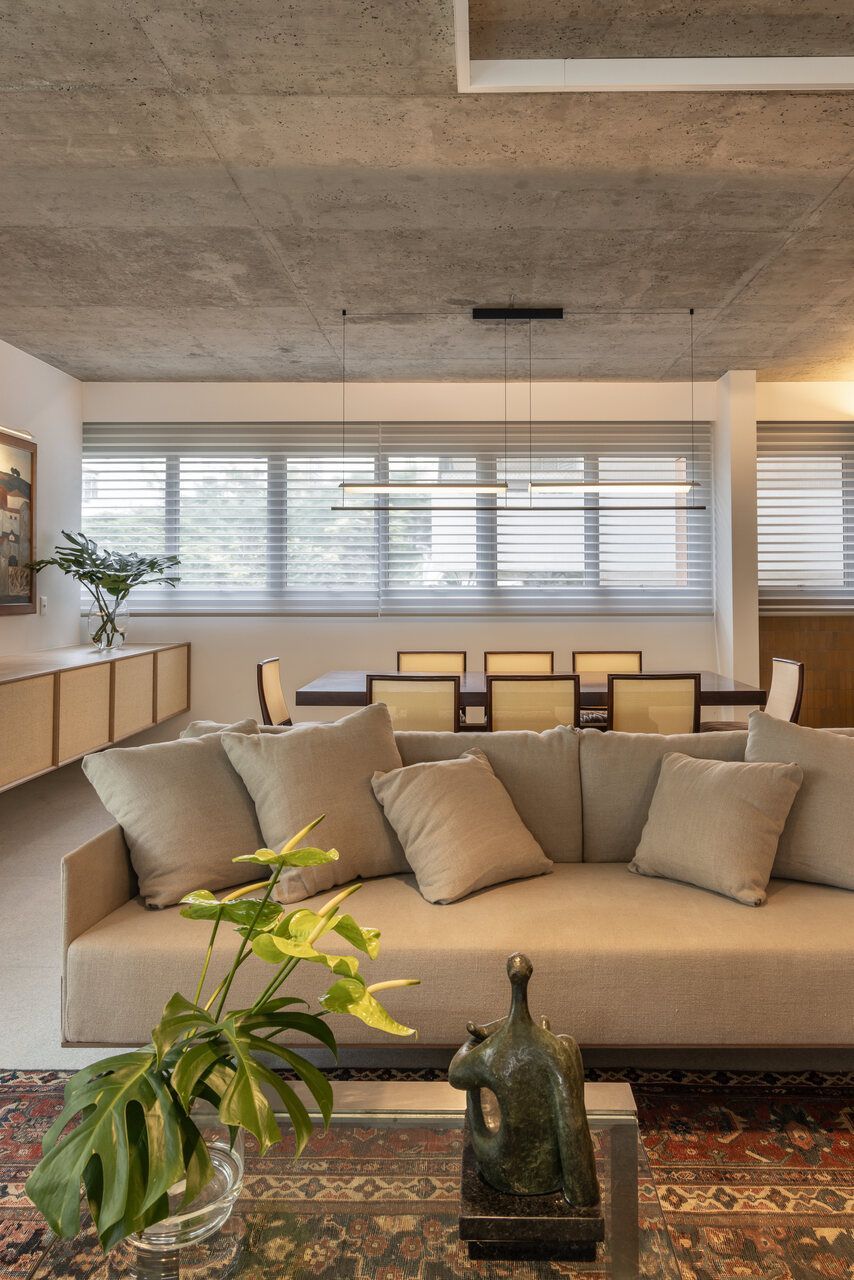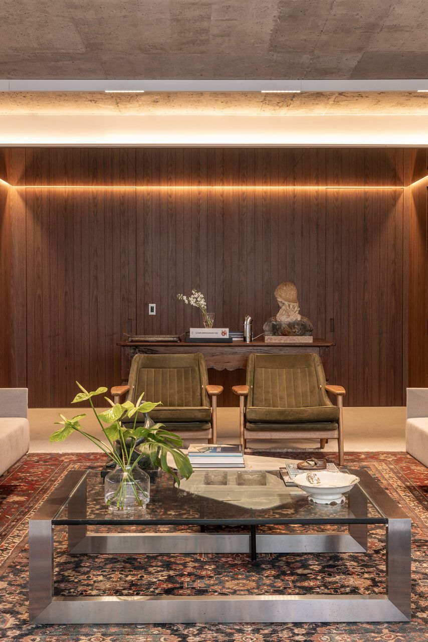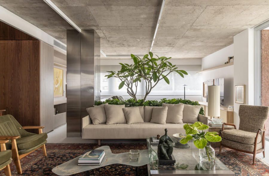A inspiração veio dessa vontade de manter viva a memória. A ideia era ter “cara de casa”, permitindo que móveis, objetos e obras de arte de uma vida inteira convivam em harmonia com a arquitetura. O resultado é um espaço despojado, elegante e profundamente pessoal, daqueles que não seguem modismos, mas constroem identidade. E, talvez por isso mesmo, o projeto tenha sido tão íntimo: os clientes são os pais do arquiteto, o que adiciona ainda mais camadas de cuidado e intenção a cada escolha.