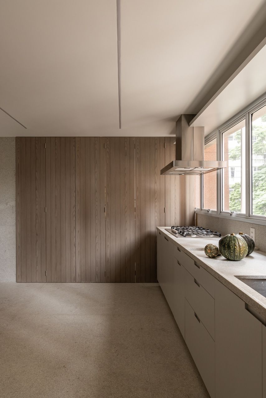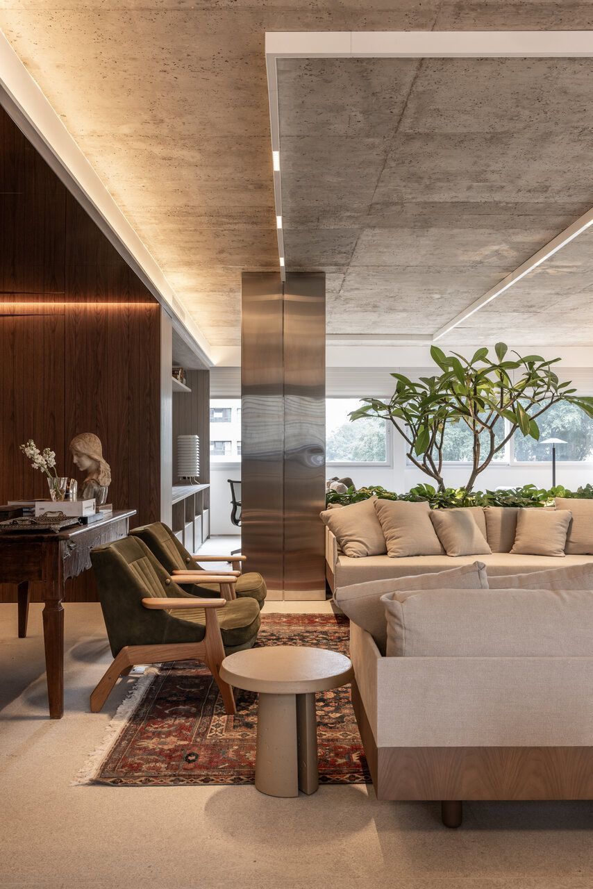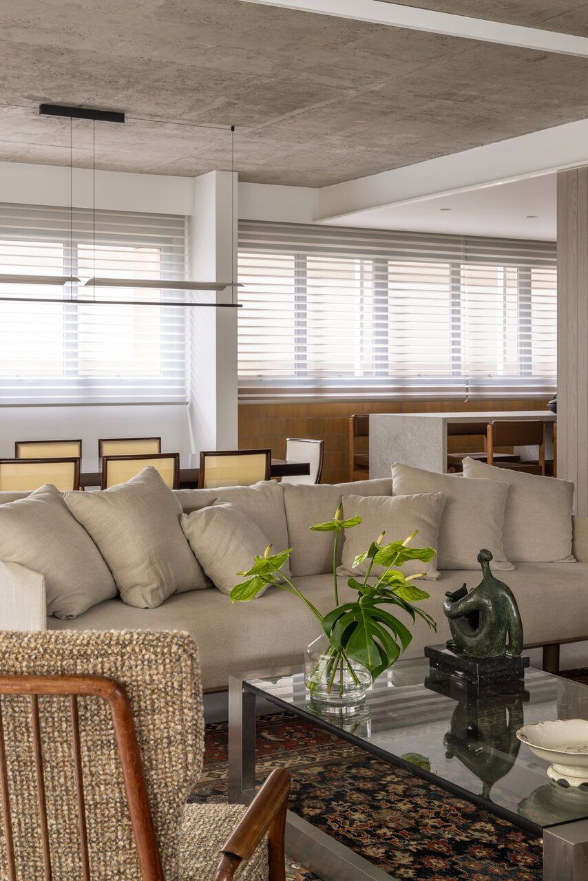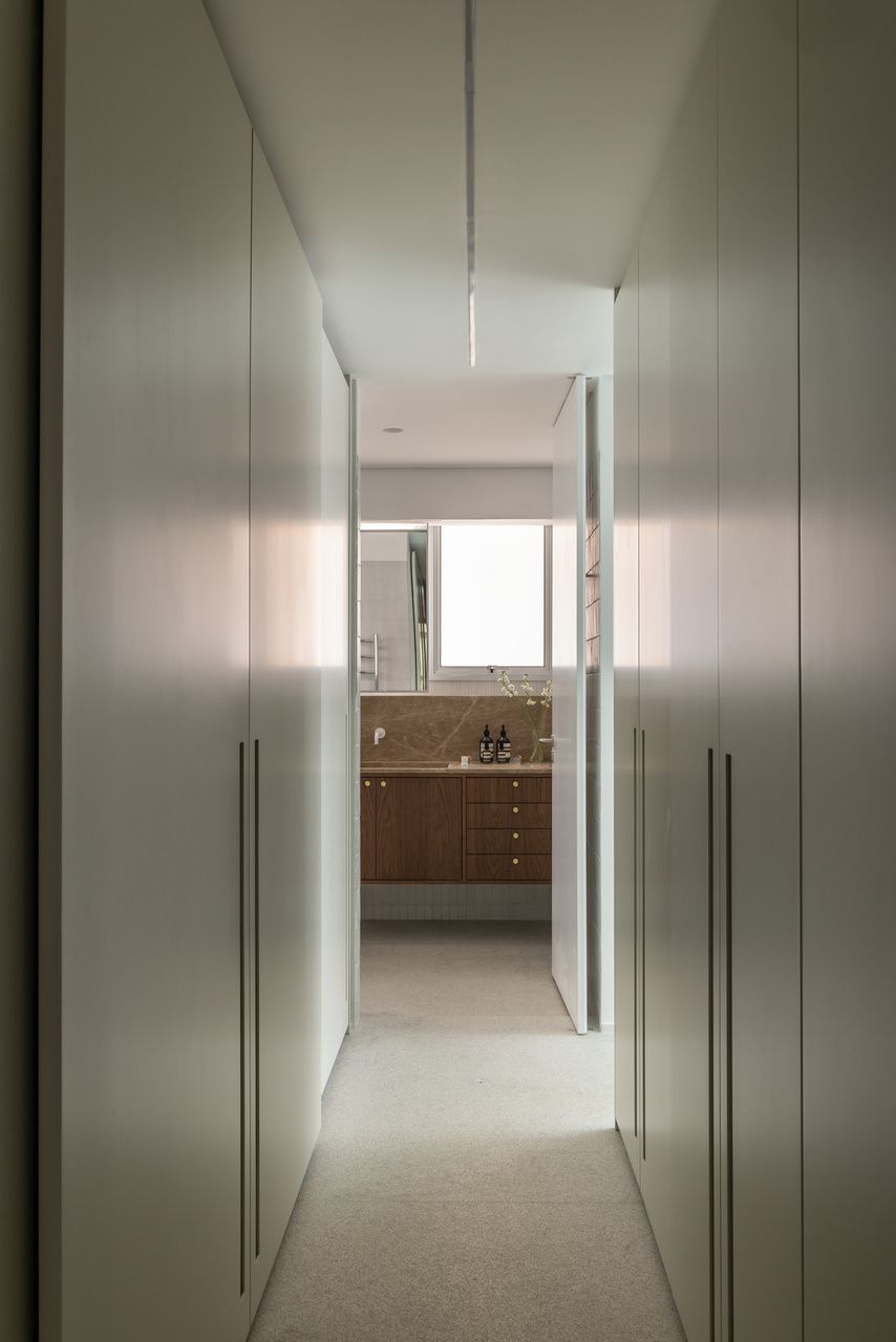 Depois de quase 40 anos vivendo em uma casa onde criaram os filhos, os moradores buscavam um novo capítulo: um lugar onde fosse possível fazer tudo a pé, reduzir a manutenção e ganhar qualidade de vida, mas sem abrir mão de receber. Afinal, são três filhos e cinco netos que fazem parte da rotina. A missão do projeto, então, foi clara e delicada: criar um apartamento amplo, acessível, atemporal e flexível, capaz de acompanhar o passar do tempo e as novas histórias que ainda estão por vir.