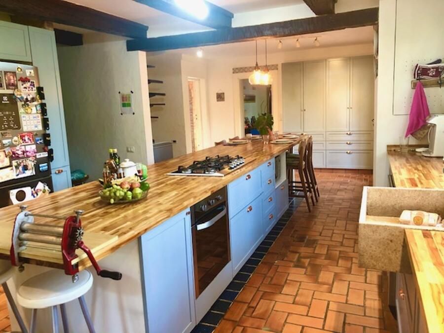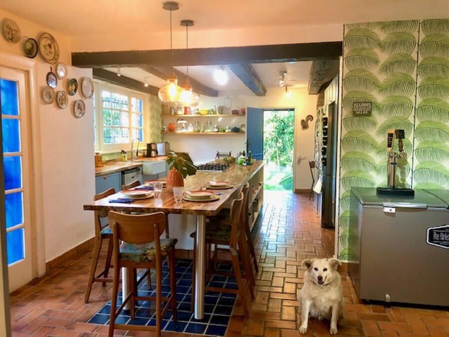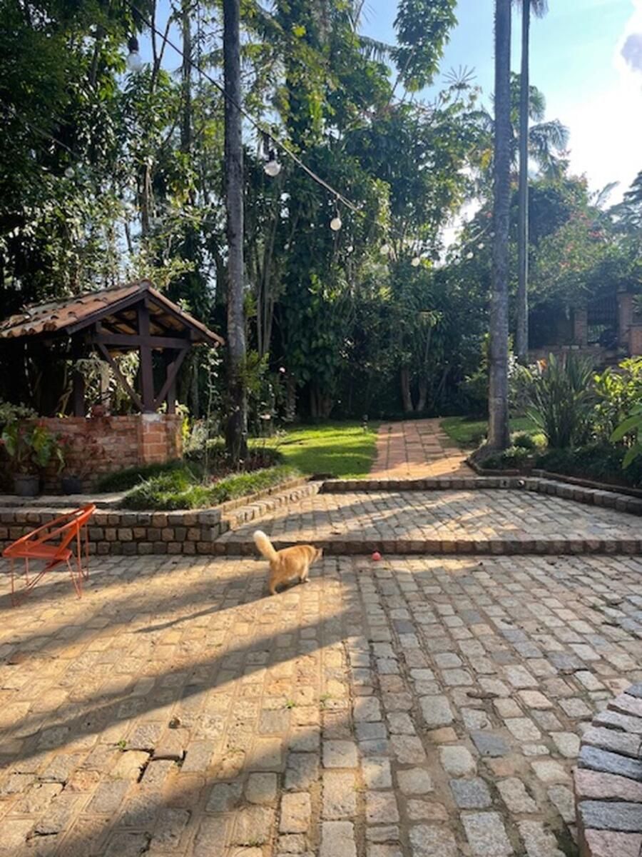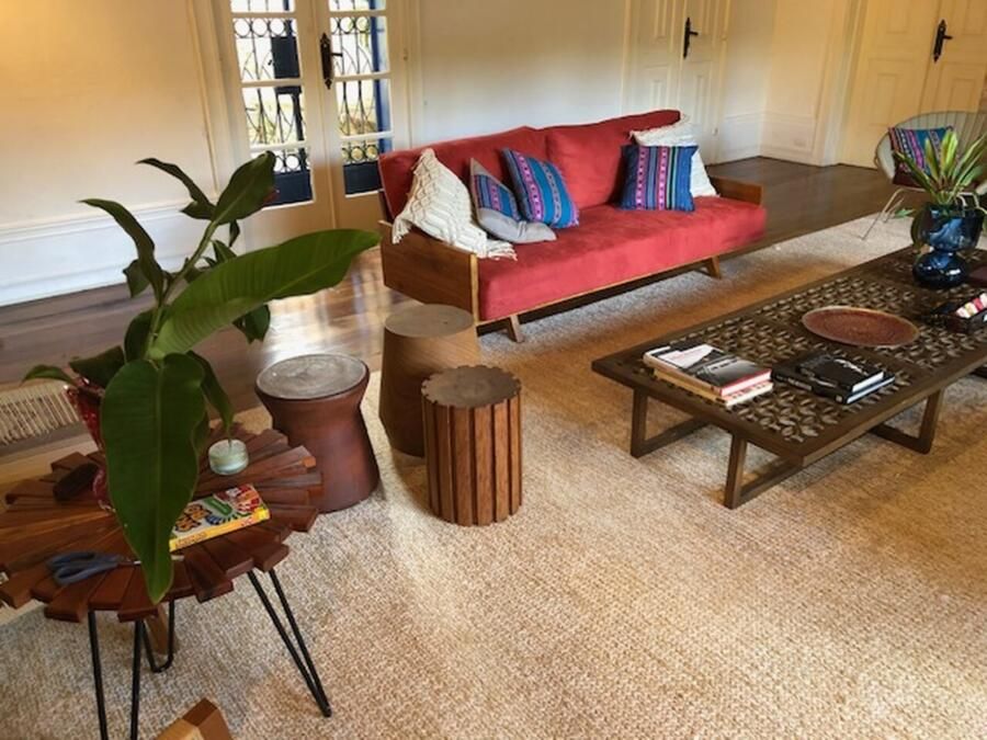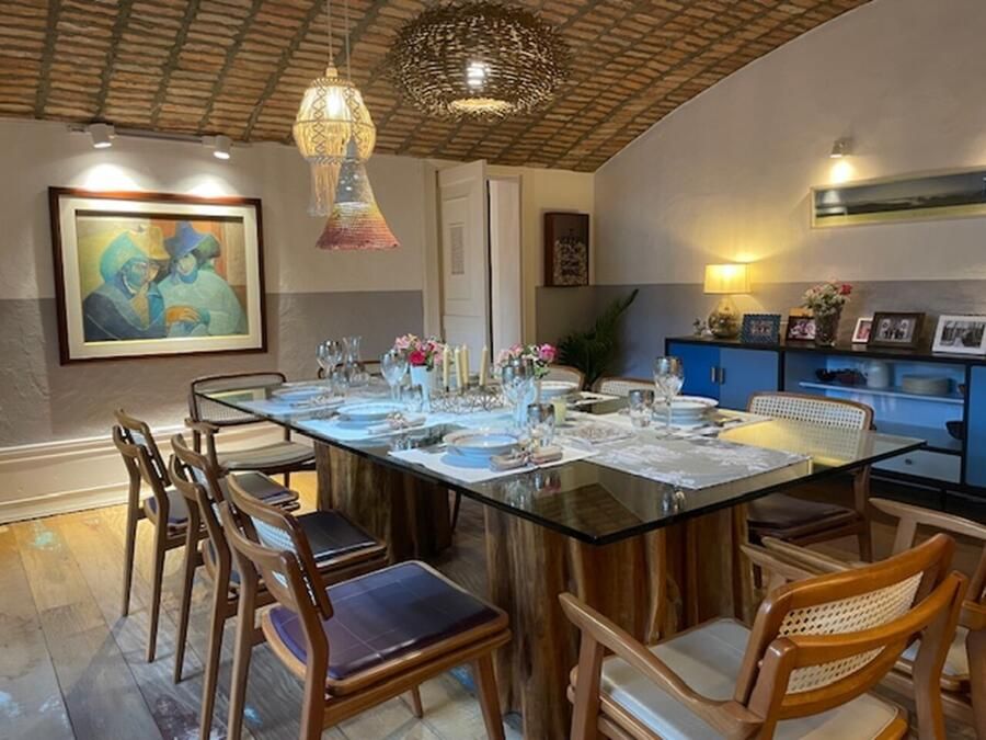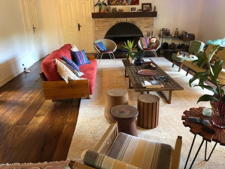 A casa conta com cozinha ampla integrada à copa, sala de jantar, sala de estar com teto abobadado, suíte master com banheiro espaçoso e ateliê pessoal da arquiteta. Esses ambientes se destacam não só pela estética, mas pela funcionalidade e memória afetiva que carregam.