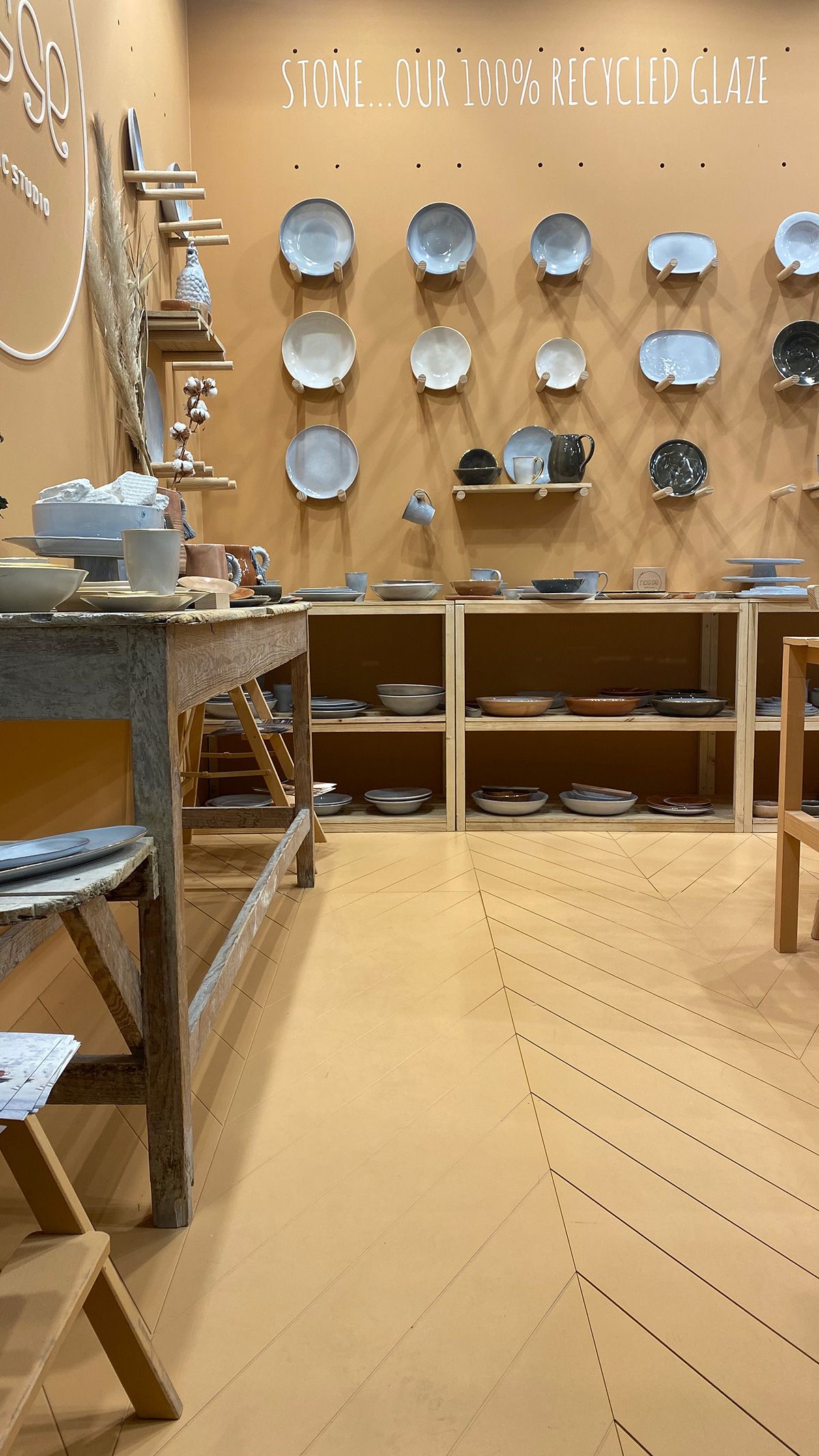A Nosse Ceramics faz parte de uma grande indústria e é a segunda marca deles, então uma das linhas é feita com uma pasta reciclada, com reuso das sobras da fábrica. Demais, né?