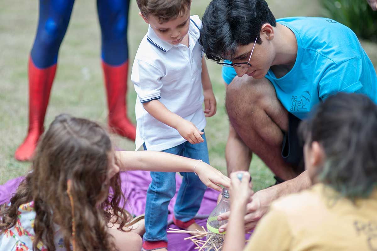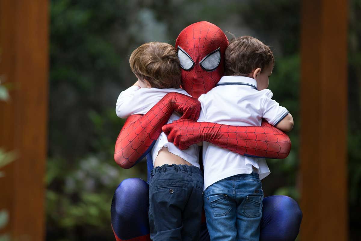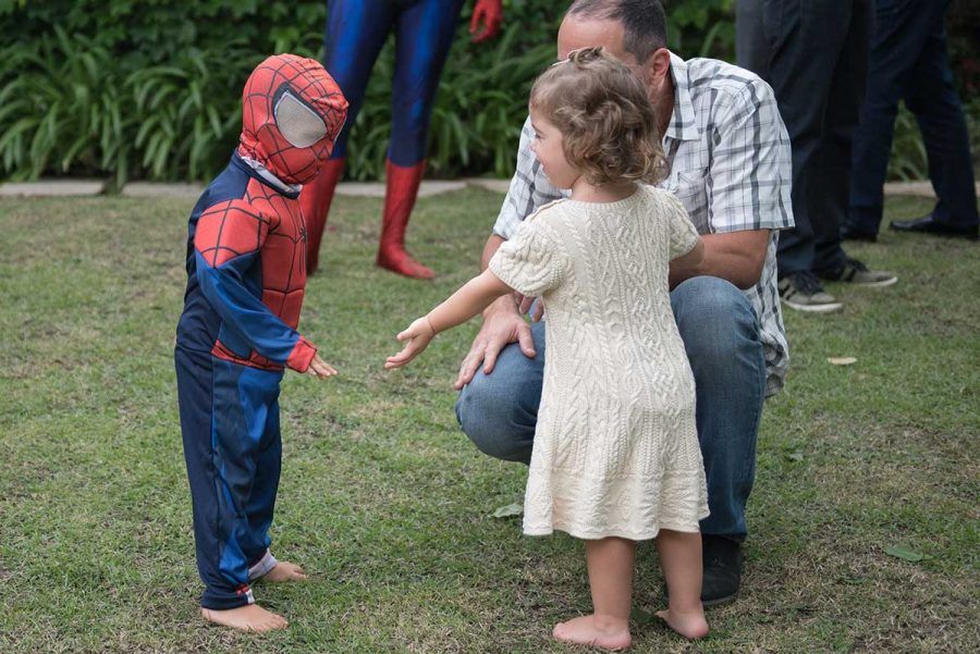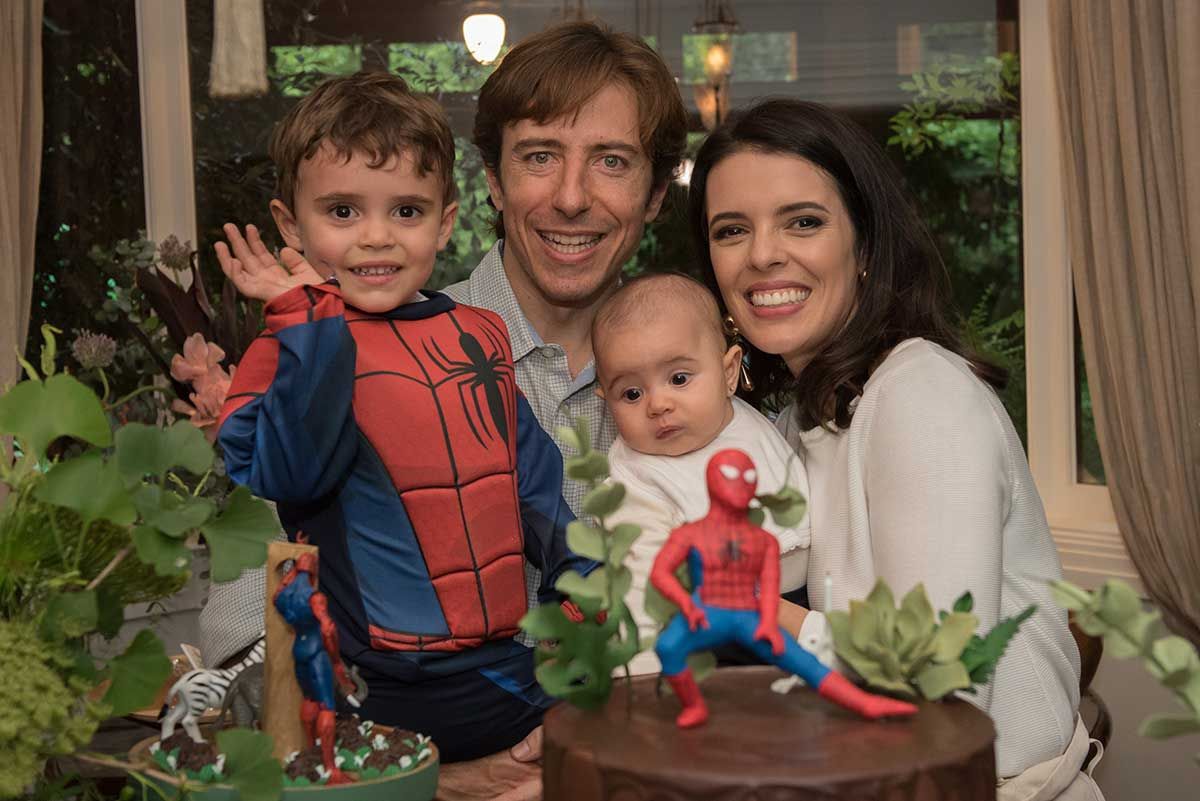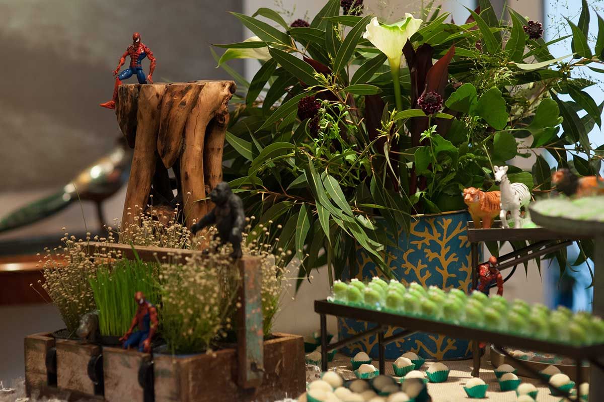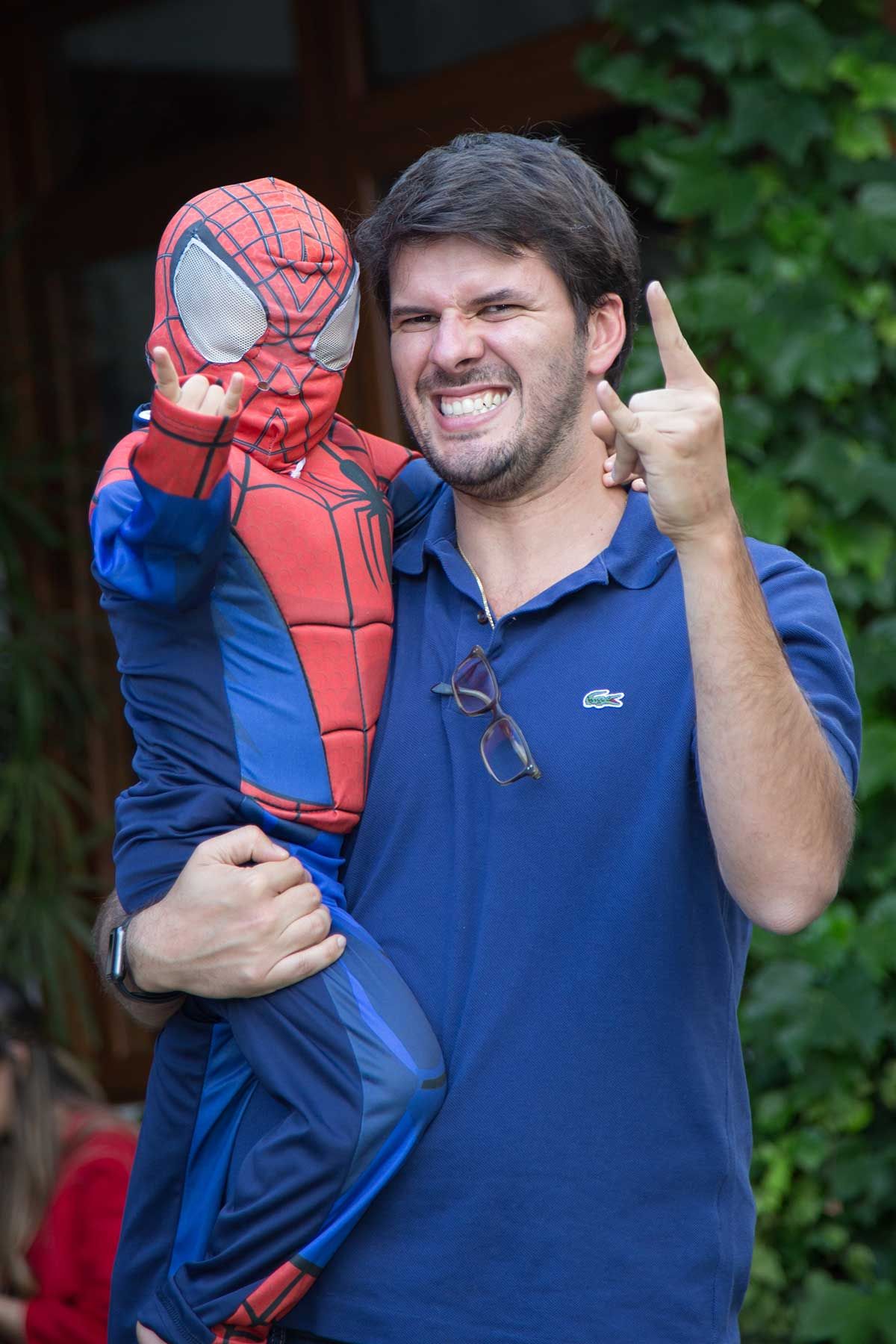 Bom, vamos alinhar o seguinte: eu não curto gritaria nas brincadeiras kkkkk Auto falante então passo beeeeem longe. Então sempre contrato uma recreação bem suave, que brincam com as crianças de brincadeiras a moda antiga (corrida de saco, caça ao tesouro, bambolê, pula corta, bolão, essas coisas…. e sem esteria sabe, sem gritar para chamar as crianças. Os pequenos participam de maneira bem leve e divertida, chama-se Recreart. Chamei também um pula pula e uma cama elástica (aqui vai o contato 94754-0709) e um Homem Aranha que foi o máximo! Passou boa parte da festa com o Bento – viraram amigos – e era uma pessoa super simpática e atenciosa, gostei demais. Contratei na Fabrika de Ilusões.