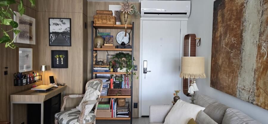 A designer de interiores Vera Carvalho encontrou no apartamento compacto de 42m² a praticidade e o conforto que buscava. Aos 74 anos, ela decidiu simplificar a vida, mantendo apenas o essencial. A mudança para um studio bem planejado permitiu que ela organizasse melhor seus pertences e aproveitasse ao máximo cada metro quadrado.